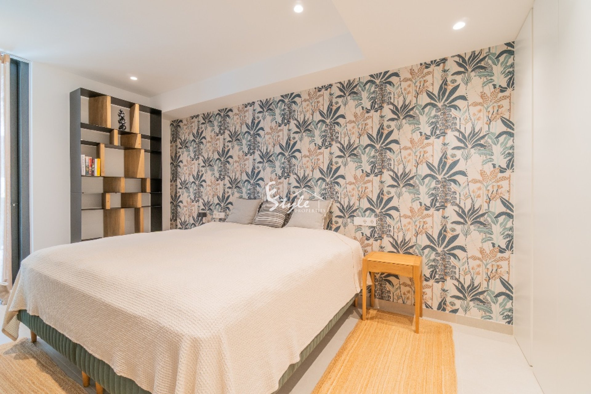 Distribuida con gran funcionalidad, la villa ofrece tres amplios dormitorios dobles y dos baños completos. Uno de los grandes valores añadidos es que en la planta baja se encuentra una habitación doble con baño en suite, una característica muy valorada por quienes buscan accesibilidad, independencia o un espacio cómodo para invitados. La orientación sur asegura una excelente entrada de luz natural durante todo el día, creando ambientes cálidos, luminosos y agradables en todas las estancias.