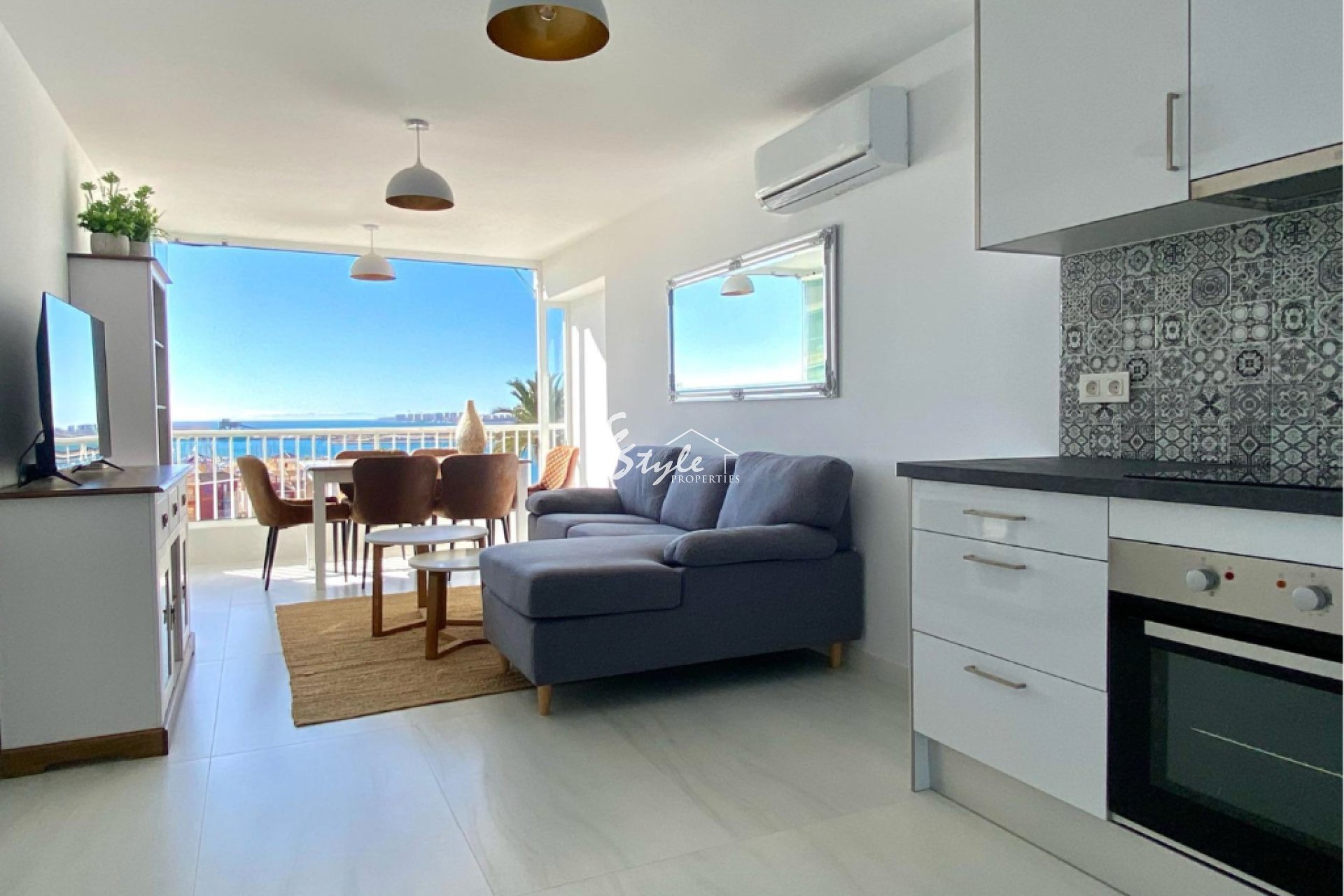 Salón maravillosamente espacioso con cocina abierta y magníficas vistas al puerto y al mar. 3 dormitorios y 2 baños. ¡Excelente ubicación!