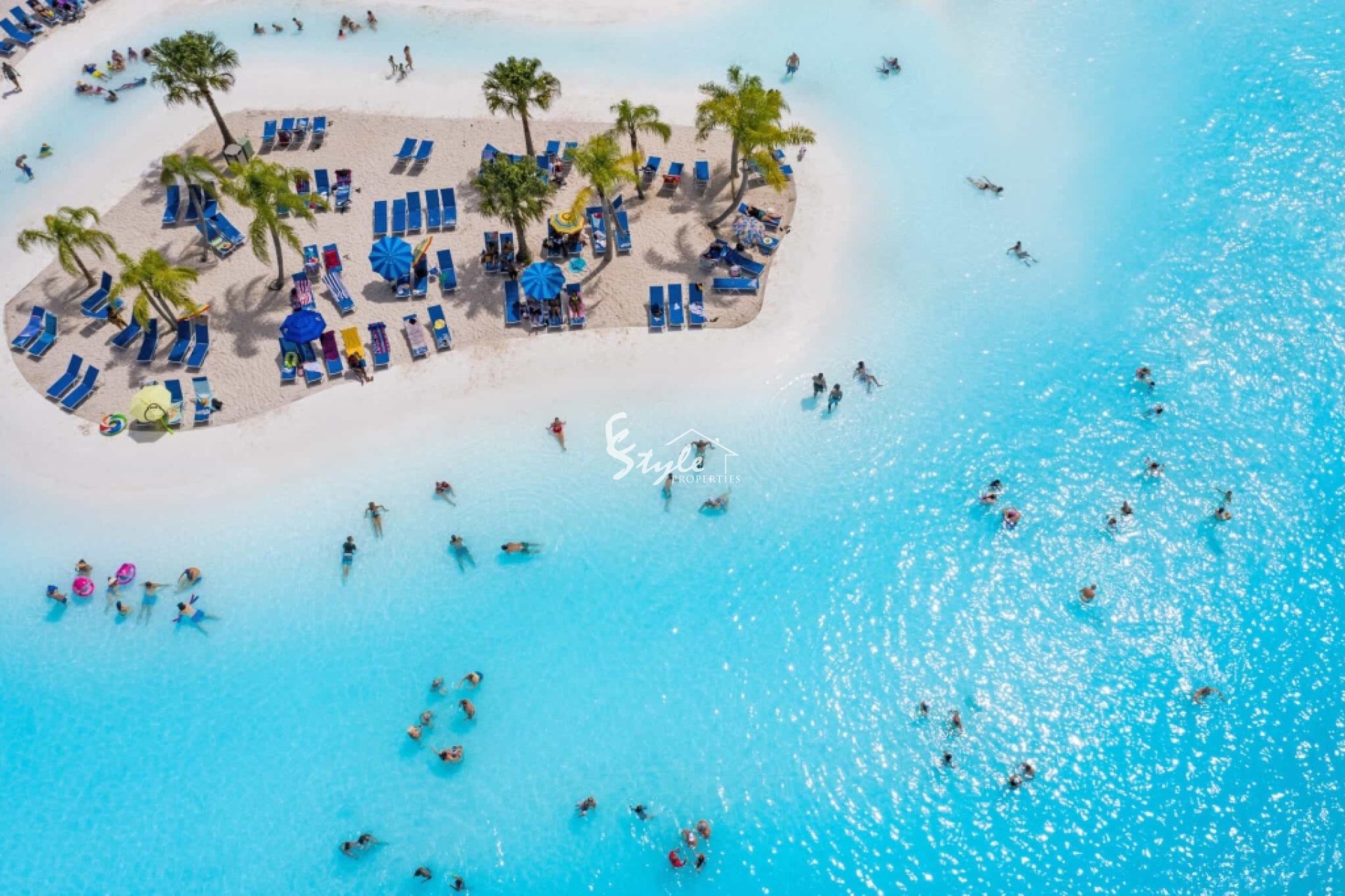 "Santa Rosalía Lake and Life Resort¨ Murcia es un nuevo y seguro resort urbano cerrado. El resort cuenta con una laguna cristalina de 16.000 m², que incluye una zona de playa de 8.000 m², un mar artificial con arena natural y agua salada, así como un club de playa, restaurante, gimnasio, tienda y bar.