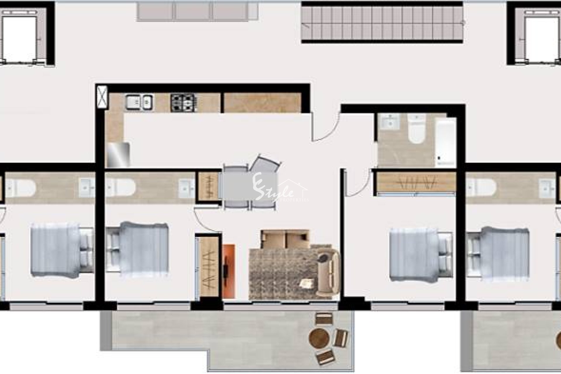 El diseño interior de los apartamentos y áticos en La Cala se centra en la comodidad y el estilo contemporáneo. Con una distribución que incluye dos dormitorios y dos baños, cada espacio está optimizado para ofrecer funcionalidad y confort. Las cocinas están equipadas con electrodomésticos modernos, facilitando el día a día de los residentes. El aire acondicionado garantiza un ambiente agradable en todas las estaciones, mientras que los armarios empotrados proporcionan un almacenamiento práctico y ordenado. El uso de gres porcelánico en los suelos añade un toque de sofisticación y es fácil de mantener, asegurando que cada hogar sea tanto estéticamente agradable como práctico.