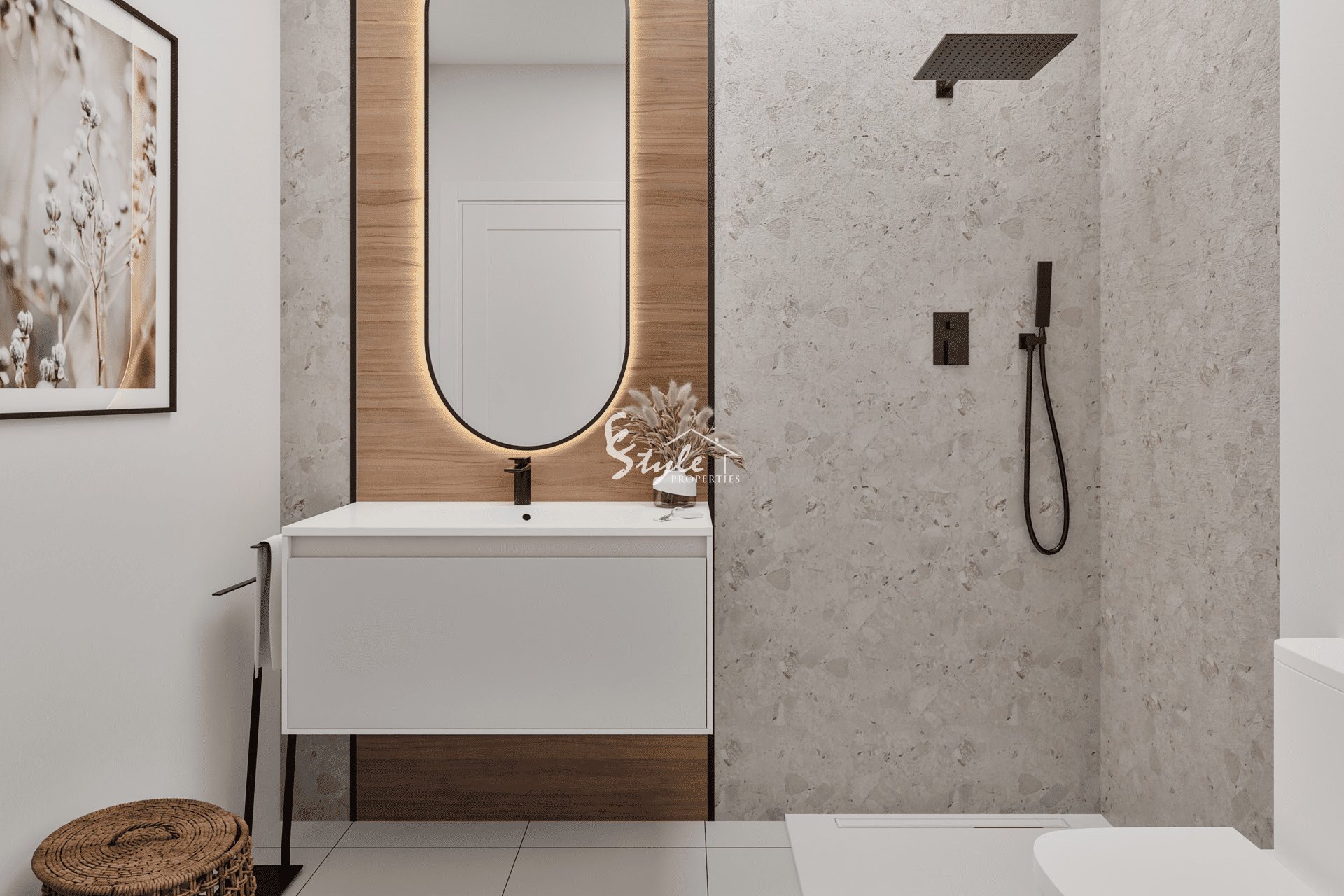 Los exteriores de este residencial están diseñados para ofrecer un ambiente acogedor y funcional. Cada propiedad cuenta con una terraza privada, ideal para disfrutar del clima mediterráneo y las vistas al mar que caracterizan a San Miguel de Salinas. Además, muchas de las viviendas incluyen un jardín privado, proporcionando un espacio adicional para el ocio al aire libre y la jardinería. La presencia de un garaje comunitario asegura que los residentes tengan un lugar seguro y conveniente para estacionar sus vehículos. La elección de suelos de gres porcelánico en las áreas exteriores garantiza durabilidad y fácil mantenimiento, adaptándose perfectamente al estilo de vida moderno.