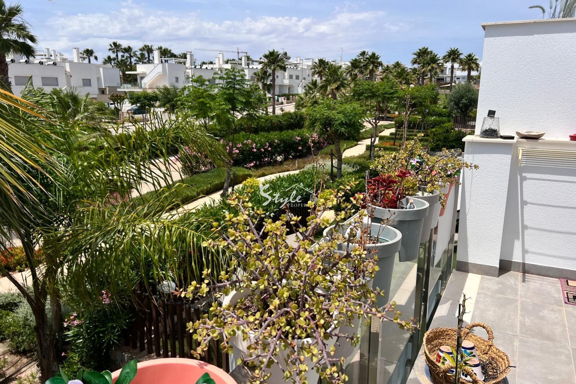 La propiedad consta de dos dormitorios con armarios empotrados, dos baños y una moderna cocina abierta totalmente equipada. El salón-comedor se abre a una agradable y espaciosa terraza privada donde podrá disfrutar del clima mediterráneo y de las maravillosas vistas a los jardines y piscina comunitarios. La propiedad también cuenta con un gran solárium privado, perfecto para tomar el sol, cenar y relajarse. Al final del día podrás aprovechar el solárium.