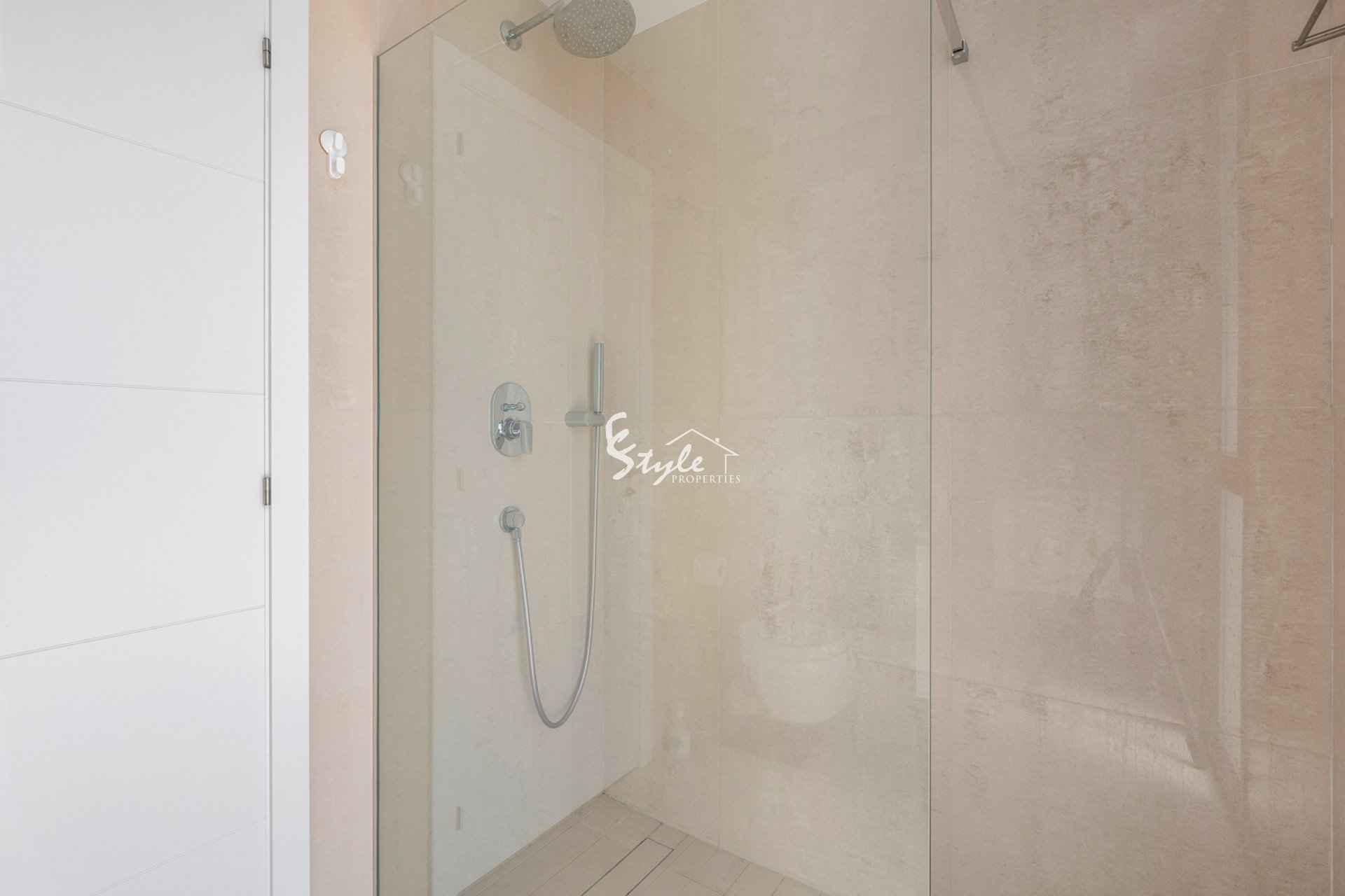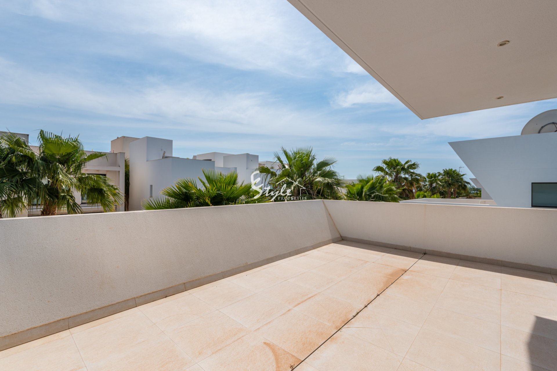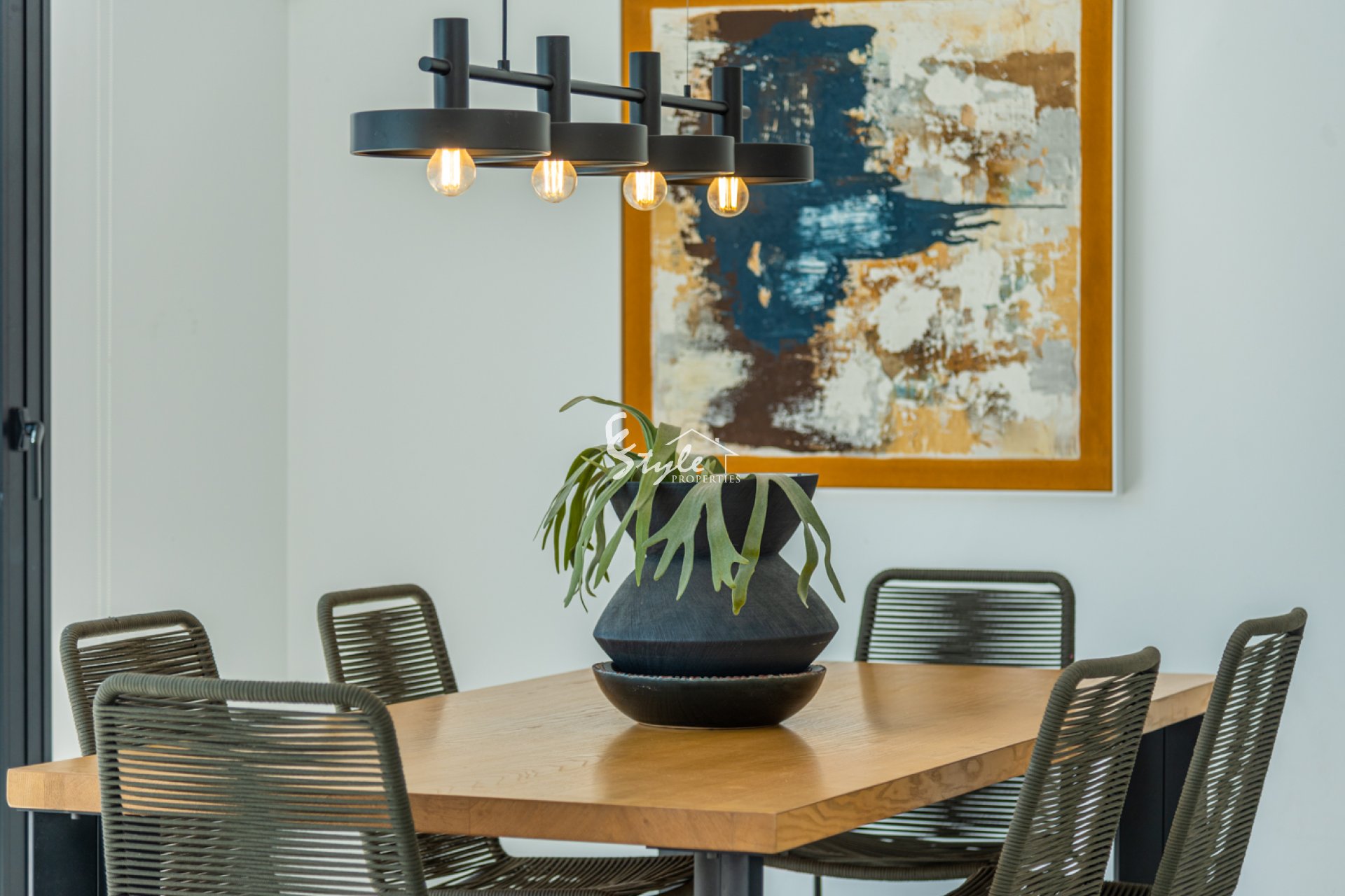 La villa se encuentra en una zona tranquila de Ciudad Quesada, a varios kilómetros de la costa. El área de la parcela en la que se encuentra la propiedad es de 400 m2, y la superficie habitable de la villa en sí es de 185 m2 y consta de dos plantas: la planta baja y el primer piso. En la planta baja hay un amplio salón, comedor con cocina, lavadero, 2 baños y un dormitorio. Tanto la sala como la cocina y el comedor tienen vista al jardín ya la piscina, lo que hace que esta parte de la casa esté maravillosamente iluminada y el interior sea muy luminoso. El acceso al primer piso es a través de escaleras y hay 2 baños, 3 dormitorios y 2 amplias terrazas a las que se puede acceder desde dos dormitorios independientes. La casa está totalmente equipada, con muebles, electrodomésticos y accesorios de baño de muy buena calidad, y toda la propiedad también está climatizada. La villa ha sido decorada con un estilo moderno y, gracias a muchos acristalamientos y accesorios, su interior es espacioso y acogedor al mismo tiempo.