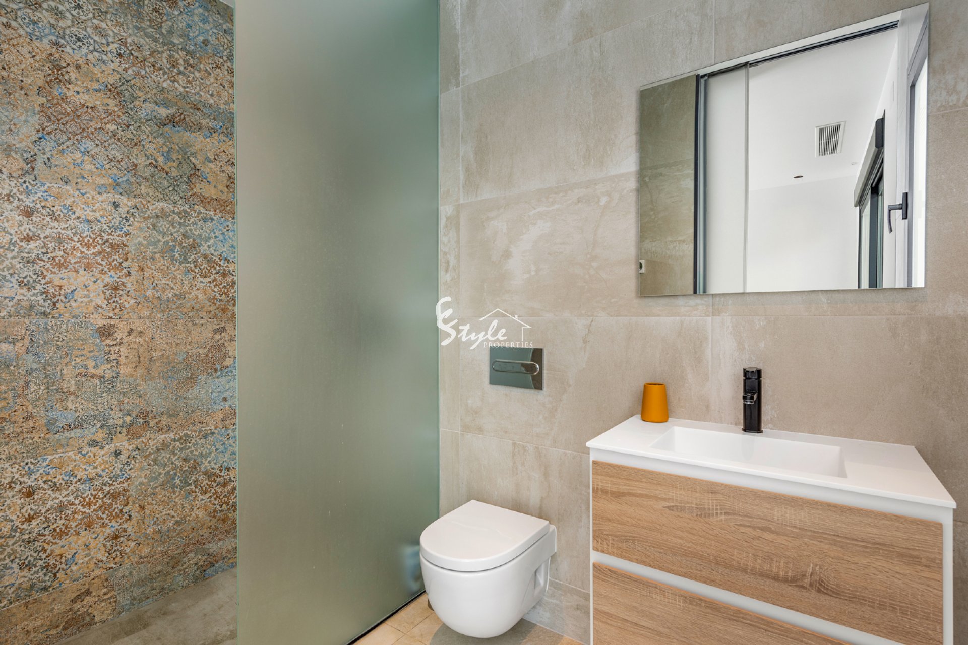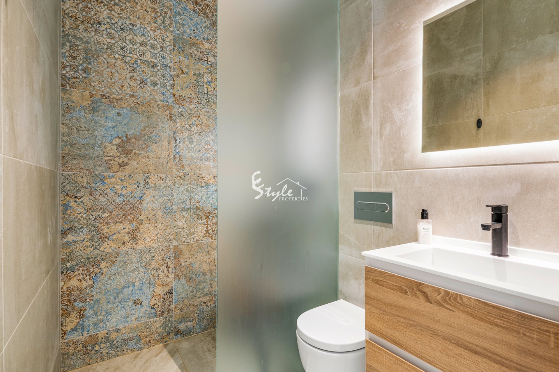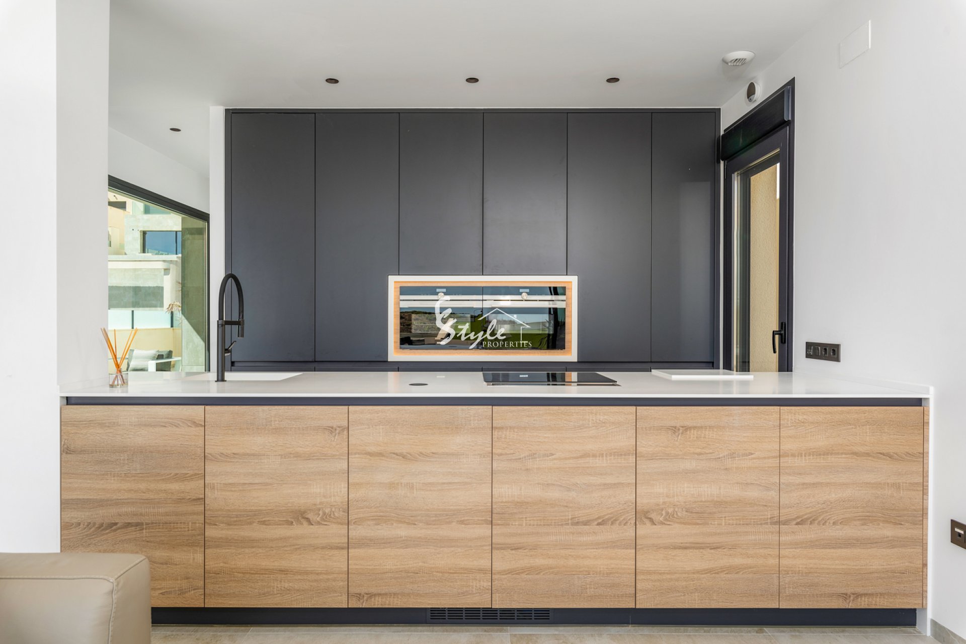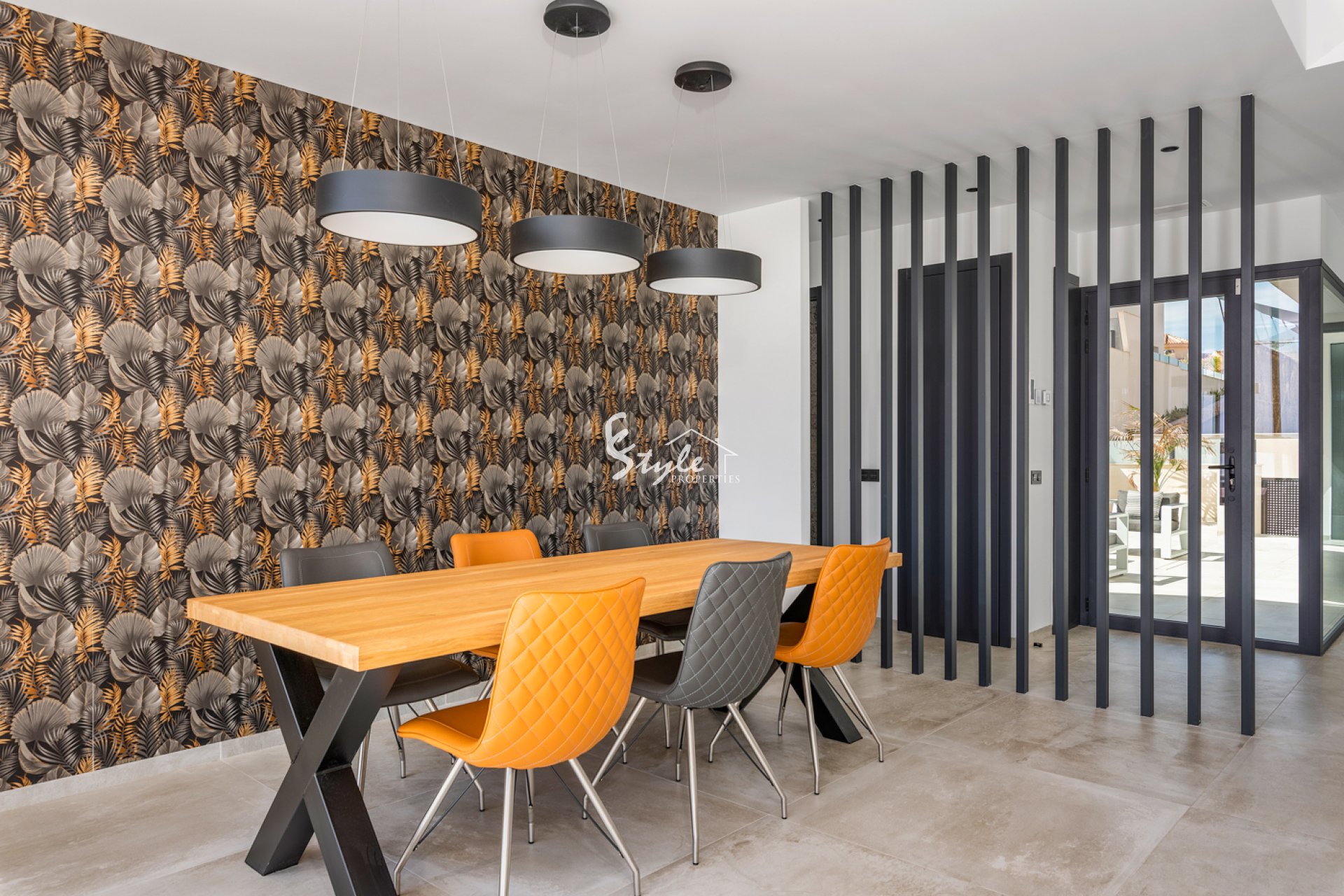 Hermosa villa de lujo con una superficie habitable total de 333 m2 dividida en dos niveles. Consta de un total de 5 dormitorios dobles, todos ellos con baños en suite, un baño adicional y un aseo de invitados. La planta principal consta de dos dormitorios con baños en suite, un aseo de invitados y una preciosa cocina abierta, salón y comedor. En el salón hay puertas correderas de cristal que se abren por completo para unir el interior con el exterior.