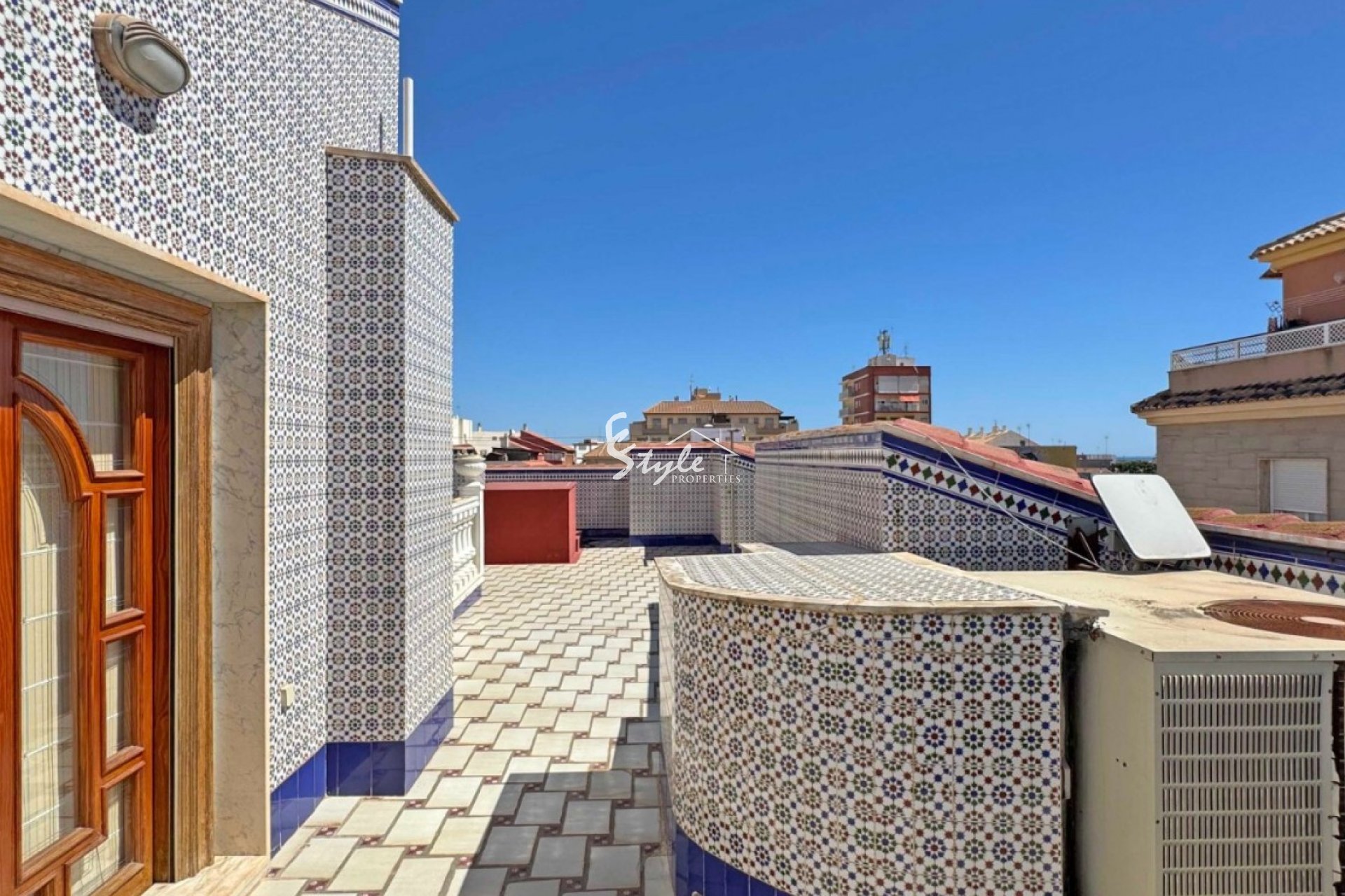 Terraza amplia, patio y solárium privado con vistas panorámicas en tres direcciones.