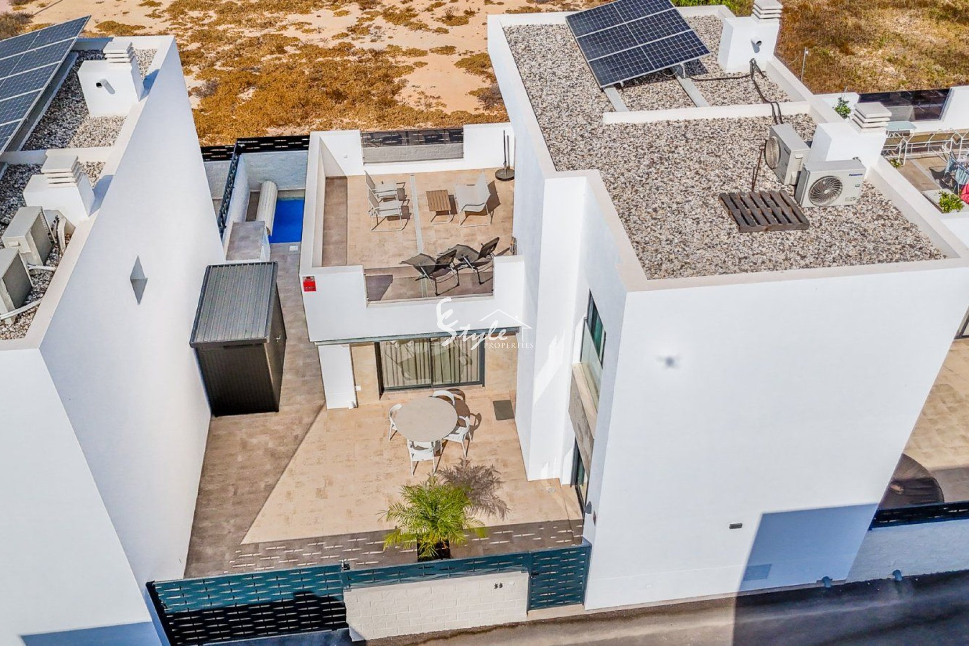 Moderna villa distribuida en dos plantas, situada en un residencial privado y tranquilo en Ciudad Quesada. La vivienda ofrece 3 dormitorios, 2 baños completos y 1 aseo. En la planta baja se encuentra un amplio salón-comedor con cocina americana, un aseo y el dormitorio principal con baño en suite.
