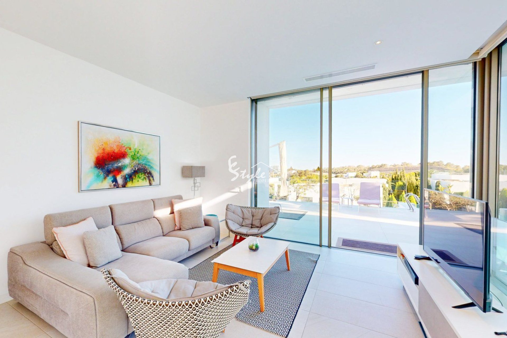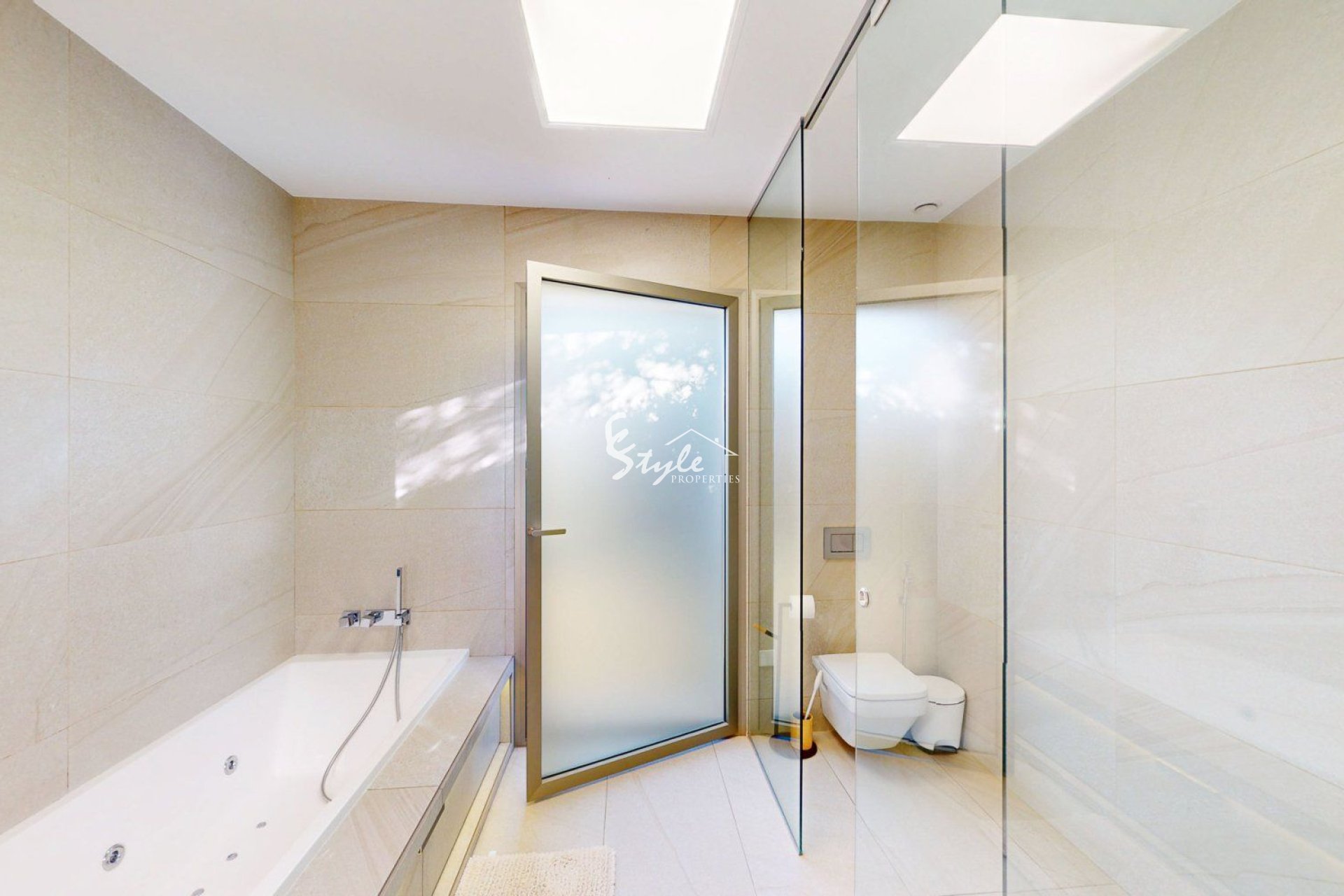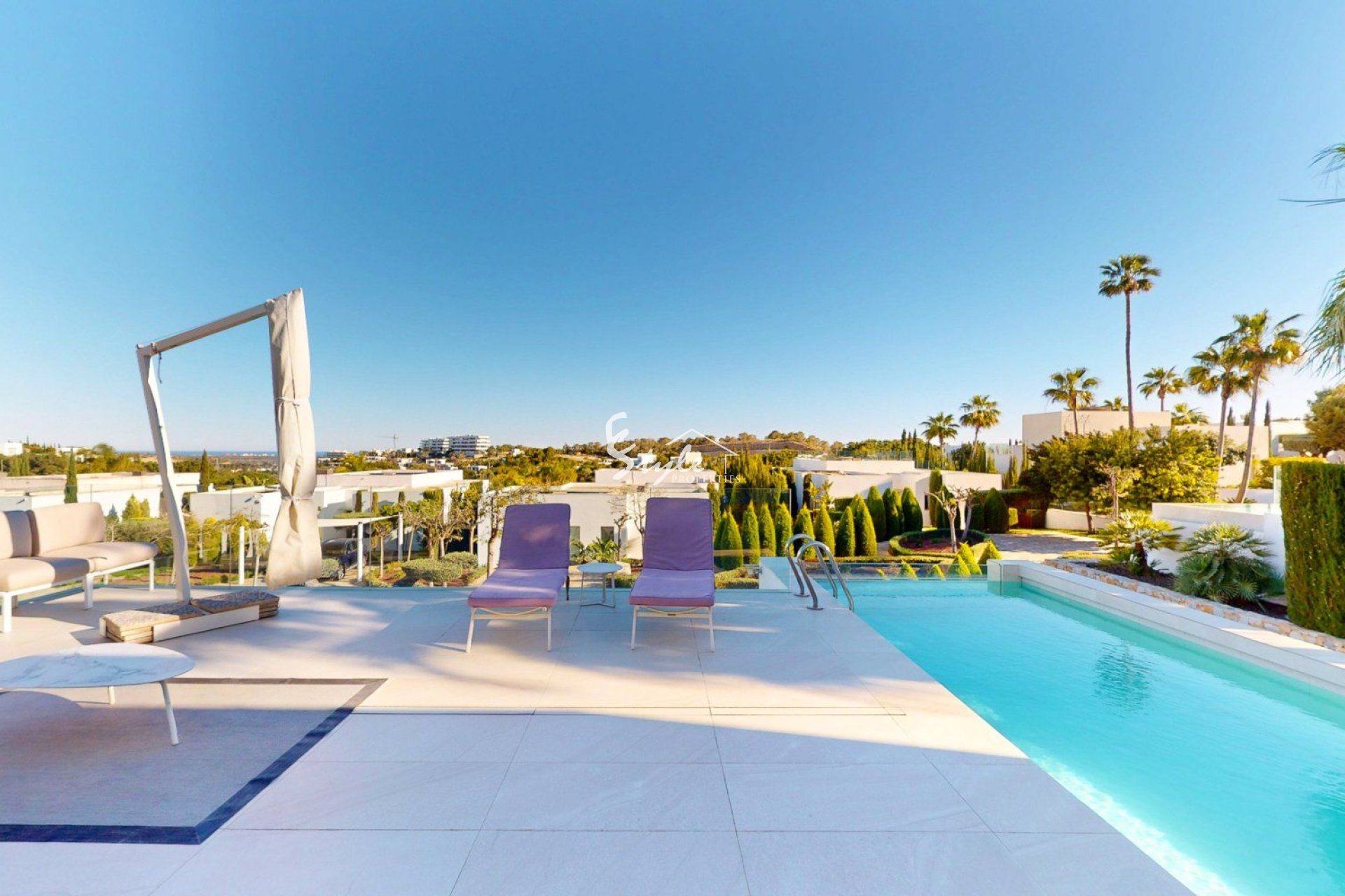 Las zonas exteriores son perfectas para disfrutar, con varias terrazas, zona de barbacoa, ducha exterior y un solárium panorámico en la azotea con vistas al golf y al mar.