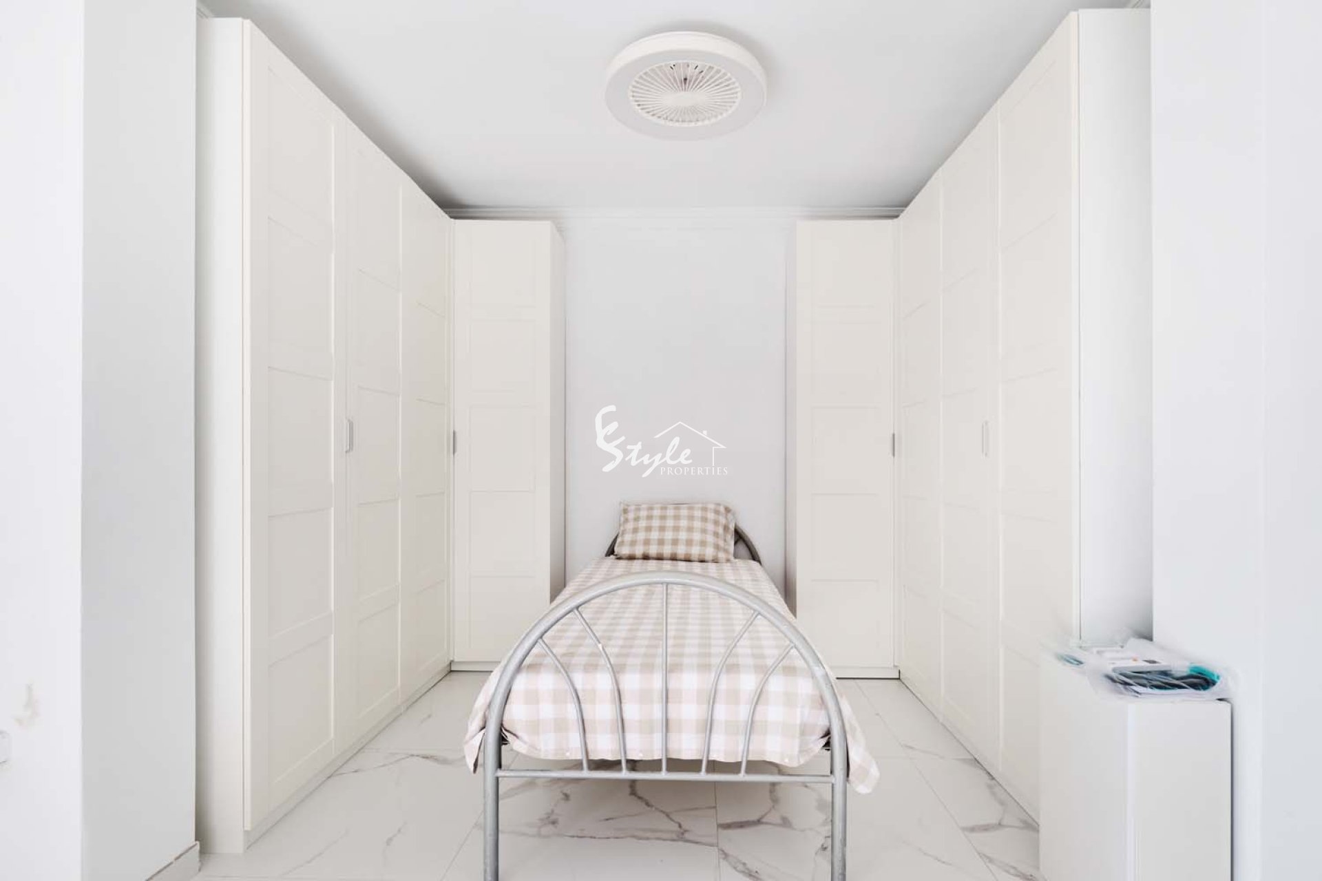 Una puerta de cristal desde el comedor da acceso a una escalera donde se encuentra el tercer dormitorio y el baño. En la parte delantera hay una pequeña terraza con puertas que dan al dormitorio, que es amplio y cuenta con baño en suite.
