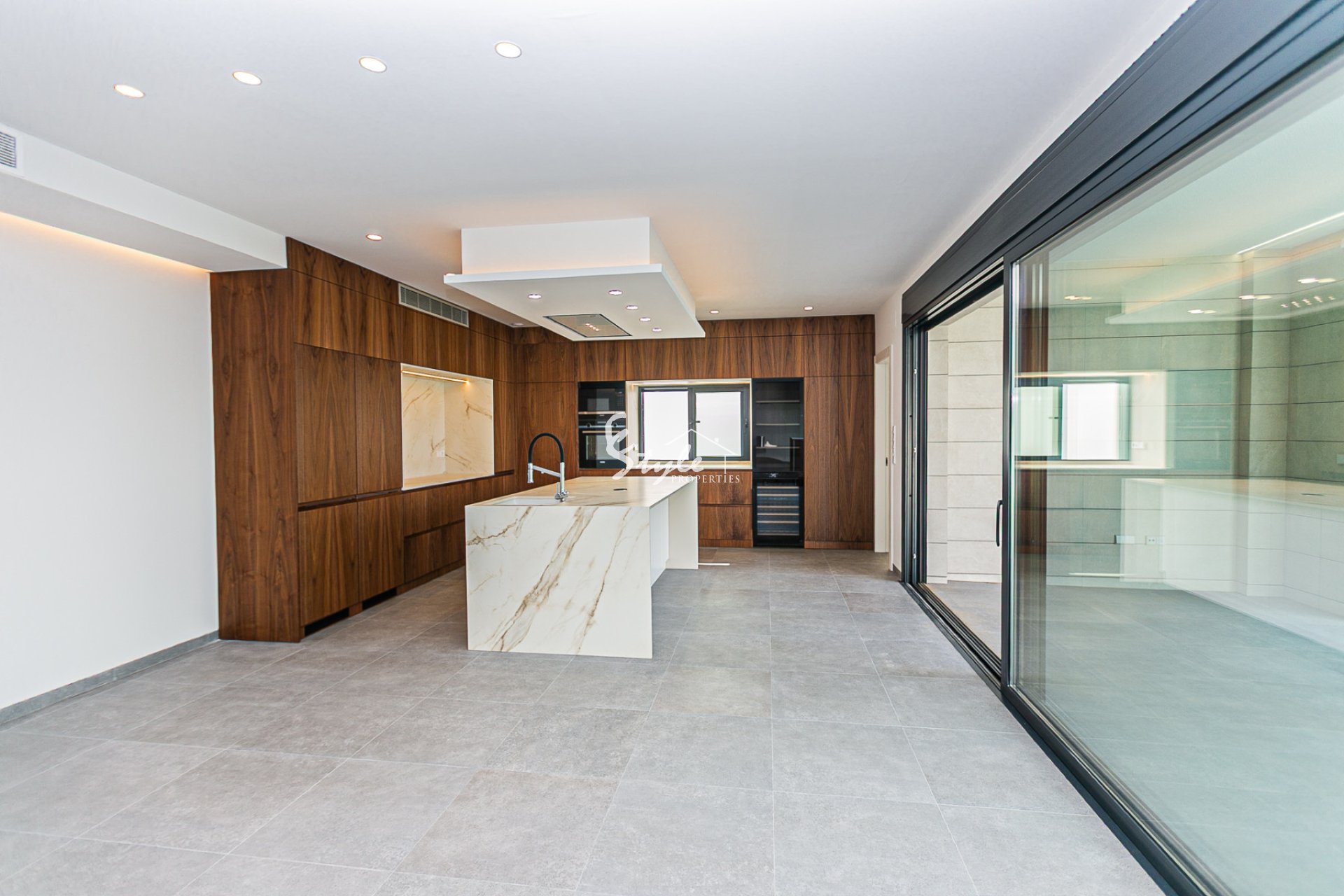 Cocina de diseño totalmente equipada con electrodomésticos premium, sistema de cocina invisible bajo encimera y una despensa oculta perfectamente integrada.