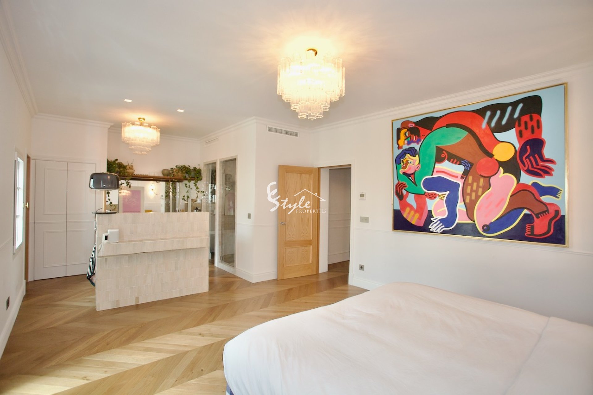 Hay tres dormitorios principales en suite, donde los dormitorios 2 y 3 tienen acceso a un lujoso baño compartido. El espacioso dormitorio principal cuenta con un baño diáfano con ducha y WC, además de un vestidor completamente equipado. Este dormitorio también cuenta con un despacho anexo; esta pequeña habitación podría ser ideal como cuarto de bebé o cuarto dormitorio para una familia joven.