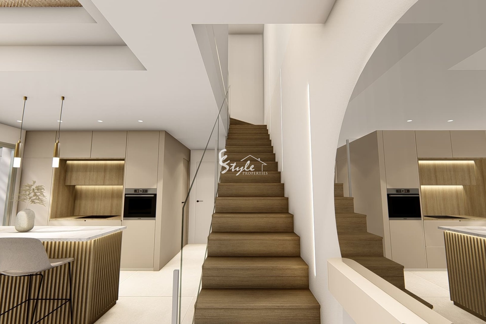 El interior de los adosados en Ciudad Quesada está diseñado para maximizar el confort y la funcionalidad. Con opciones de 3 dormitorios y 2 o 3 baños, estas viviendas se adaptan a las necesidades de diferentes tipos de familias. Los suelos de gres porcelánico aportan un toque de elegancia y son fáciles de mantener, lo que los hace ideales para el día a día. Los armarios empotrados en los dormitorios ofrecen un amplio espacio de almacenamiento, manteniendo el orden y la estética del hogar. La distribución de las viviendas está pensada para aprovechar al máximo la luz natural, creando ambientes luminosos y acogedores que invitan al descanso y la convivencia familiar.