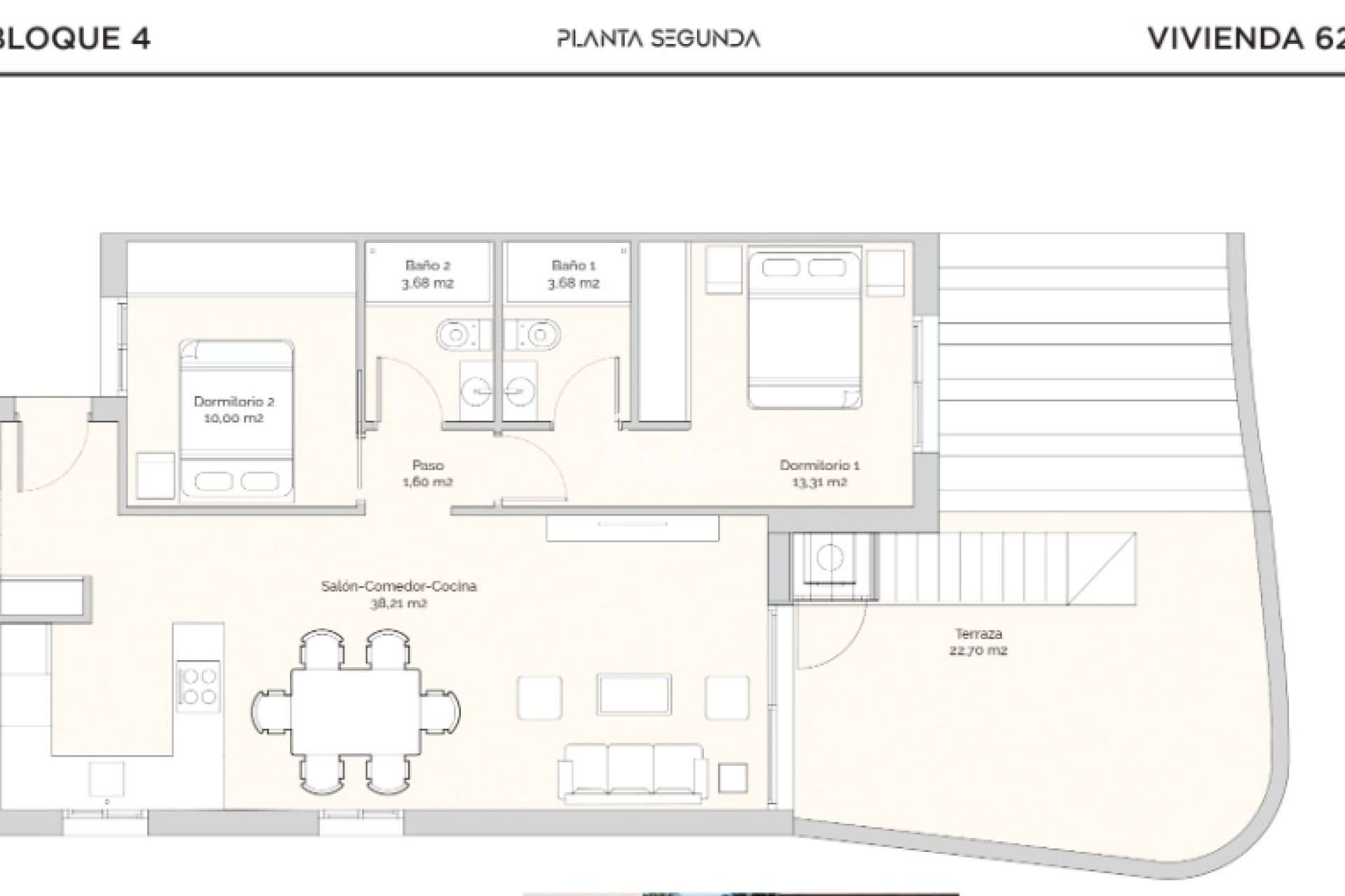 El interior de las viviendas está cuidadosamente diseñado para ofrecer confort y modernidad. Los apartamentos, bajos y áticos cuentan con suelos de gres porcelánico, que aportan un toque elegante y son fáciles de mantener. Todas las propiedades están equipadas con aire acondicionado, garantizando un ambiente agradable durante todo el año. Los armarios empotrados proporcionan un amplio espacio de almacenamiento, mientras que el videoportero añade un nivel adicional de seguridad y comodidad. La distribución incluye dos dormitorios y dos baños, adaptándose a las necesidades de diferentes tipos de familias.