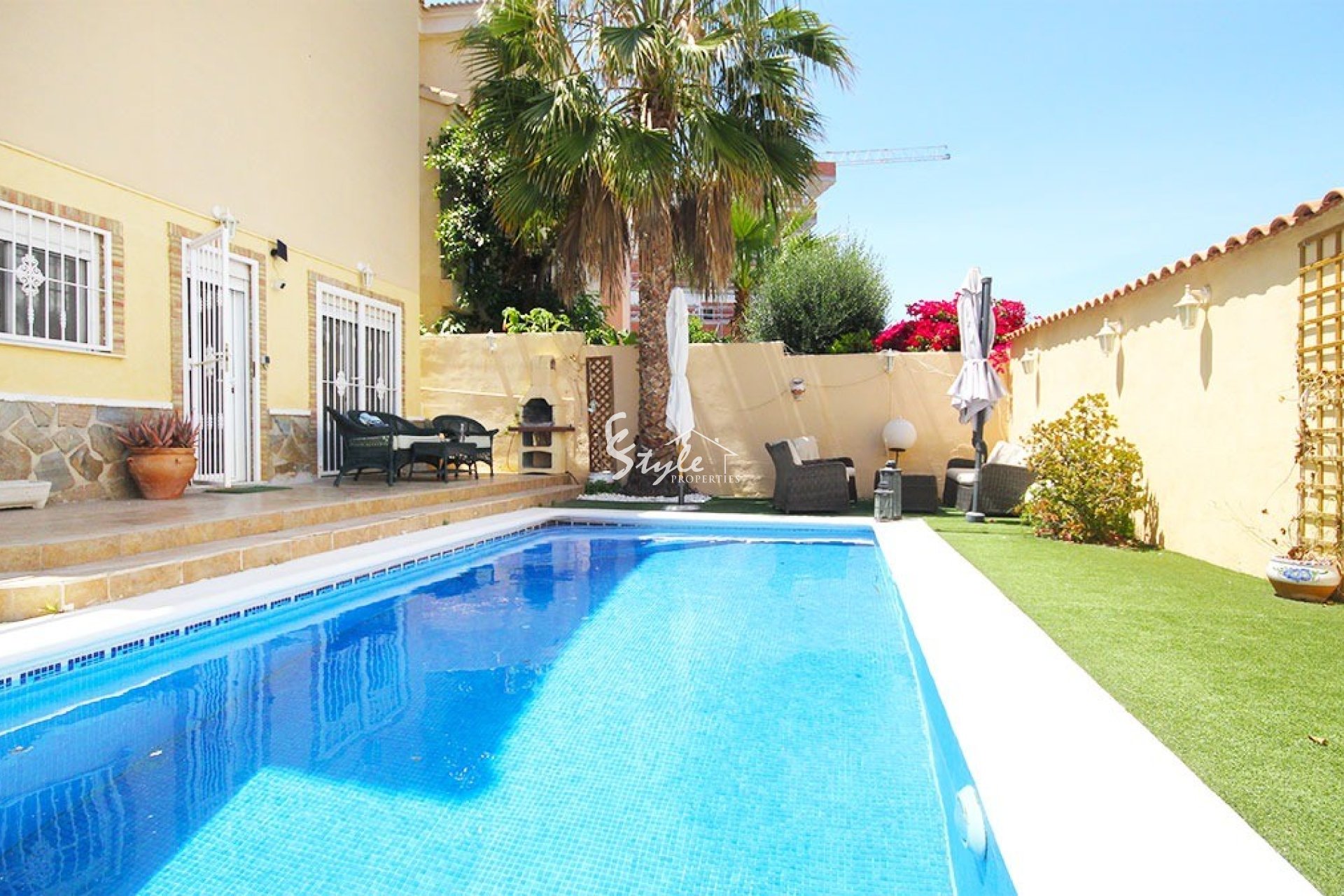 A solo 10 minutos en coche se encuentran cuatro campos de golf y varias playas. La propiedad ofrece fácil acceso al centro comercial La Zenia, a la autopista y a los aeropuertos internacionales de Alicante y Murcia.