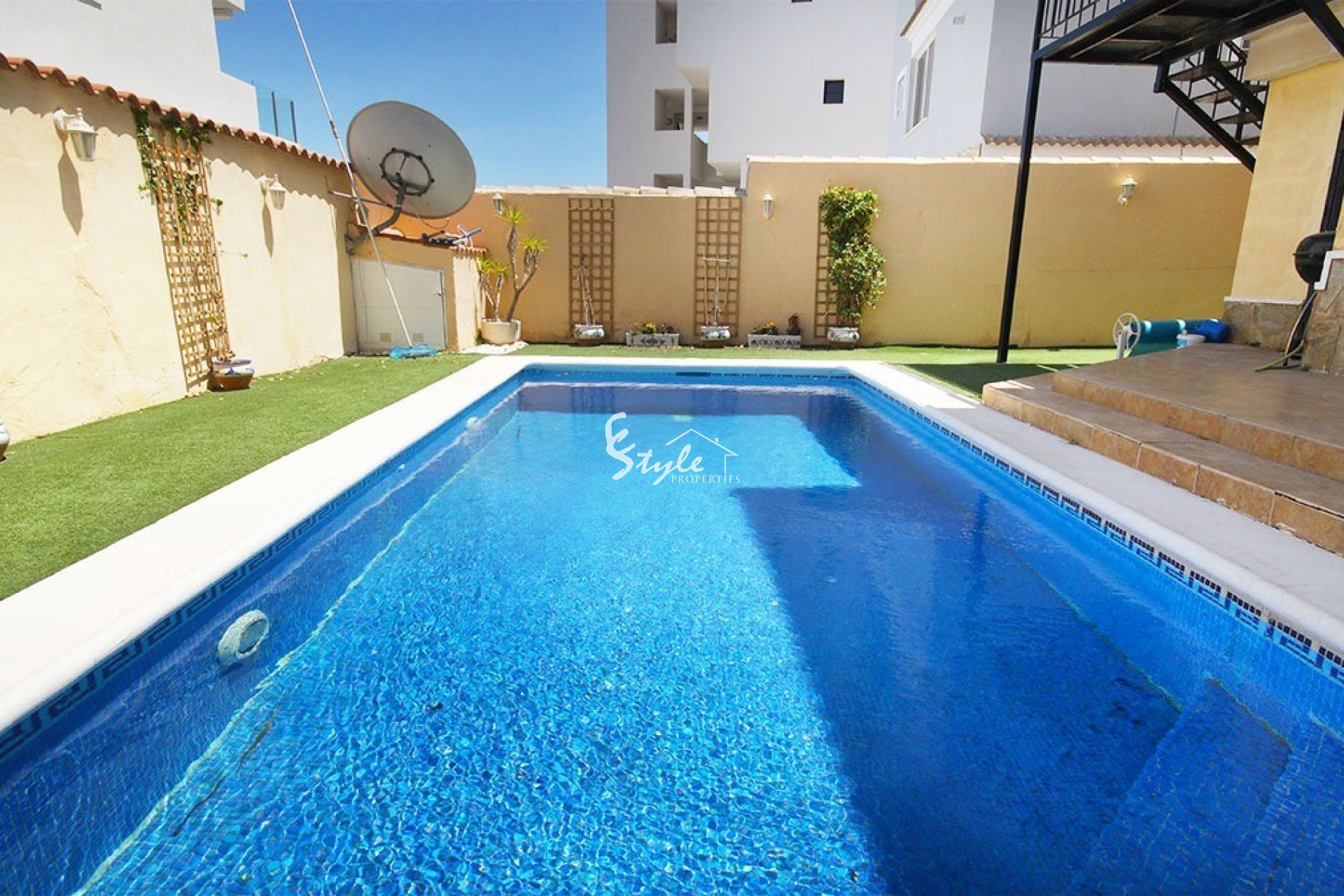 Se vende villa de 4 dormitorios con piscina privada de 7×3 m, situada en una calle tranquila de la consolidada zona residencial de Las Filipinas. Supermercados, bares y restaurantes se encuentran a solo 3 minutos en coche.