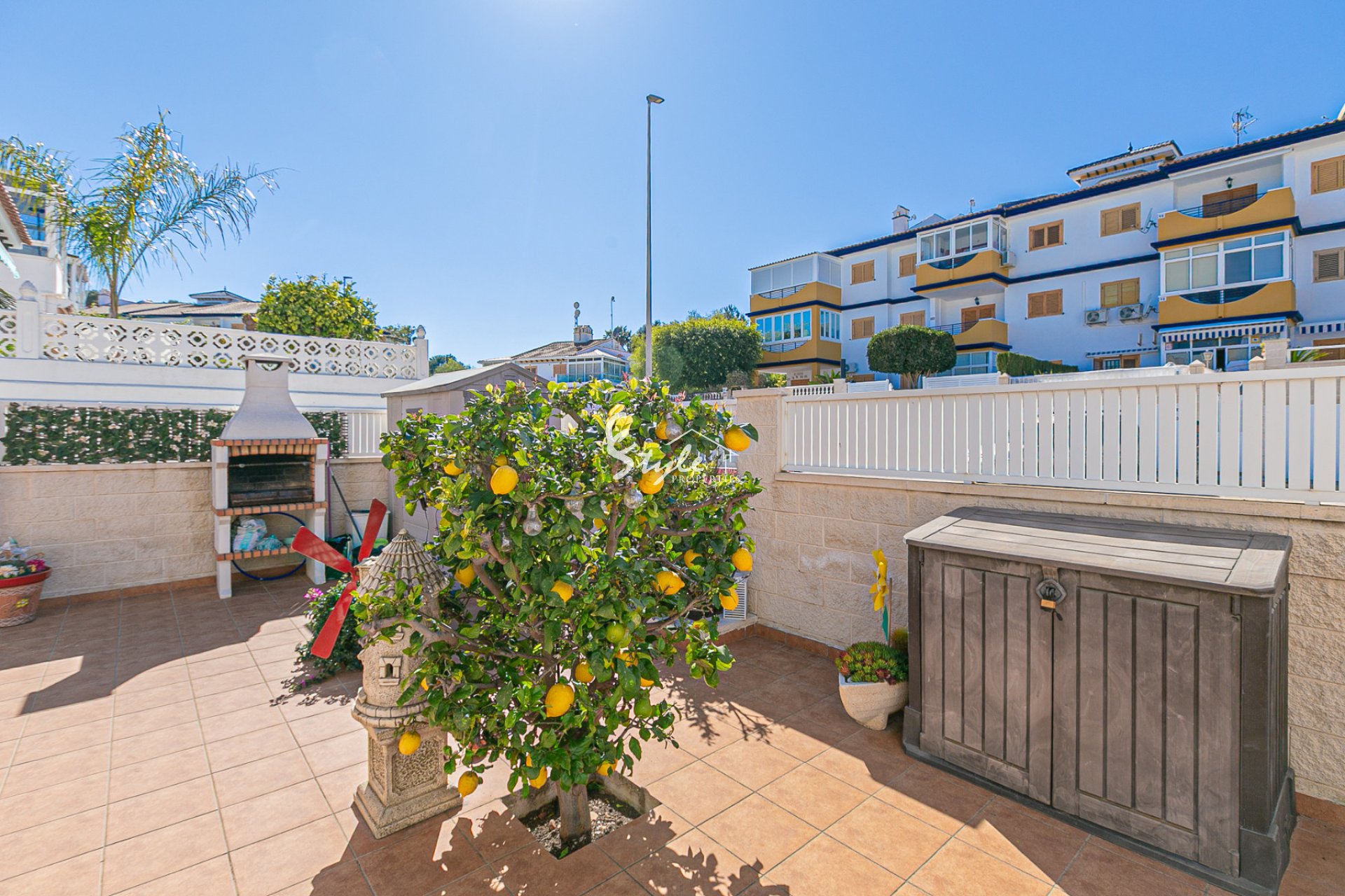 Ubicada dentro del complejo residencial Río Mar 3, esta villa pareada orientada al sur se beneficia del acceso a una amplia zona de parque comunitario y piscina. La propiedad, en posición de esquina, consta de dos dormitorios y dos baños completos, junto con una cocina de concepto abierto con un lavadero/cuarto de servicio independiente, además de un amplio salón/comedor, así como una terraza acristalada, que proporciona espacio adicional utilizable, adecuado para comer o relajarse durante todo el año. Situada en una parcela de esquina de buen tamaño con un jardín patio de bajo mantenimiento, además de una espaciosa terraza superior. La vivienda está equipada con aire acondicionado e incluye trasteros tanto interiores como exteriores. Se vende completamente amueblada y en excelente estado. La comunidad Riomar III es conocida por jardines comunitarios bien cuidados y piscinas. Estos complejos se encuentran en un barrio tranquilo con árboles maduros y zonas verdes, y en general se consideran adecuados tanto para vivir todo el año como para uso vacacional. La ubicación es una de las principales ventajas de Riomar: está en un entorno tranquilo y, a la vez, a poca distancia de las playas de Mil Palmeras, a solo 900m (incluida Playa de Mil Palmeras, que se extiende a lo largo de fina arena dorada galardonada con Bandera Azul) y de bares, cafeterías y tiendas locales. Póngase en contacto con nosotros hoy mismo para visitar esta vivienda bien presentada en una ubicación ideal.