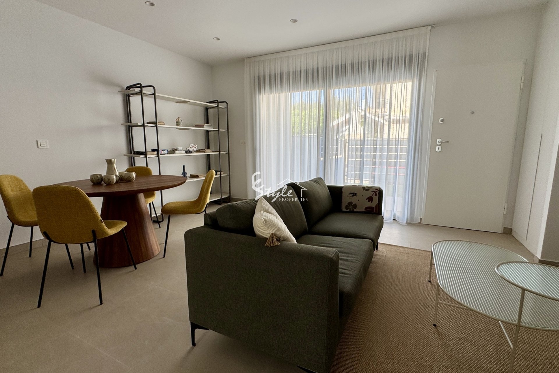 El interior de los bungalows está diseñado con un enfoque en la comodidad y la funcionalidad. Los suelos de gres porcelánico aportan un toque de elegancia y son fáciles de mantener. Cada propiedad dispone de dos dormitorios y dos baños, ofreciendo un espacio adecuado para familias pequeñas o parejas. La inclusión de aire acondicionado garantiza un ambiente agradable durante todo el año. Los armarios empotrados proporcionan un almacenamiento eficiente, mientras que los electrodomésticos incluidos facilitan la vida diaria. El videoportero añade un nivel extra de seguridad y comodidad, permitiendo controlar el acceso a la vivienda de manera sencilla.