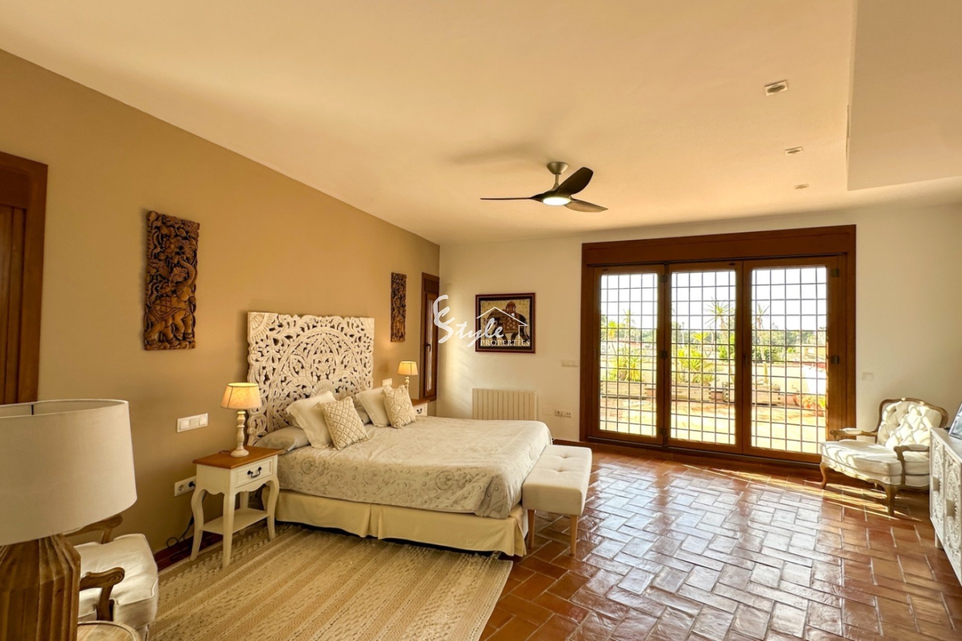 La villa cuenta con 7 dormitorios y 5 baños, incluyendo una impresionante suite principal con vestidor y baño en suite.