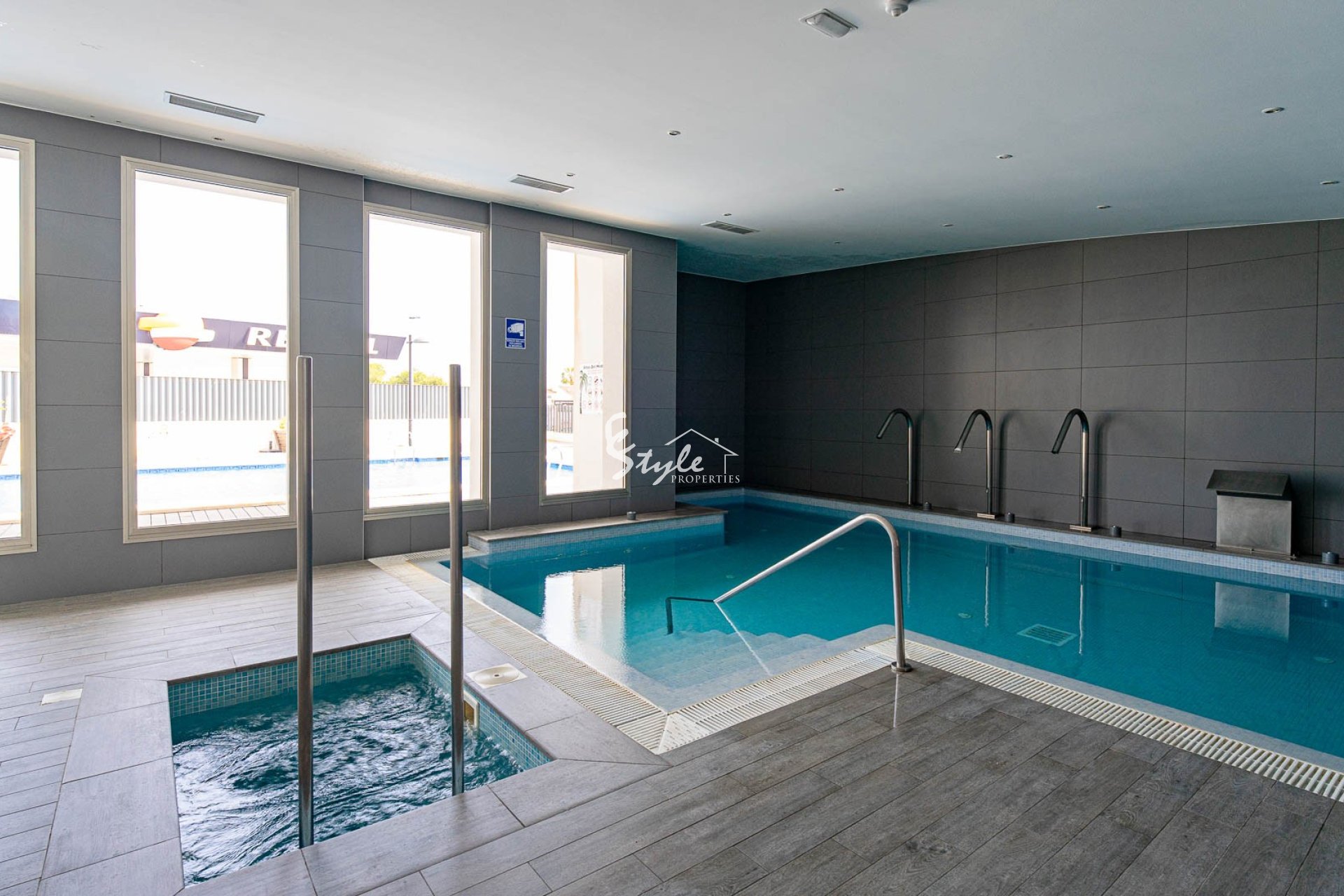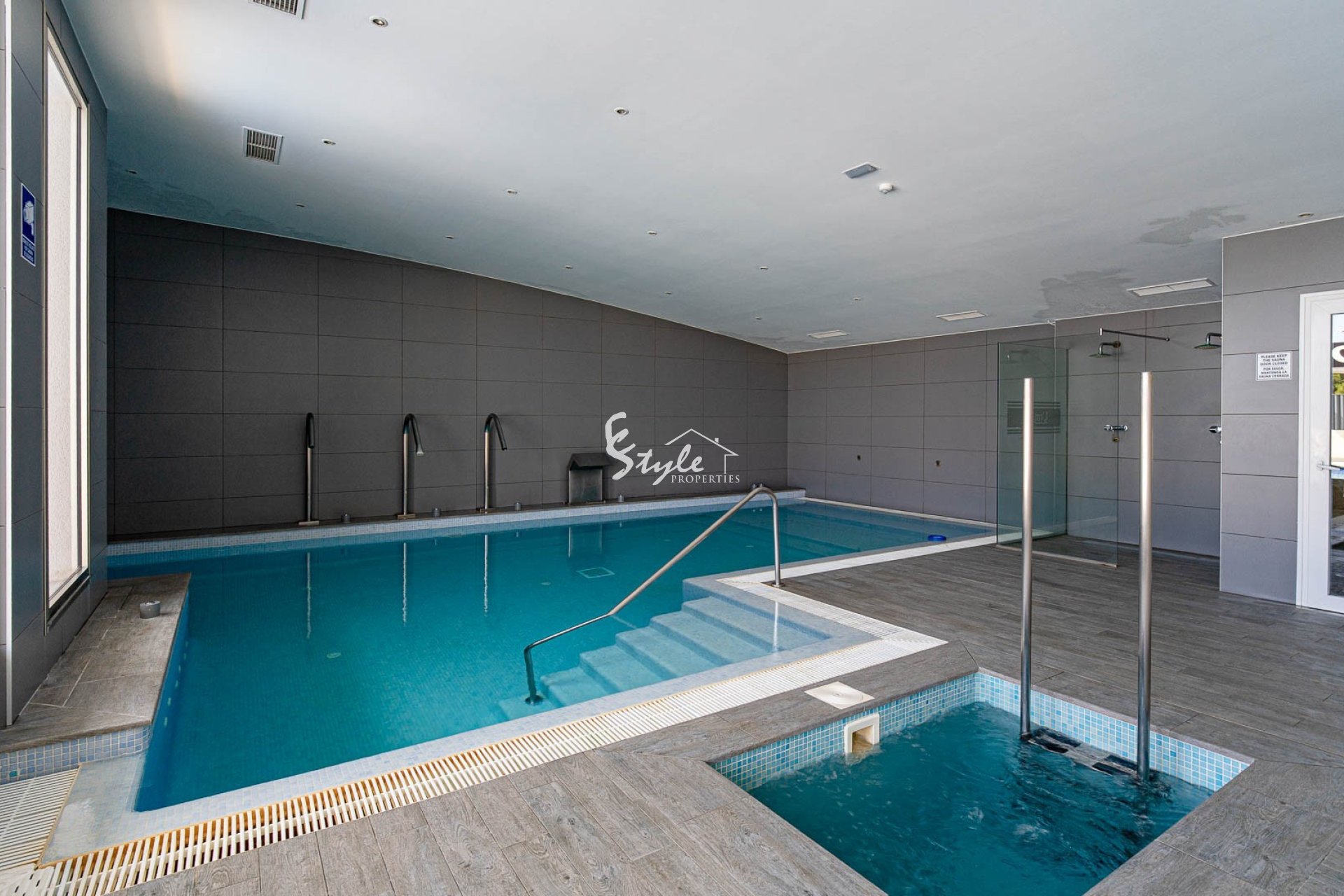 El complejo residencial ofrece excelentes zonas comunes: piscina comunitaria, piscina climatizada, sauna y un gimnasio moderno, todo pensado para disfrutar durante todo el año. La urbanización es cerrada, lo que garantiza seguridad y tranquilidad.