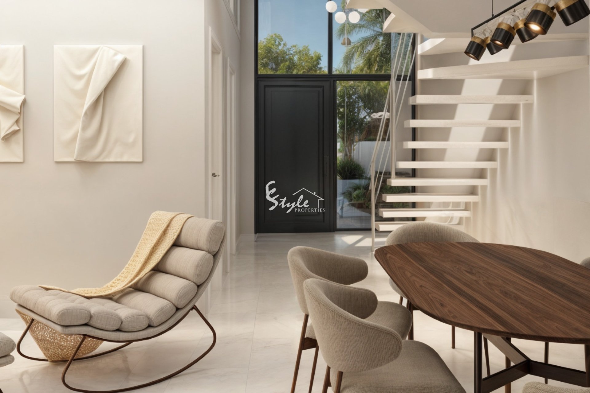 El interior de los adosados está diseñado para ofrecer el máximo confort y funcionalidad. Con tres dormitorios y tres baños, cada vivienda está equipada para satisfacer las necesidades de familias o parejas que buscan espacio y comodidad. Los suelos de gres porcelánico aportan un toque de elegancia y son fáciles de mantener. La inclusión de electrodomésticos modernos y un sistema de domótica asegura que cada hogar esté a la vanguardia de la tecnología. Los armarios empotrados proporcionan un almacenamiento eficiente, mientras que el videoportero añade un nivel adicional de seguridad y comodidad. La distribución incluye un garaje, garantizando espacio para el estacionamiento y almacenamiento adicional.