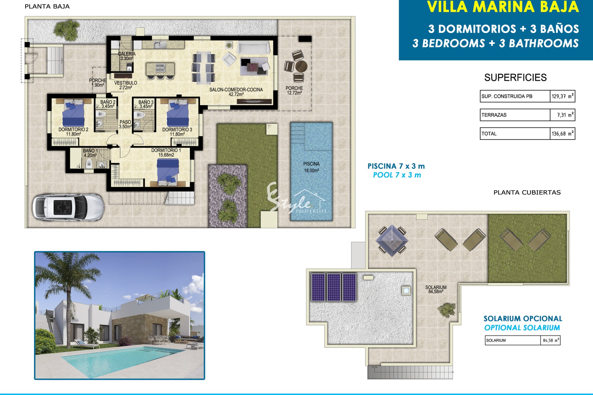 Las viviendas destacan por sus espacios exteriores cuidadosamente diseñados. Cada propiedad cuenta con un jardín privado, perfecto para disfrutar del aire libre y de momentos de relax en familia o con amigos. Además, las terrazas ofrecen un espacio adicional para disfrutar del clima mediterráneo y de las impresionantes vistas al mar. Para aquellos que buscan un toque de lujo adicional, existe la opción de incluir un solárium, ideal para tomar el sol en total privacidad. La presencia de una piscina privada en cada vivienda añade un elemento de exclusividad y confort, permitiendo disfrutar de refrescantes baños durante los cálidos días de verano.