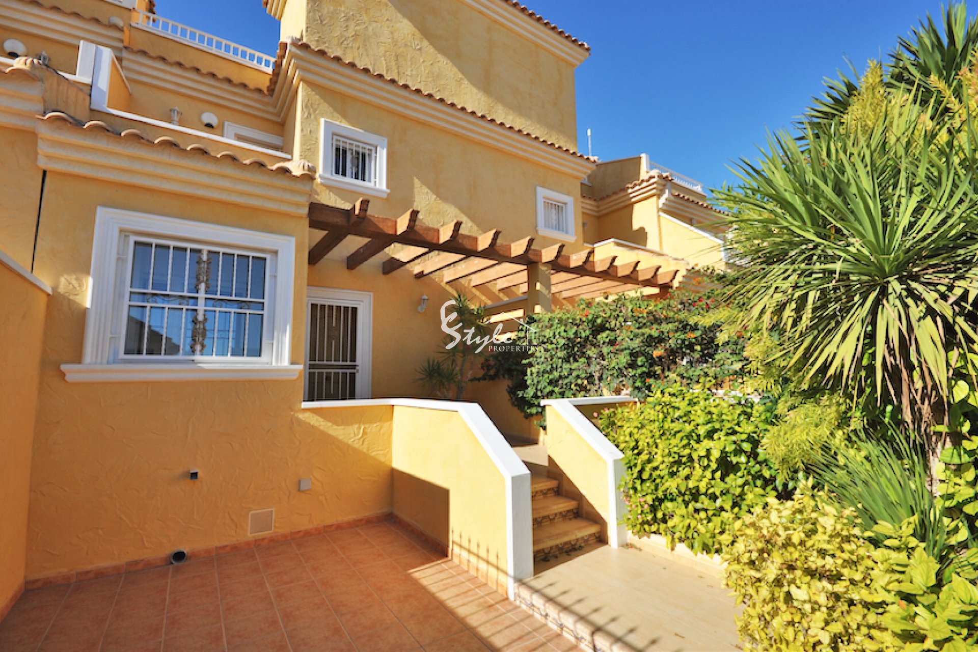 Ofrecemos amplia casa adosada situada en la urbanización popular Mariblanka en Punta Prima. La casa tiene 3 dormitorios, 2 baños, amplio salón, cocina independiente con lavadero, terraza y solarium privado con vistas panorámicas al mar. La casa se encuentra en excelentes condiciones, totalmente amueblado, con aire acondicionado. La casa tiene dos terrazas, acceso directo a la piscina.