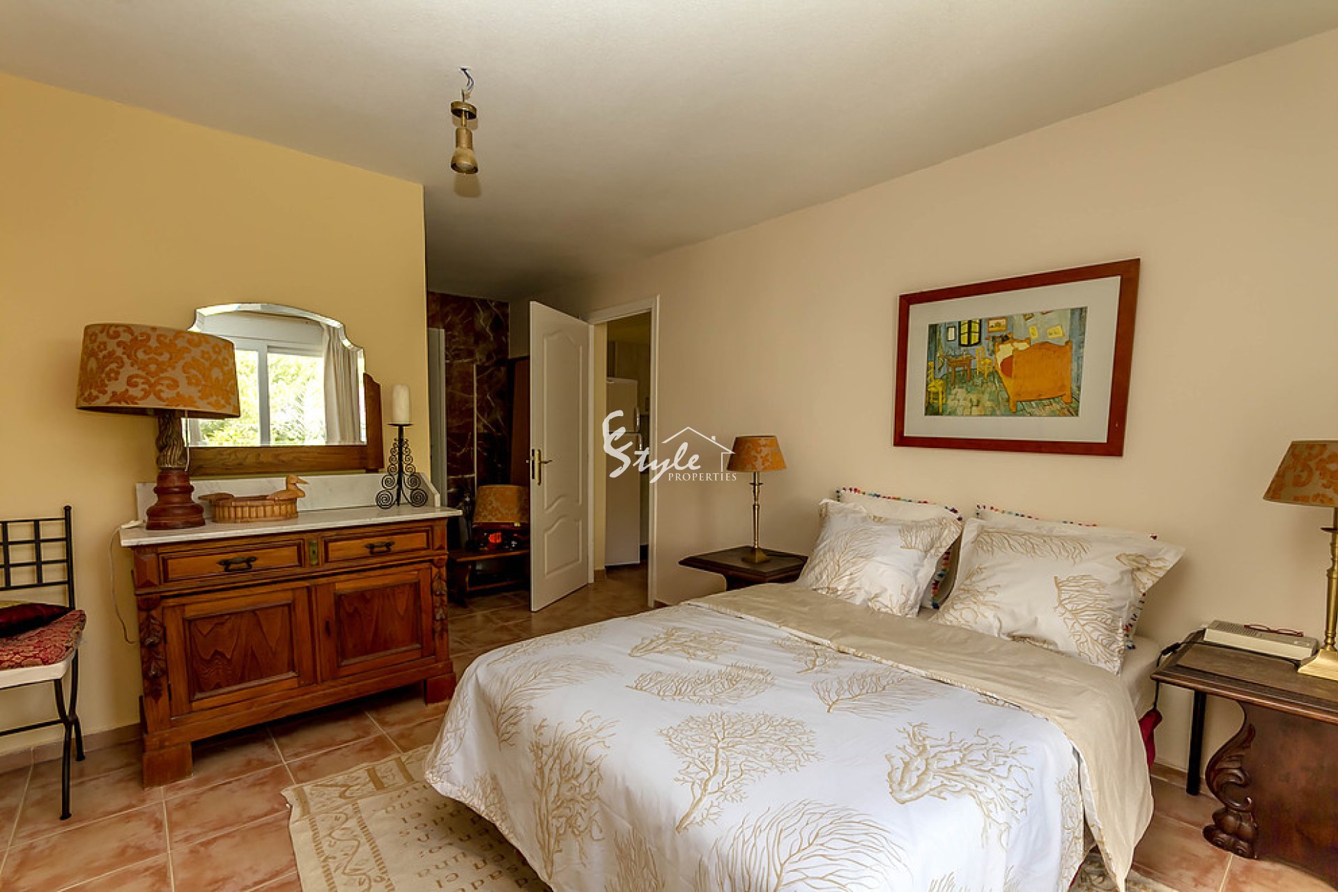 La casa tiene una superficie de 265 metros cuadrados, 4 dormitorios, 3 baños, 2 salas de estar, comedor, cocina, lavadero, terraza. También tiene gas, aire acondicionado, sistema de alarma. Se vende parcialmente amueblado. La casa está situada en una parcela grande con piscina privada y un hermoso jardín.