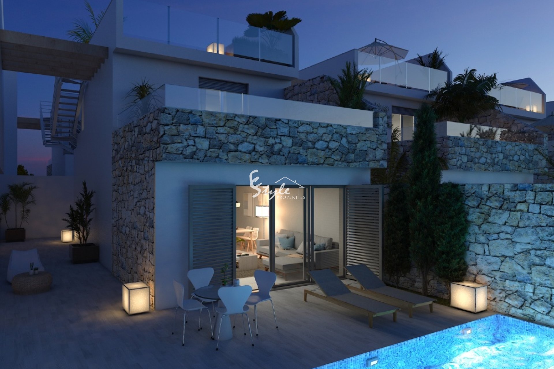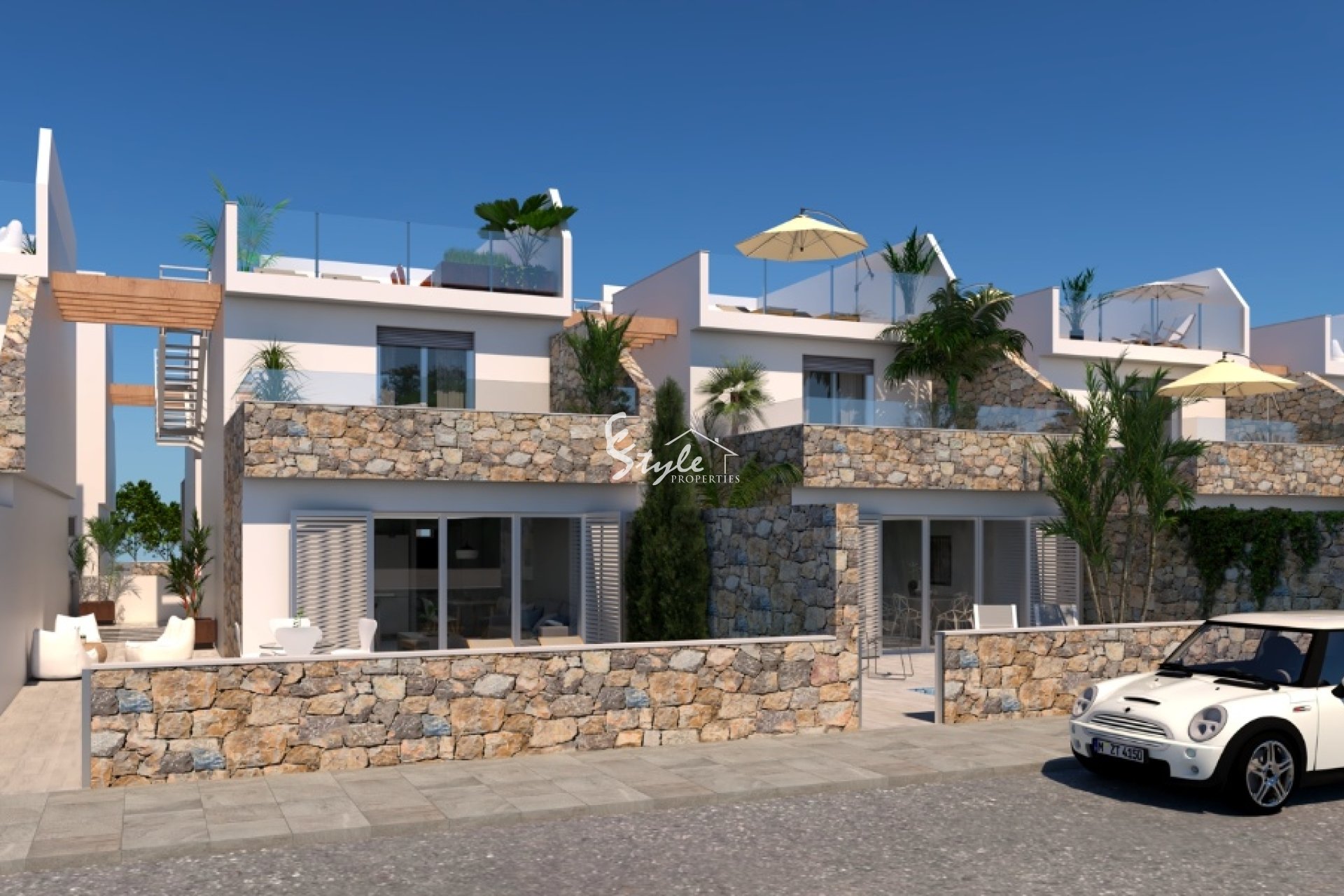 Un nuevo complejo con 39 villas independientes se encuentra a solo 400 metros de la playa. Villas con 3 dormitorios, 2 baños con calefacción por suelo radiante, amplio salón y comedor, cocina, terraza y un solarium. En el exterior podrá disfrutar de un precioso jardín y una piscina privada.