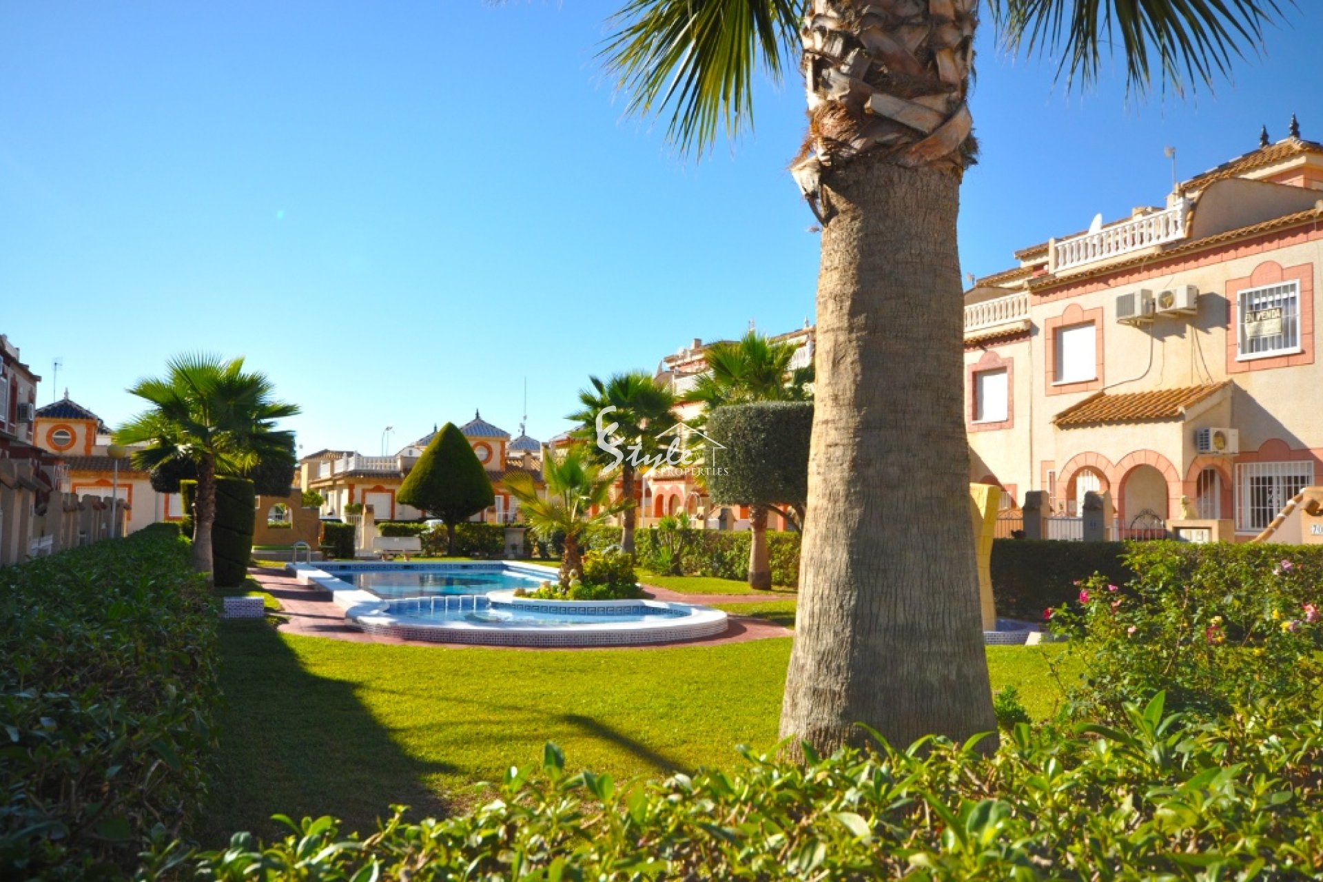 Le ofrecemos a la venta esta bonita casa adosada se encuentra en una zona popular de Playa Flamenca. La propiedad tiene 2 dormitorios, 1 baño y 1 aseo para invitados, sala de estar, cocina independiente con salida al patio trasero con cocina de invierno y una terraza. Afuera podrá disfrutar de una zona de piscina comunitaria muy bonita también.