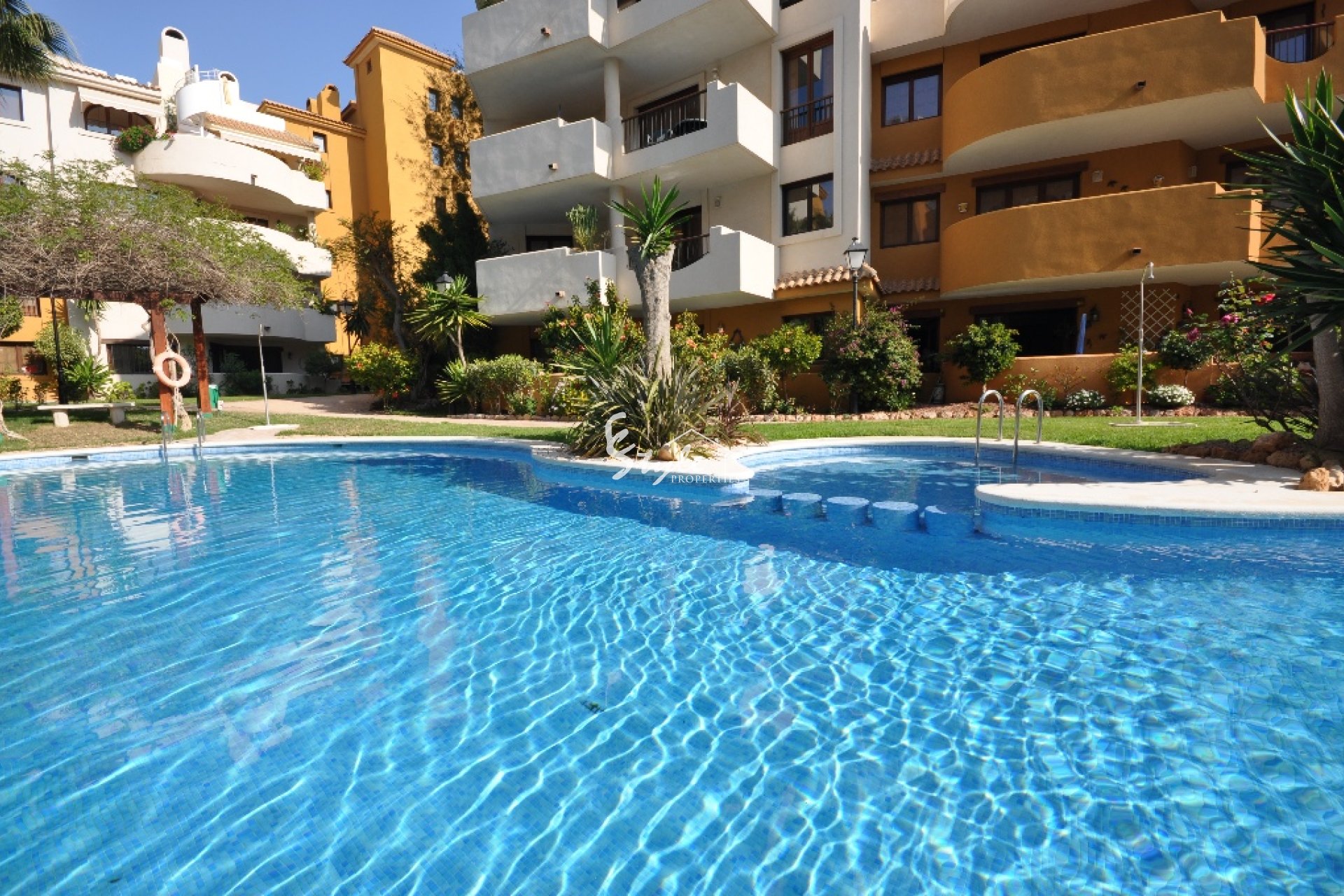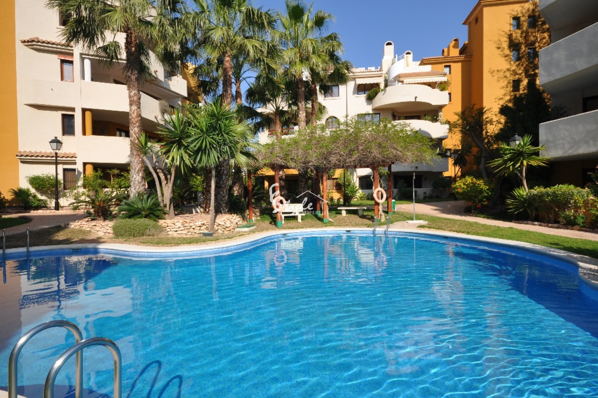 Panorama Park de lujo urbanización cerrada con zona verde ajardinada y una piscina comunitaria. El mar y las playas de Punta Prima a sólo unos minutos a pie. También a poca distancia de tiendas, restaurantes, paseo precioso, gimnasio, oficinas bancarias. Aproximadamente 5 a 10 minutos en coche de los principales centros comerciales, campos de golf, lagos de sal únicas de Torrevieja.