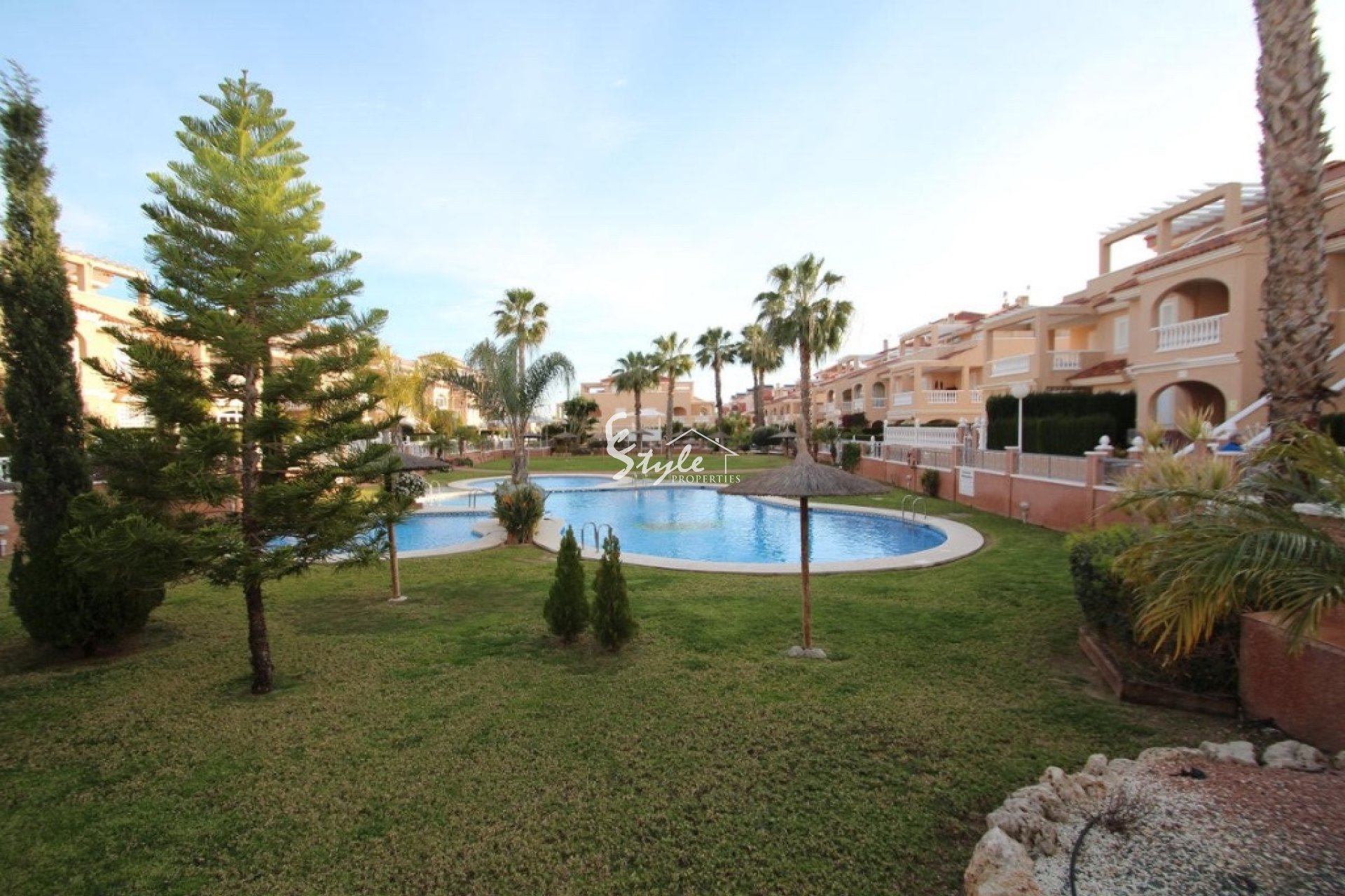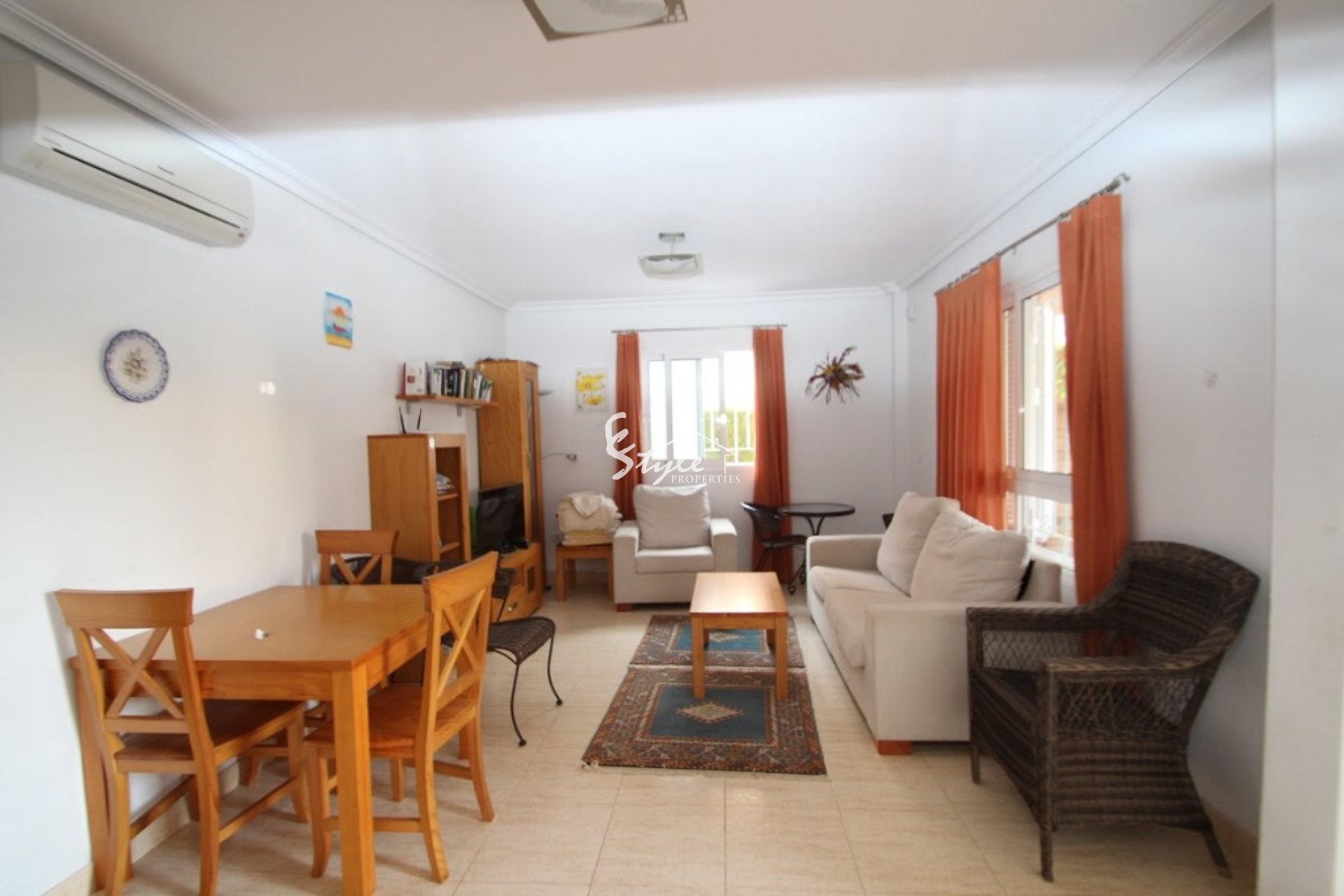 La casa se encuentra en una urbanización cerrada, cerca de todos los servicios, muy próximo a las playas de Orihuela Costa, de campo de golf y de todos comercios.