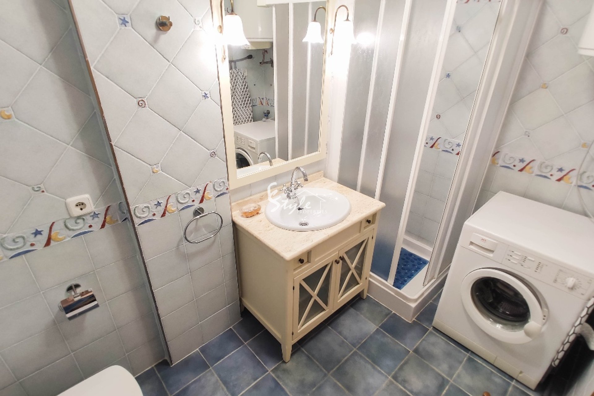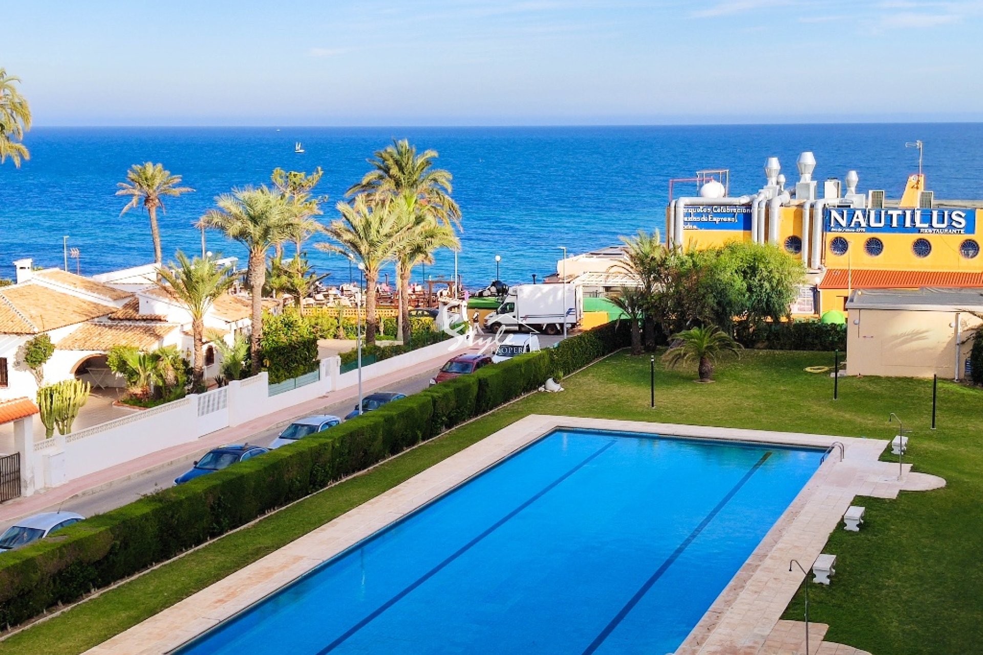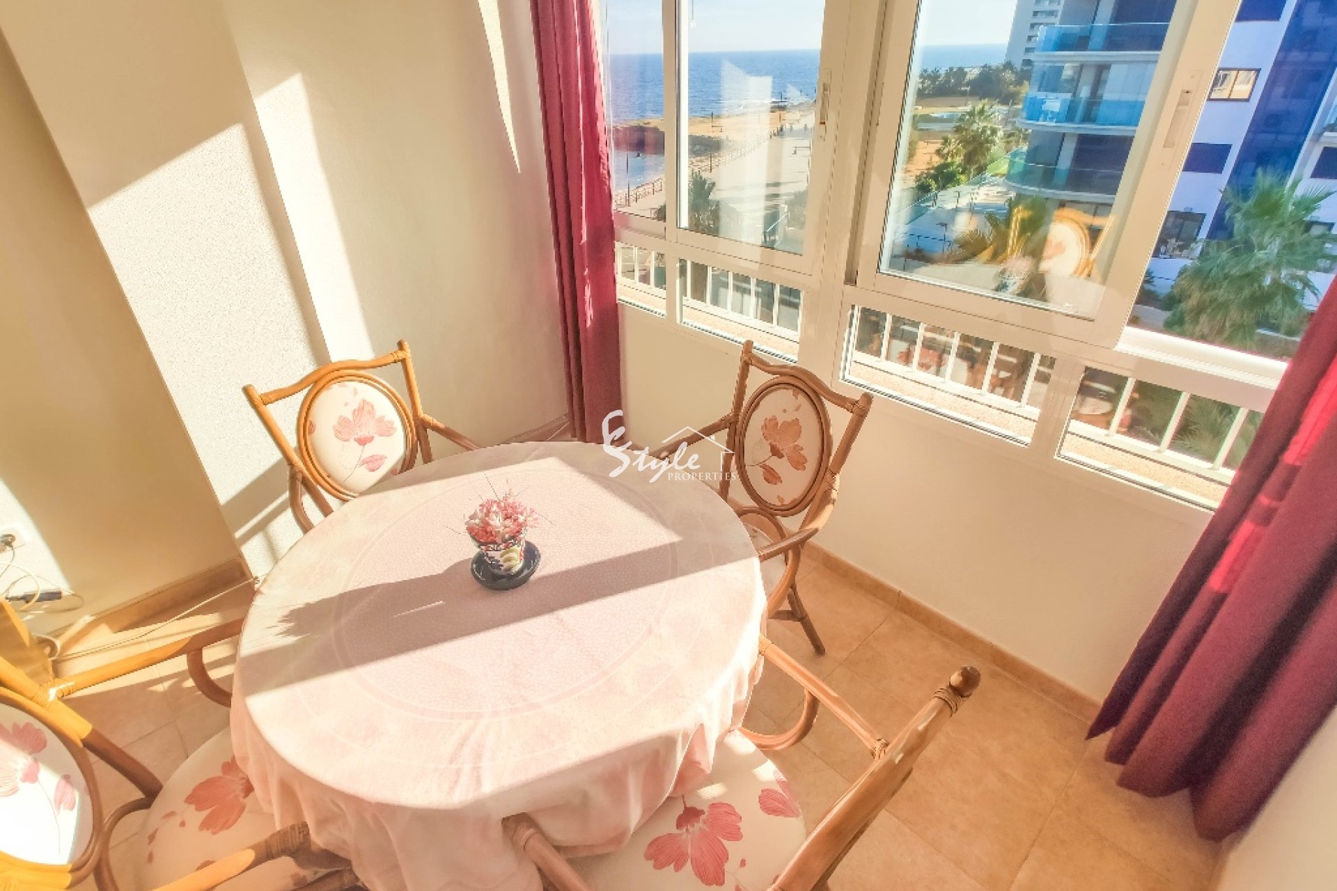 Apartamento a escasos metros de la playa en urbanización Punta Prima. Acogedor apartamento en venta con vistas al mar disponen de 2 dormitorios, 1 cuarto de baño, cocina amueblada y equipada con electrodomésticos, salon-comedor con bonitas vistas al mar. Urbanización cerrada con piscina comunitaria y garaje. La propiedad esta ubicada en centro de todos los servicios y infraestructura y a 100 m del mar.