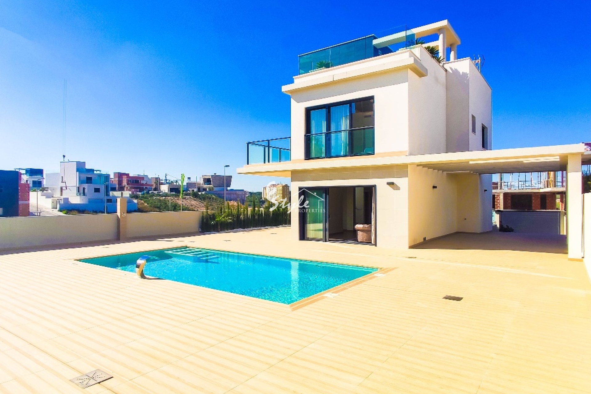 Vendemos viviendas de nueva promoción situadas en Dehesa de Campoamor, cerca de la playa y alrededor de todos los servicios imprescindibles se encuentra este paraíso. Preciosas villas de lujo con magníficas vistas cerca del mar Las modernas viviendas construidas sobre una parcela de 500 m2, con piscina privada. Casa tiene una arquitectura muy moderna. Las casas ofrecen 3 o 4 dormitorios, 2 baños, amplio salón comedor, cocina abierta. La vivienda cuenta con instalación de suelo radiante en todos los baños y luces interiores/exteriores incluidas.