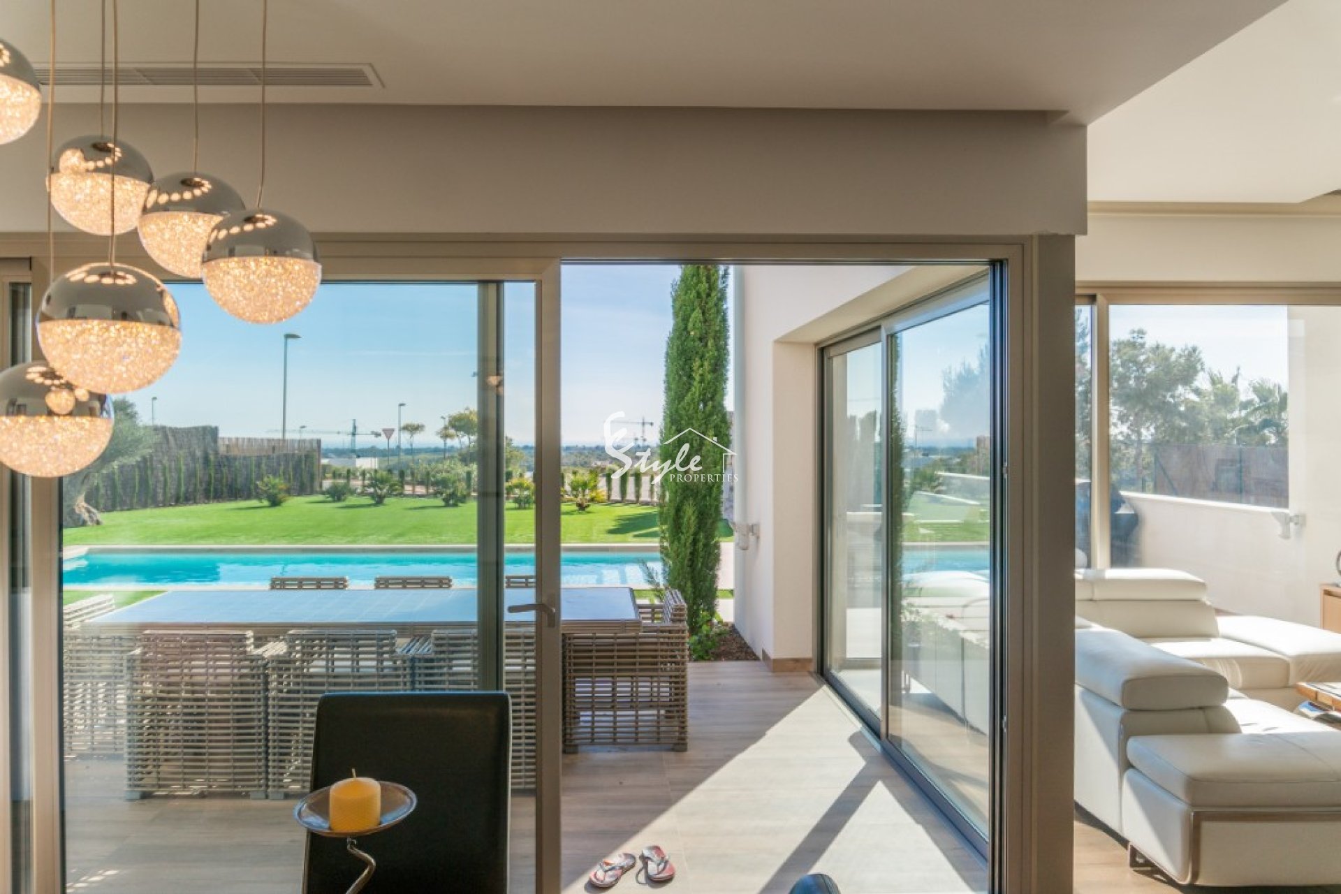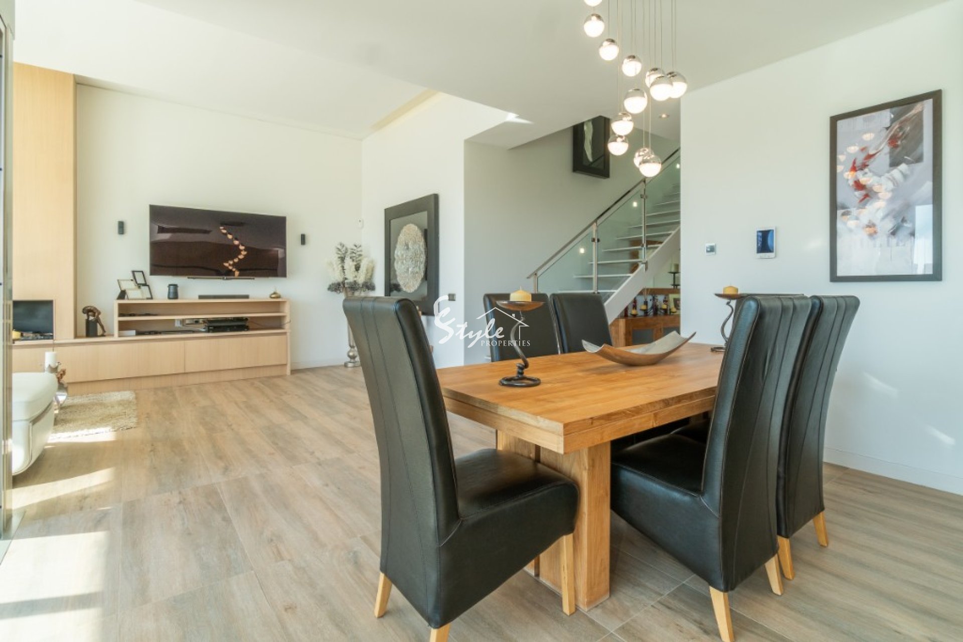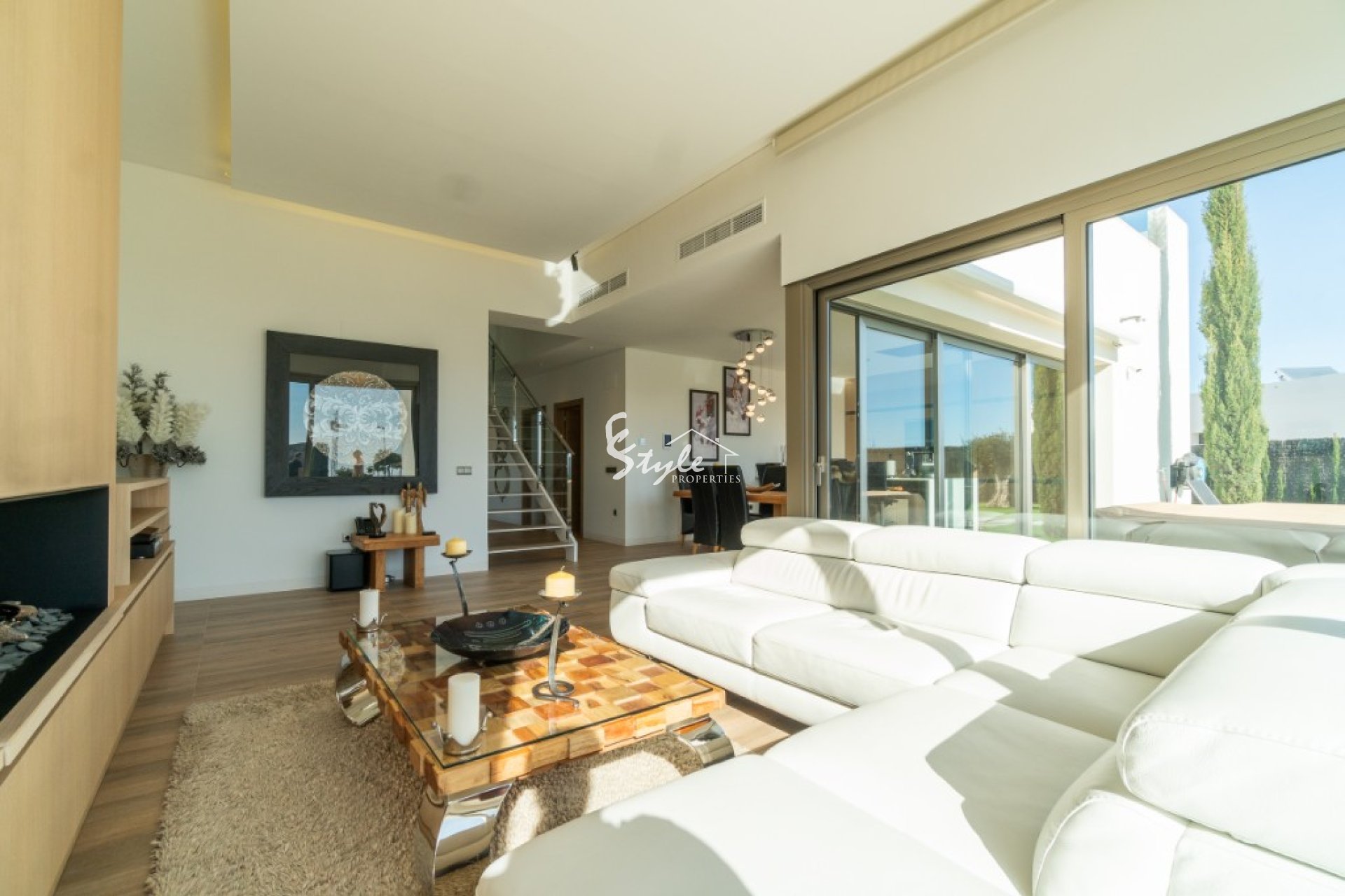 Tenemos en venta una elegante villa de lujo rodeada de jardines y parques a pocos metros del campo de golf en Las Colinas de Golf de Campoamor. Esta PRESTIGIOSA propiedad tiene perfecta cohesión entre el espacio interior y el exterior, la elegancia interior combina con el estilo exterior en una parcela de 1266 m2. La vivienda 194 m2 está distribuida en 2 niveles con un aparcamiento en sótano. Las 3 habitaciones dobles con vistas panorámicas que se presentan son santuarios serenos con esas noches cálidas y veraniegas enfriadas con aire acondicionado que garantizan un sueño reparador. La moderna cocina abierta está totalmente equipada y muy bien integrada en el salón y tiene acceso a la terraza y magnifica piscina privada. Con amplios ventanales por toda la vivienda se beneficia de mucha luz natural y días soleados.