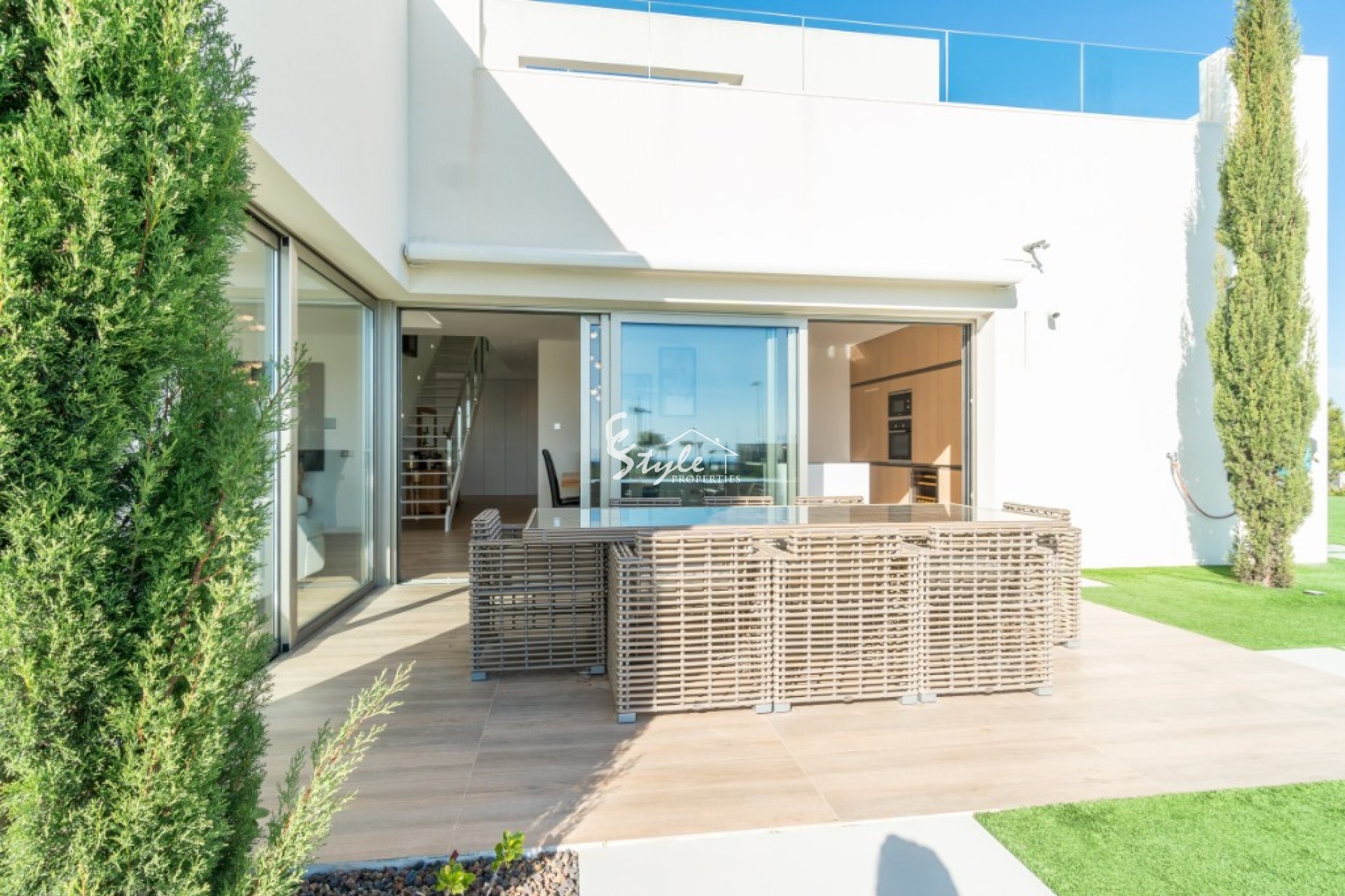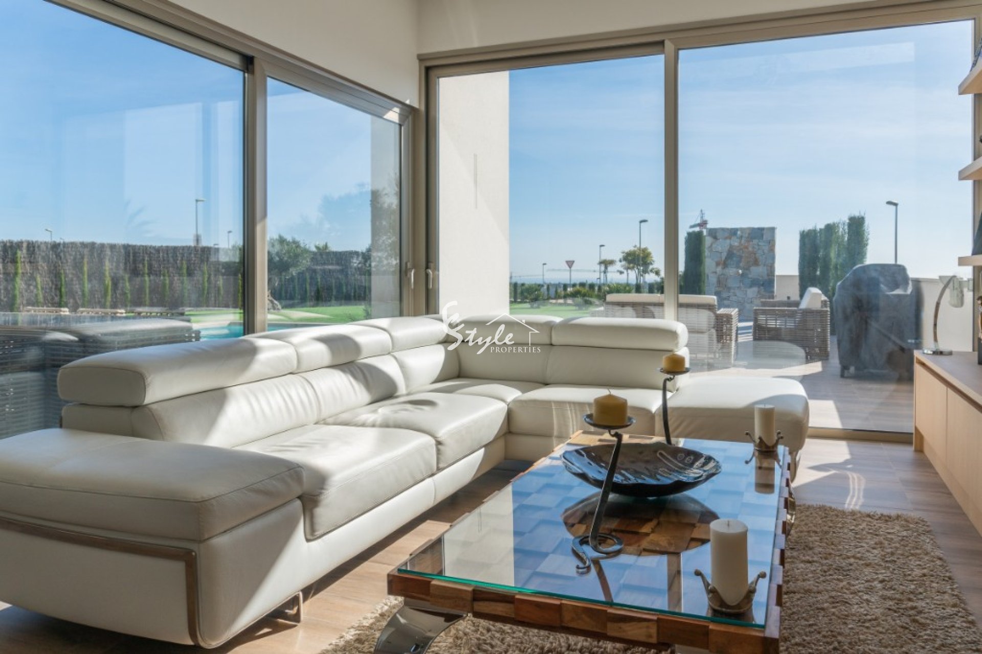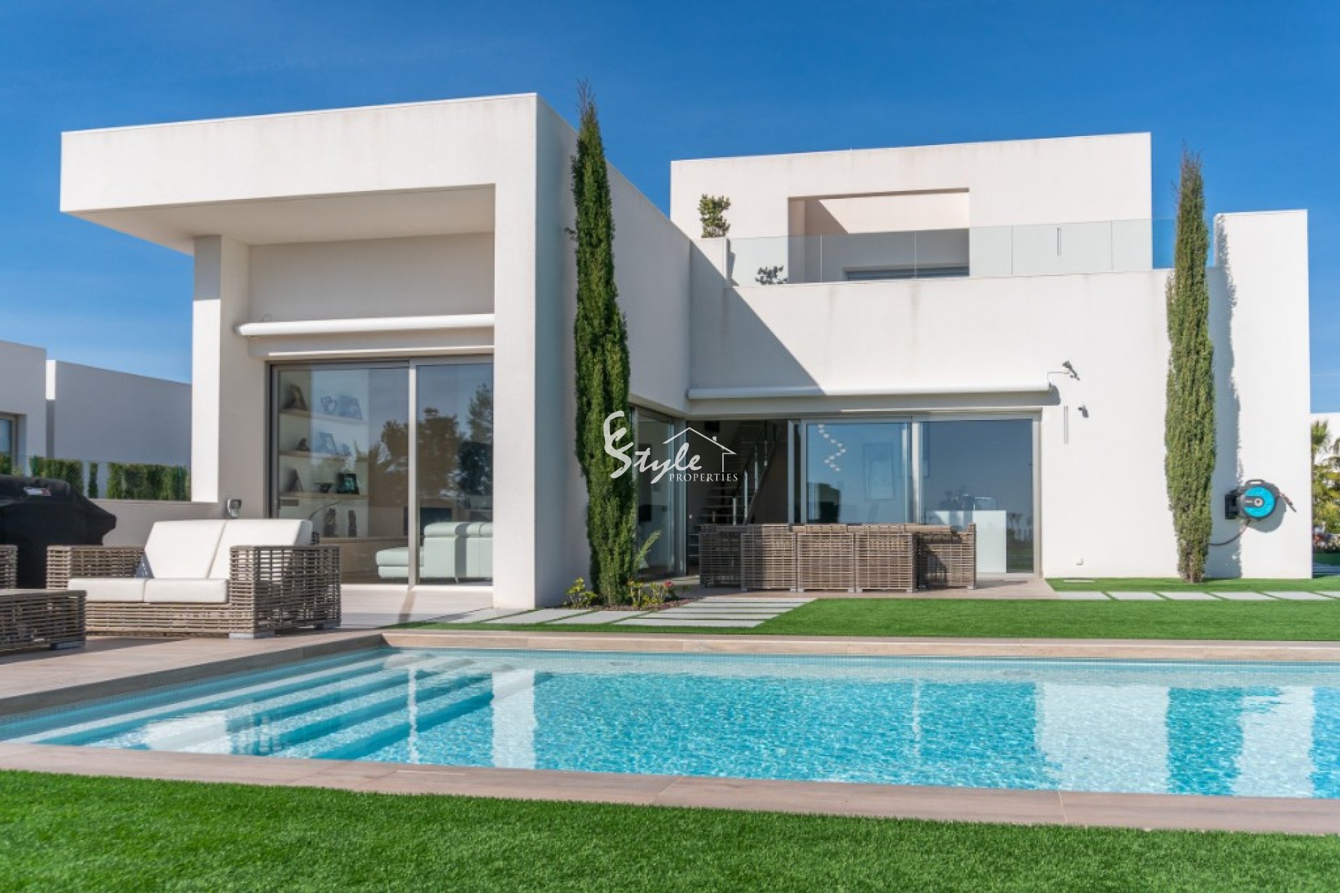 Tenemos en venta una elegante villa de lujo rodeada de jardines y parques a pocos metros del campo de golf en Las Colinas de Golf de Campoamor. Esta PRESTIGIOSA propiedad tiene perfecta cohesión entre el espacio interior y el exterior, la elegancia interior combina con el estilo exterior en una parcela de 1266 m2. La vivienda 194 m2 está distribuida en 2 niveles con un aparcamiento en sótano. Las 3 habitaciones dobles con vistas panorámicas que se presentan son santuarios serenos con esas noches cálidas y veraniegas enfriadas con aire acondicionado que garantizan un sueño reparador. La moderna cocina abierta está totalmente equipada y muy bien integrada en el salón y tiene acceso a la terraza y magnifica piscina privada. Con amplios ventanales por toda la vivienda se beneficia de mucha luz natural y días soleados.