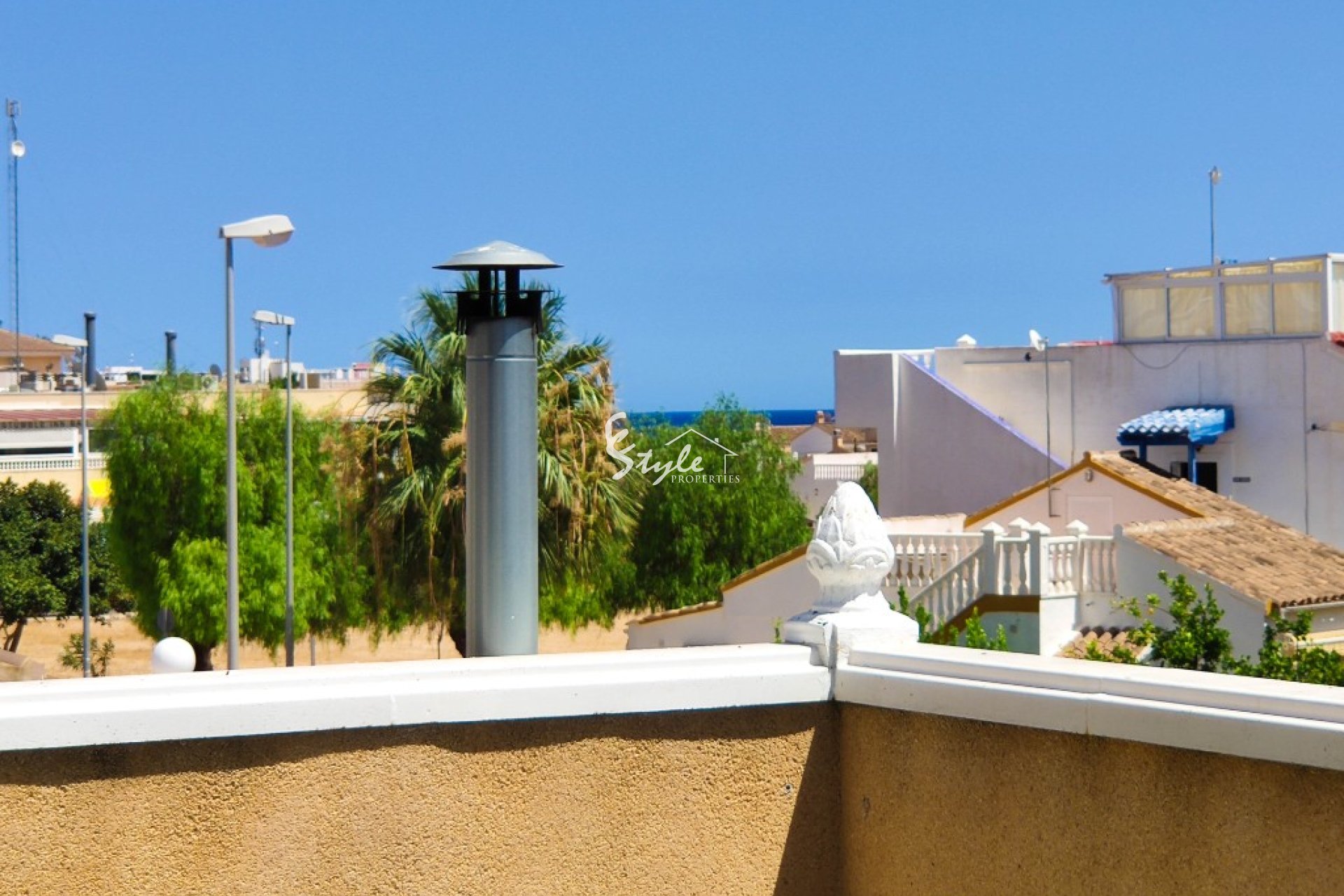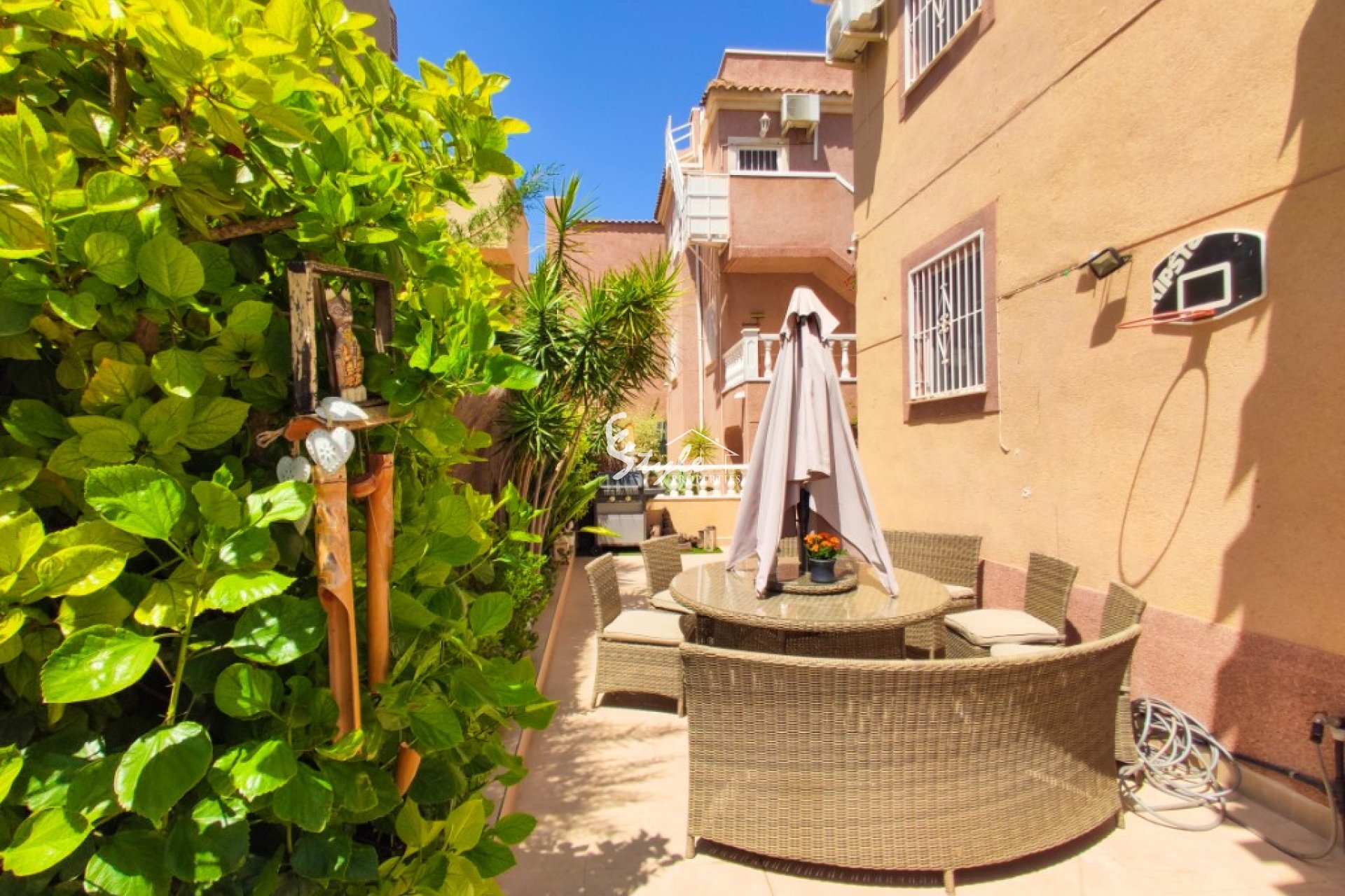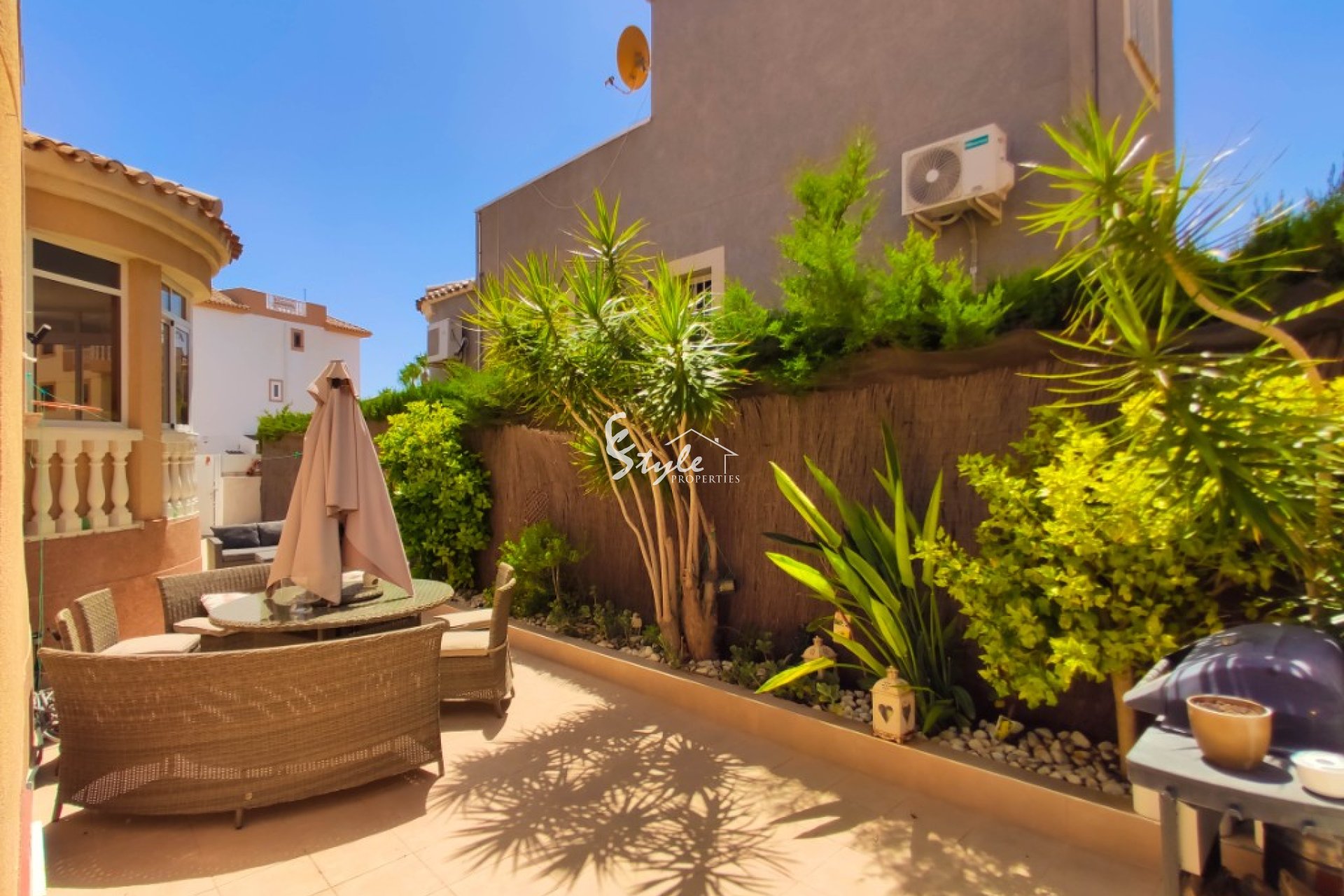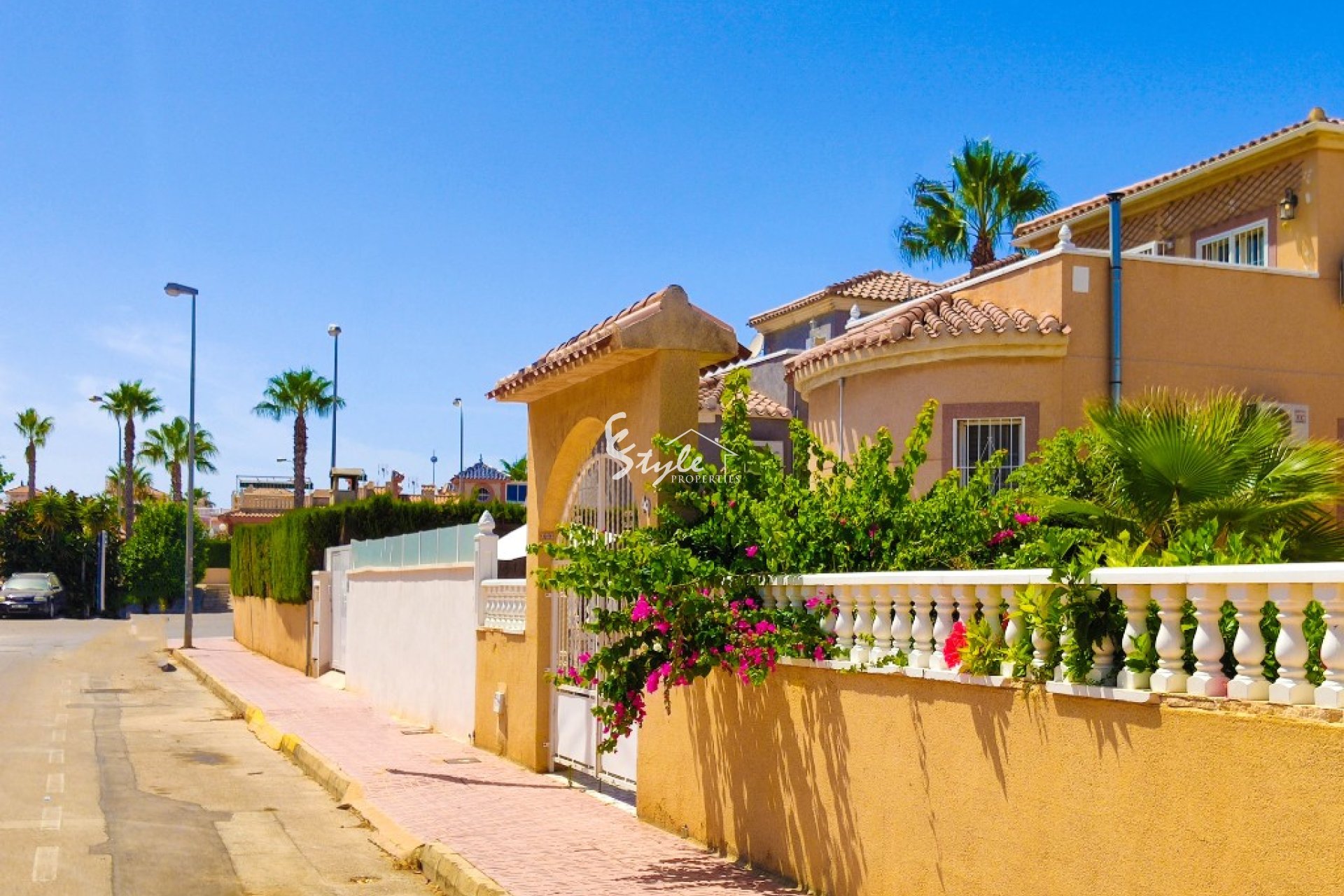 Tenemos esta hermosa villa independiente en venta en Playa Flamenca. La casa está ubicada cerca del mar y de las playas de Orihuela Costa, tiene parcela privada con hermosas áreas ajardinadas, palmeras, bonita piscina y área de barbacoa. Propiedad con una superficie de 120 m2 cuenta con 4 dormitorios (2 en sótano, 2 en primera planta) y 2 baños, amplio salón/comedor, cocina abierta, porche, terraza con vistas hacia línea del mar y zonas ajardinadas. La casa se vende con muebles. Ideal para vivir todo el año o pasar unas vacaciones de verano.