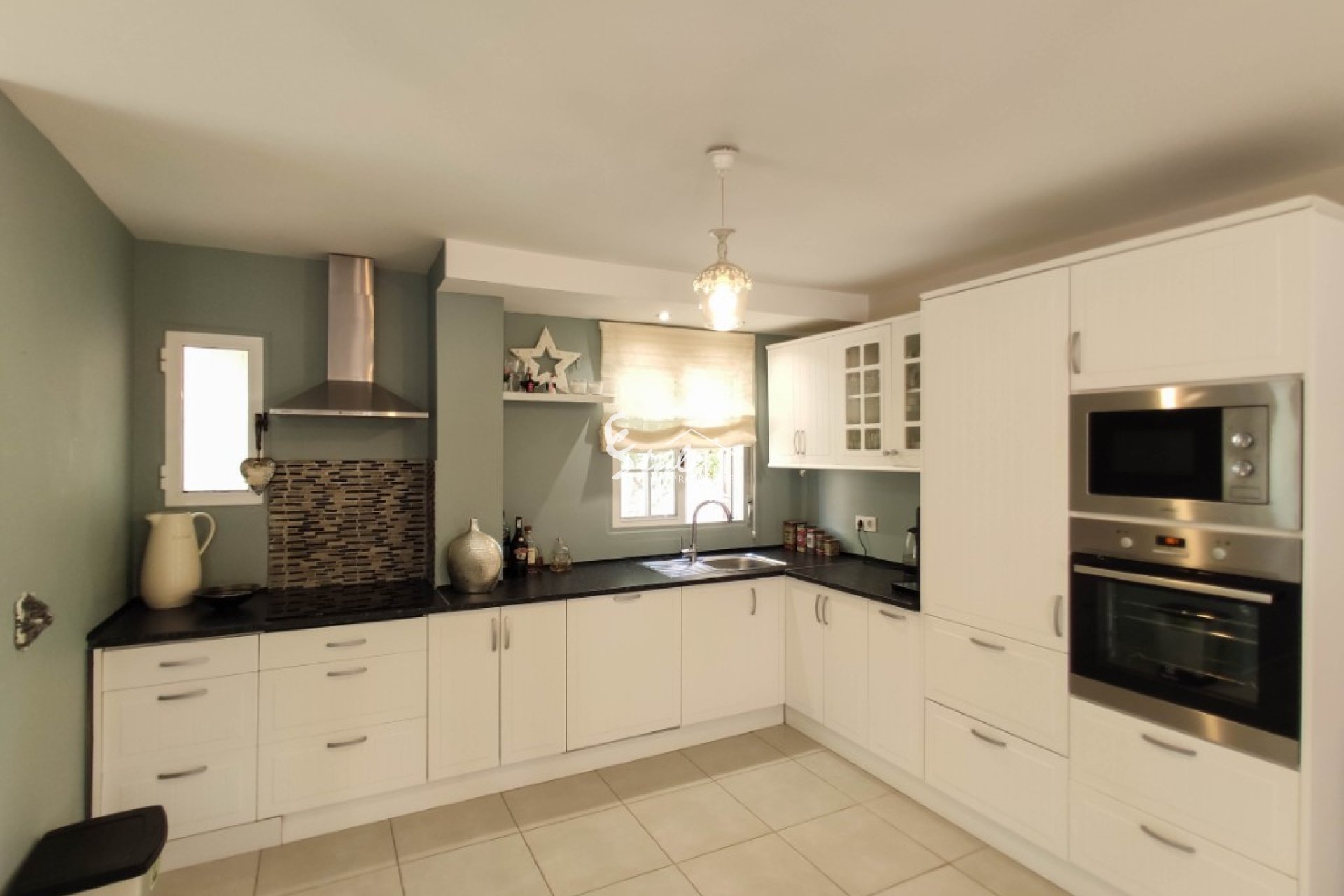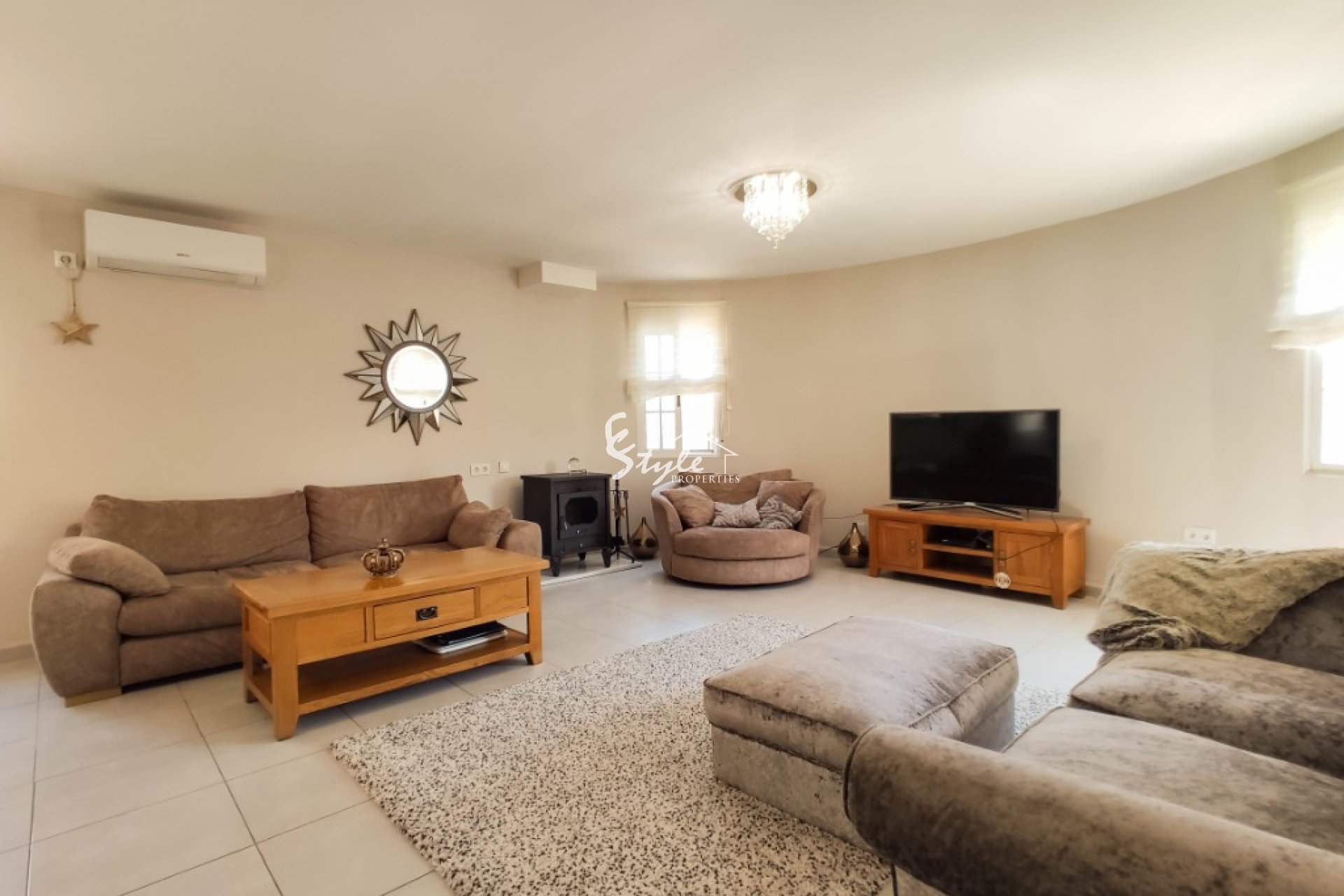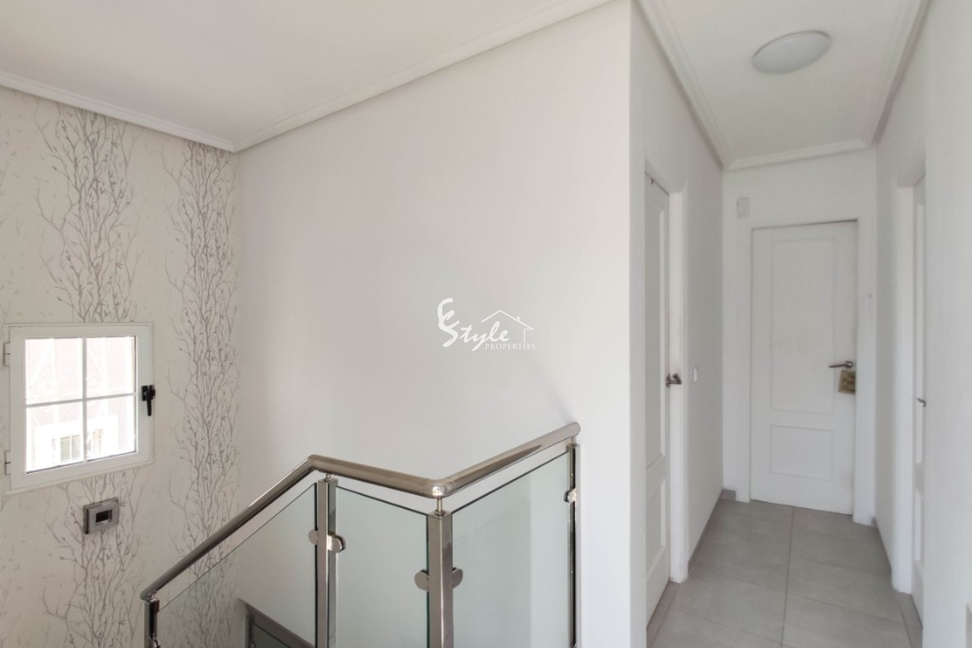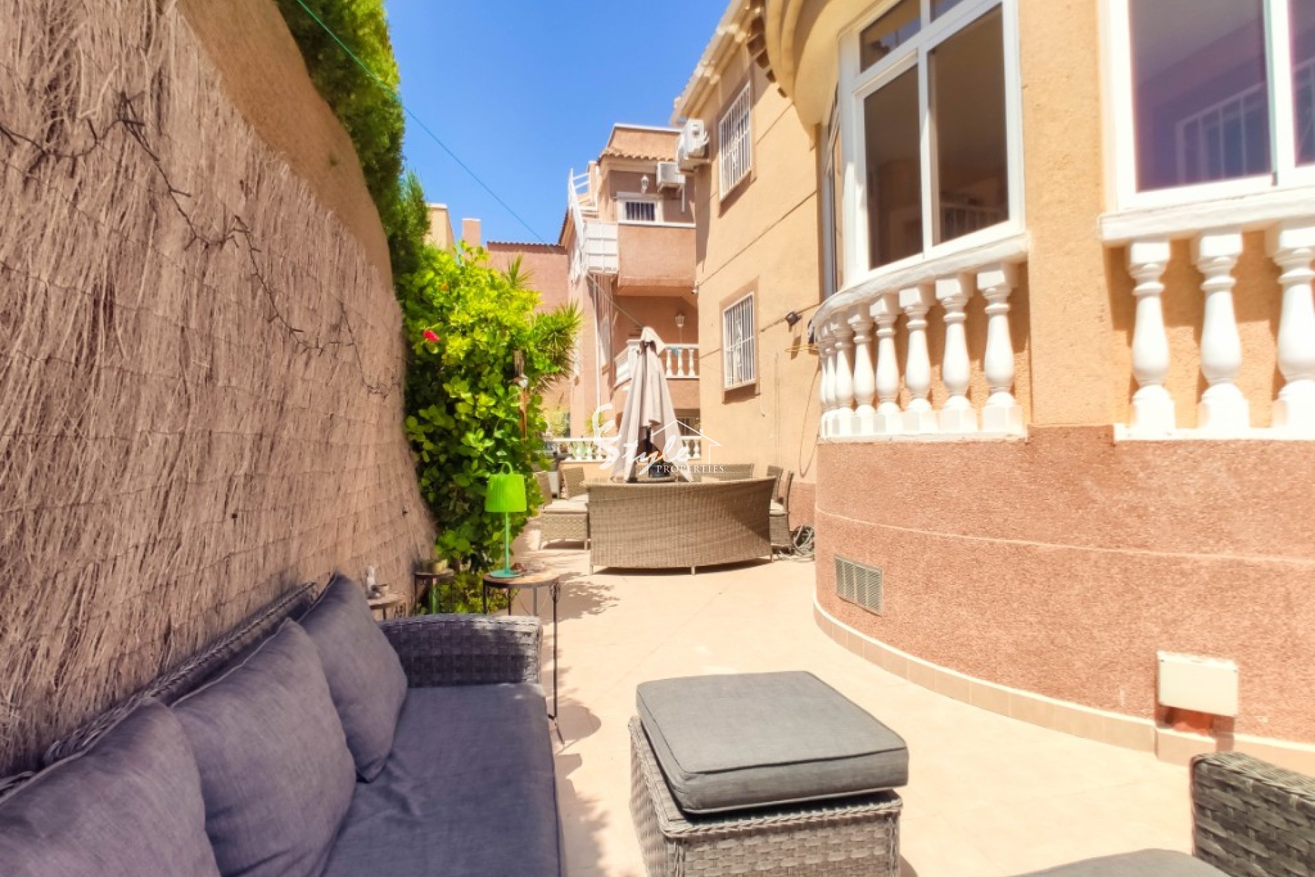Tenemos esta hermosa villa independiente en venta en Playa Flamenca. La casa está ubicada cerca del mar y de las playas de Orihuela Costa, tiene parcela privada con hermosas áreas ajardinadas, palmeras, bonita piscina y área de barbacoa. Propiedad con una superficie de 120 m2 cuenta con 4 dormitorios (2 en sótano, 2 en primera planta) y 2 baños, amplio salón/comedor, cocina abierta, porche, terraza con vistas hacia línea del mar y zonas ajardinadas. La casa se vende con muebles. Ideal para vivir todo el año o pasar unas vacaciones de verano.