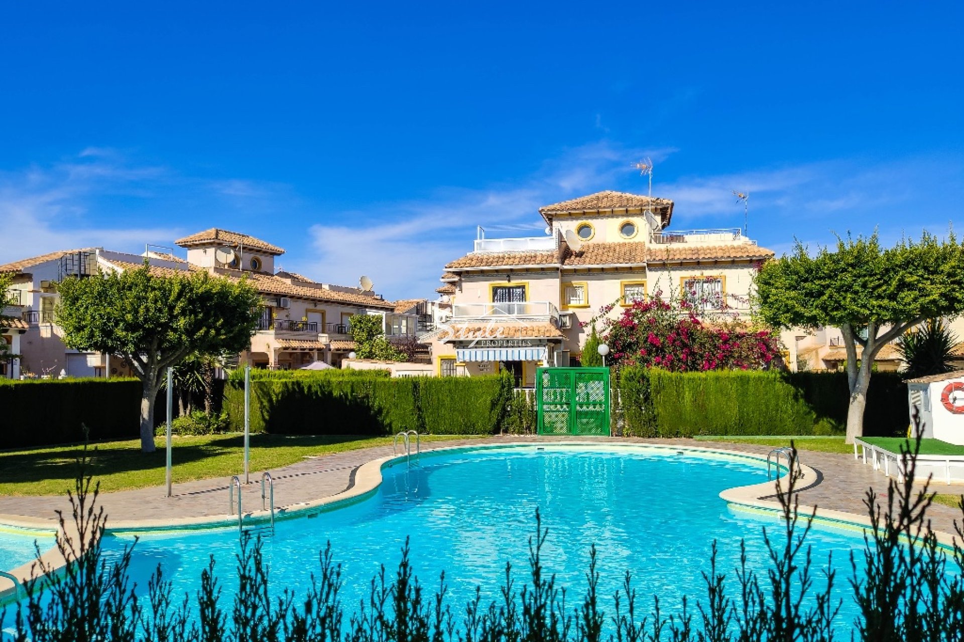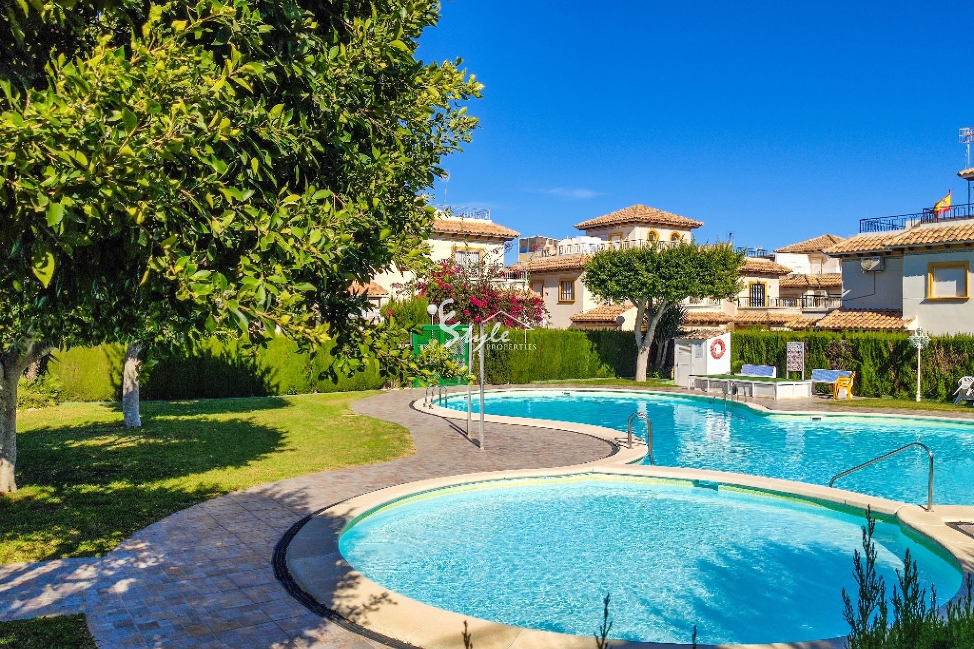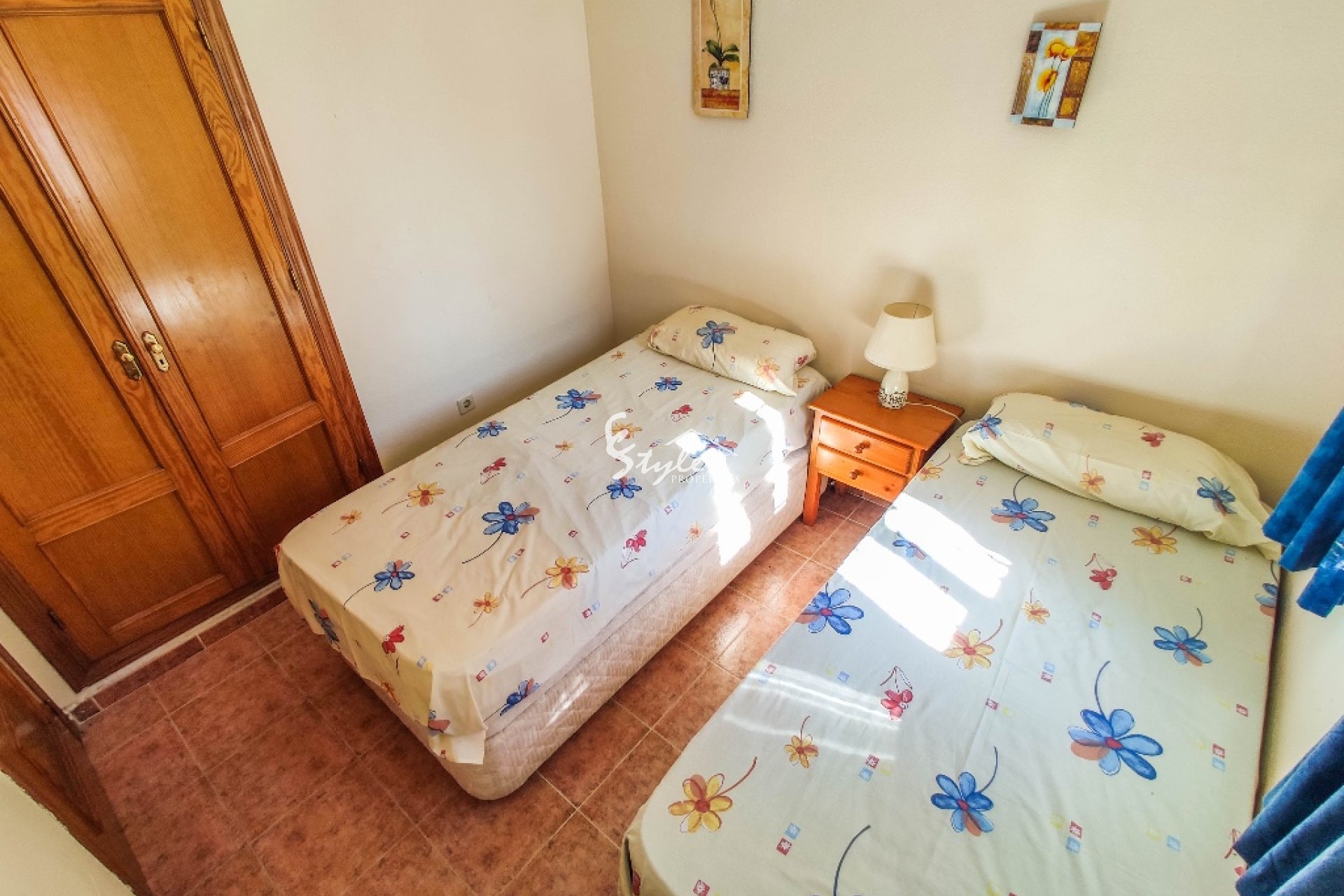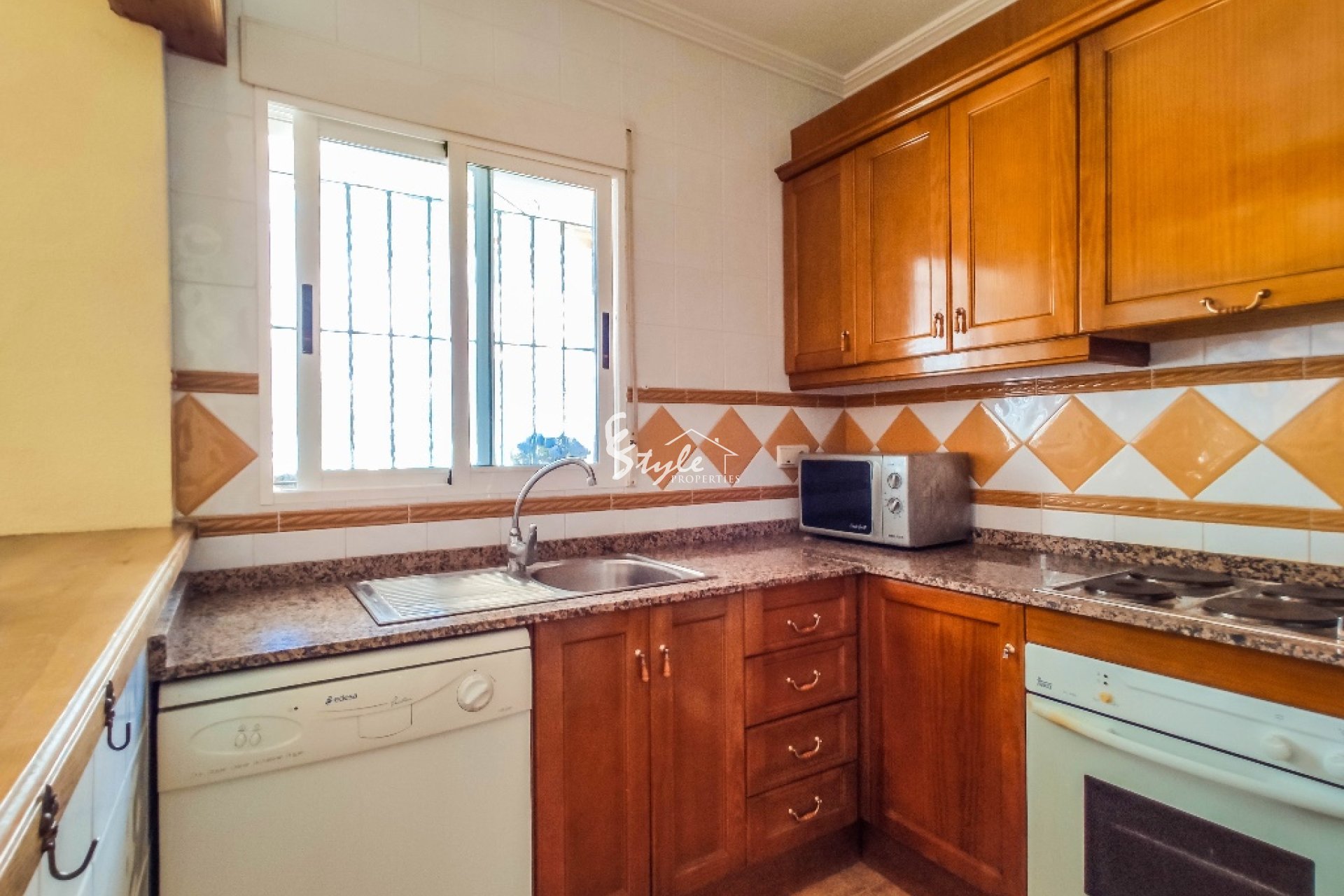 La vivienda en venta está completamente amueblada y dotada de electrodomésticos. Se encuentra cerca de todos los servicios y a distancia andando hasta la playa de Punta Prima. A unos 5-10 minutos en coche están los campos de golf de Villamartin y Las Ramblas, centro comercial Zenia Boulevard y famosas salinas de Torrevieja