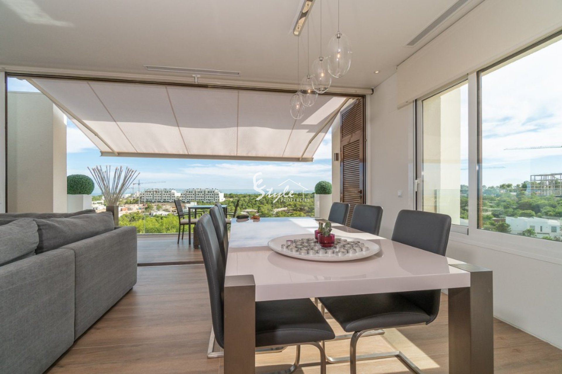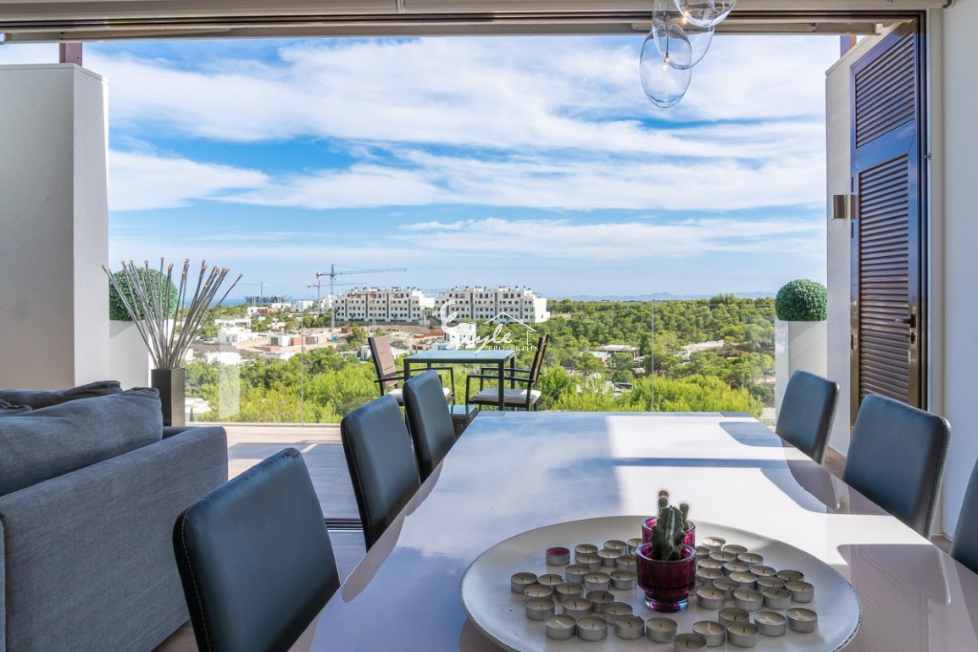 Tenemos a la venta un Ático de estilo moderno y acogedora arquitectura española en lugar privilegiado ubicado en la Urbanización Villamartin. La casa está situada en el mejor campo de golf de la Costa Blanca, Las Colinas Golf & Country Club, un complejo galardonado. Playas de Orihuela Costa a tan solo 8 km en coche. La casa orientada al sur tiene un solárium privado con hermosas vistas despejadas, la elegancia interior combina con el estilo exterior en una terraza privada. La casa tiene 3 dormitorios y 2 baños, terraza, solárium privado con magníficas vistas despejadas, cocina moderna totalmente equipada y abierta al salón/comedor, creando un fantástico espacio social con vistas muy bonitas. La comunidad ofrece una hermosa piscina comunitaria. Hay solo un corto paseo de 300 m hasta Las Colinas Club House con tres restaurantes.