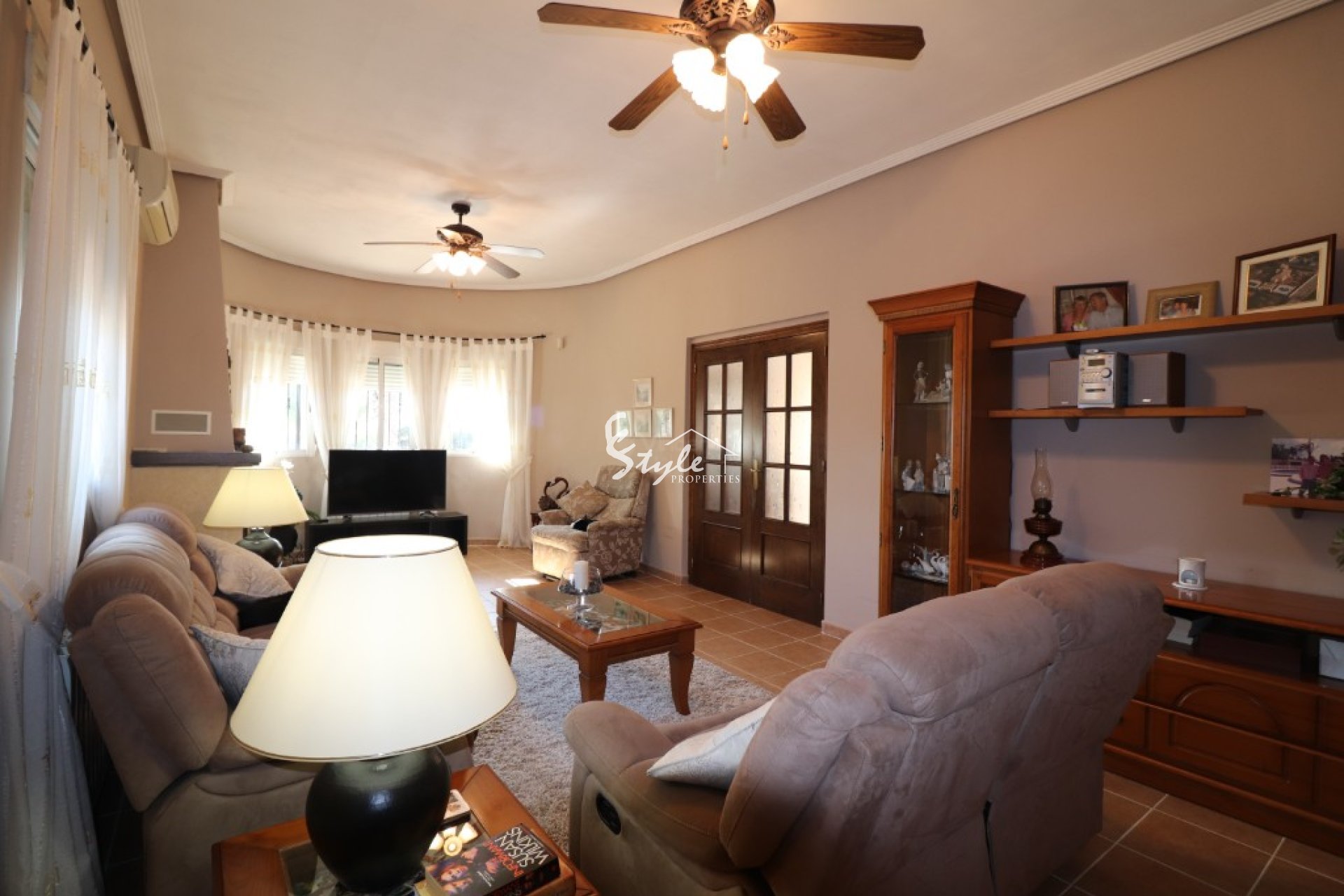 Tenemos en venta una villa rustica con parcela de 1000 m2 y una piscina privada. Situado en Catral, una ciudad a 10 km del mar y de las playas de Guardamar del Segura. La parcela tiene un agradable entorno con una impresionante piscina y zonas verdes muy bien cuidadas, zona de barbacoa, aparcamiento. La casa cuenta con 4 dormitorios y 3 baños, amplia cocina, amplio salón comedor, solárium. La vivienda tiene una terraza con magníficas vistas despejadas al parque y a las zonas verdes. Se vende amueblado y con instalación de aire acondicionado. En el exterior puede encontrar un baño con ducha y lavadero, garajes y taller. El jardín es bonito con un pozo, árboles maduros y flores, también hay más tierra hacia la parte trasera de la propiedad con suficiente espacio para construir un edificio separado.