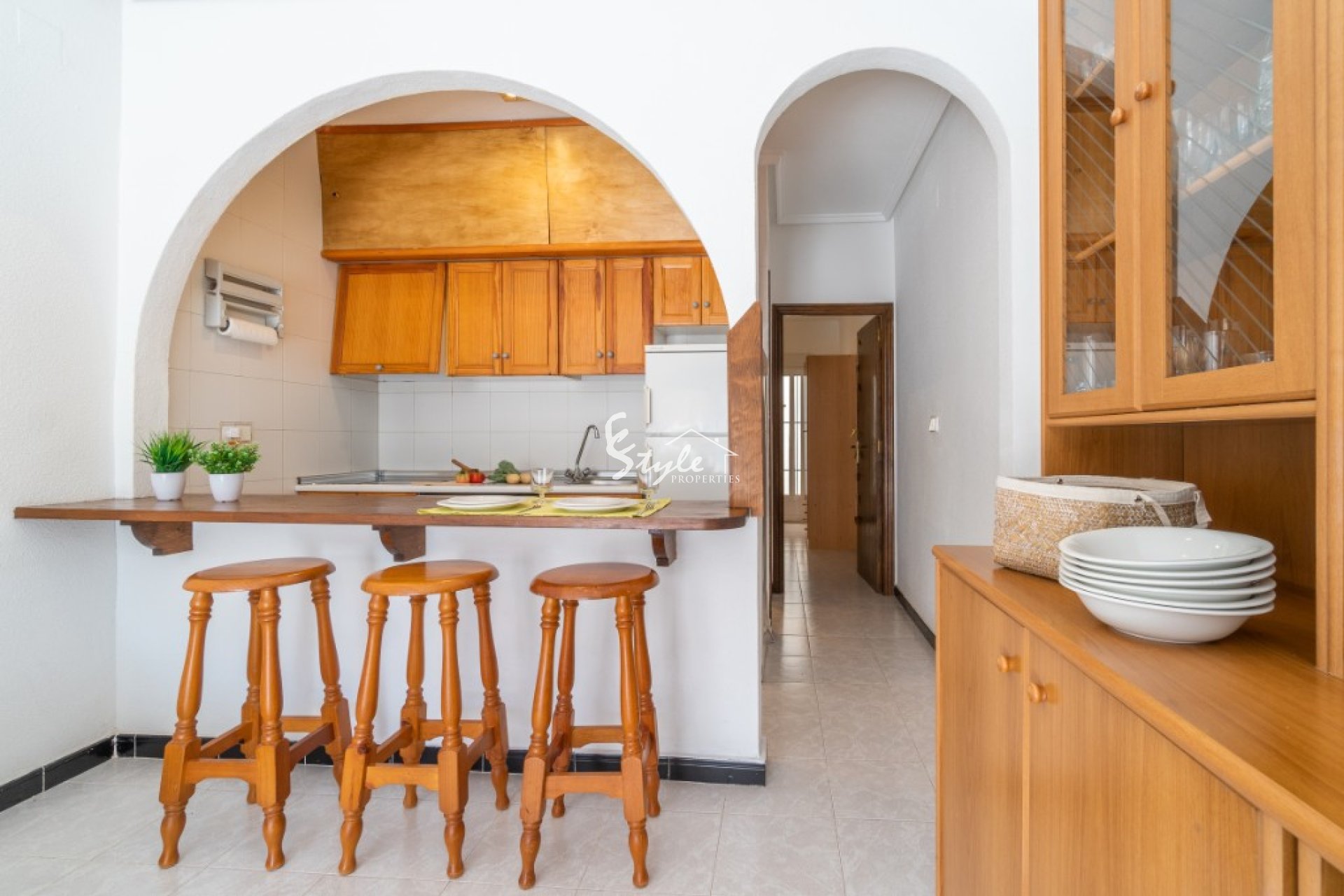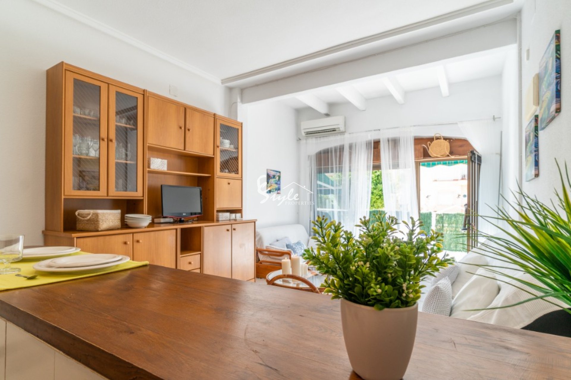 Vendemos bungalow con propia parcela situado en la Playa Flamenca, a poca distancia del mar, en una zona residencial muy tranquila con amplia piscina comunitaria. La casa consta de salón-comedor, cocina abierta con electrodomésticos, 2 dormitorios, 2 cuartos de baños y patio trasero. La vivienda está en perfectas condiciones después de la reforma y lista para entrar a vivir, está amueblada y es perfecta tanto para vivir todo el año como para alquiler.
