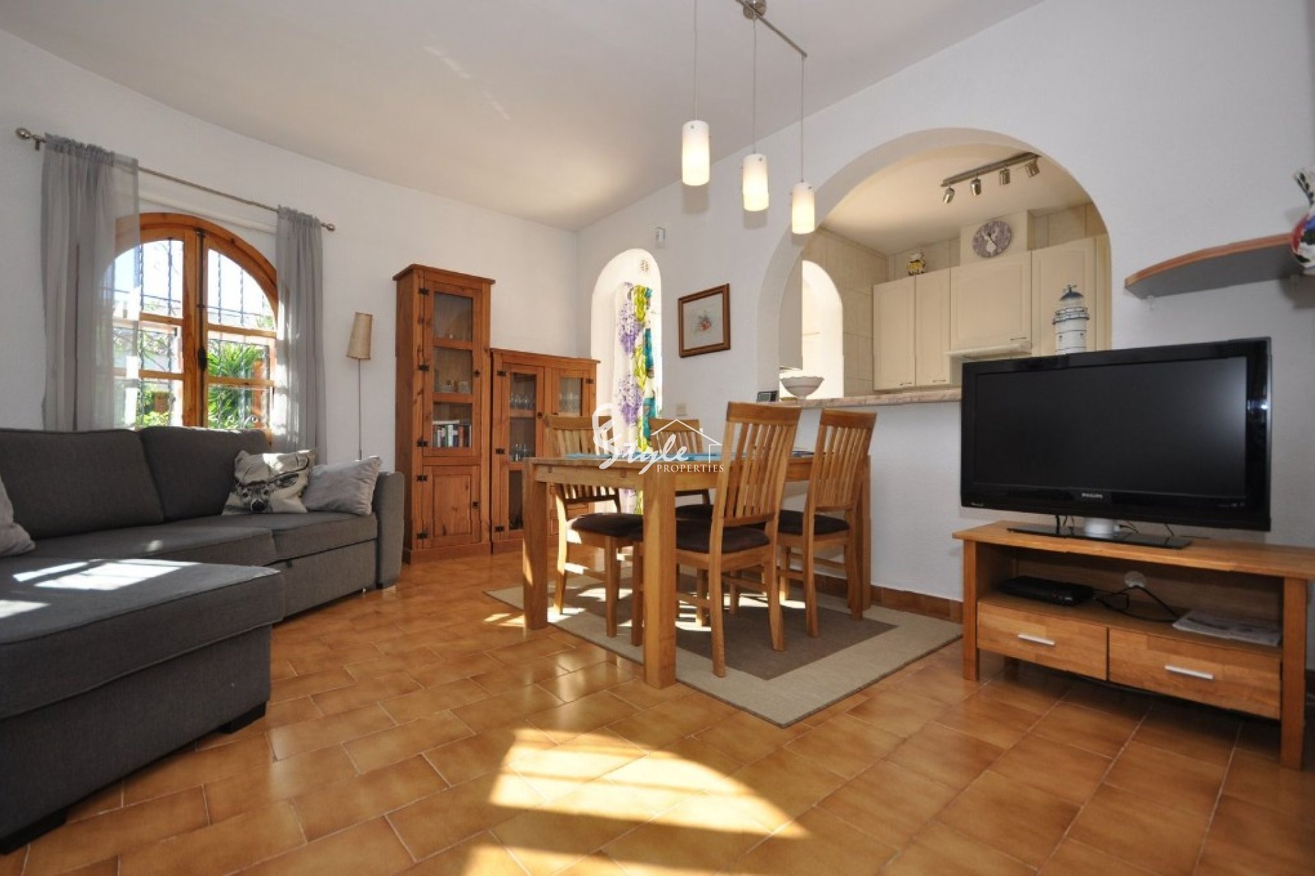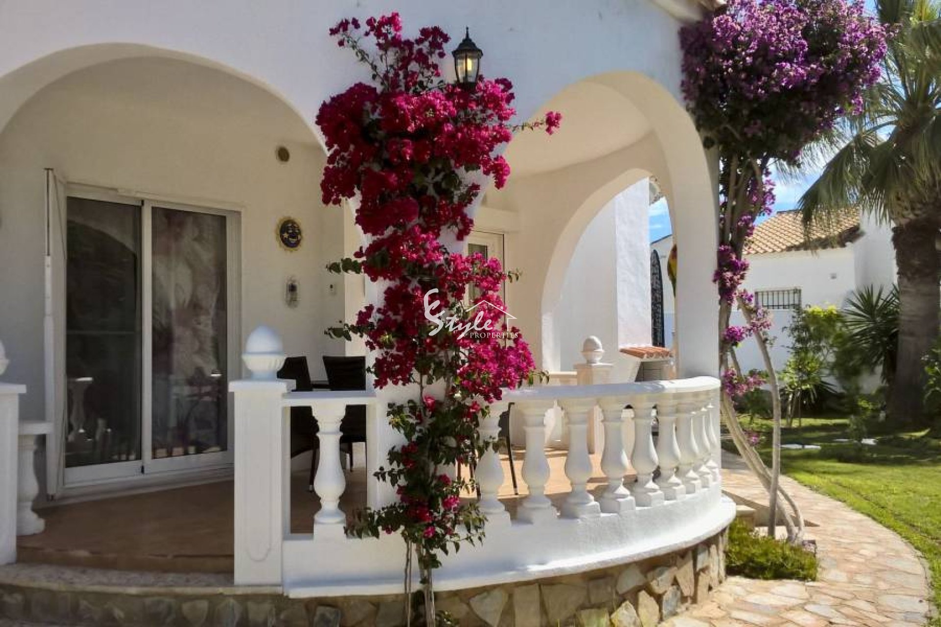 Tenemos esta hermosa villa independiente en venta en Playa Flamenca. La casa está ubicada cerca del mar y de las playas de Orihuela Costa, tiene parcela privada con hermosas áreas ajardinadas, palmeras, bonita piscina y área de barbacoa. Propiedad con una superficie de 100 m2 cuenta con 2 dormitorios y 2 baños, amplio salón/comedor, cocina abierta, porche, terraza con vistas hacia línea del mar y zonas ajardinadas. La casa se vende con muebles. Ideal para vivir todo el año o pasar unas vacaciones de verano.