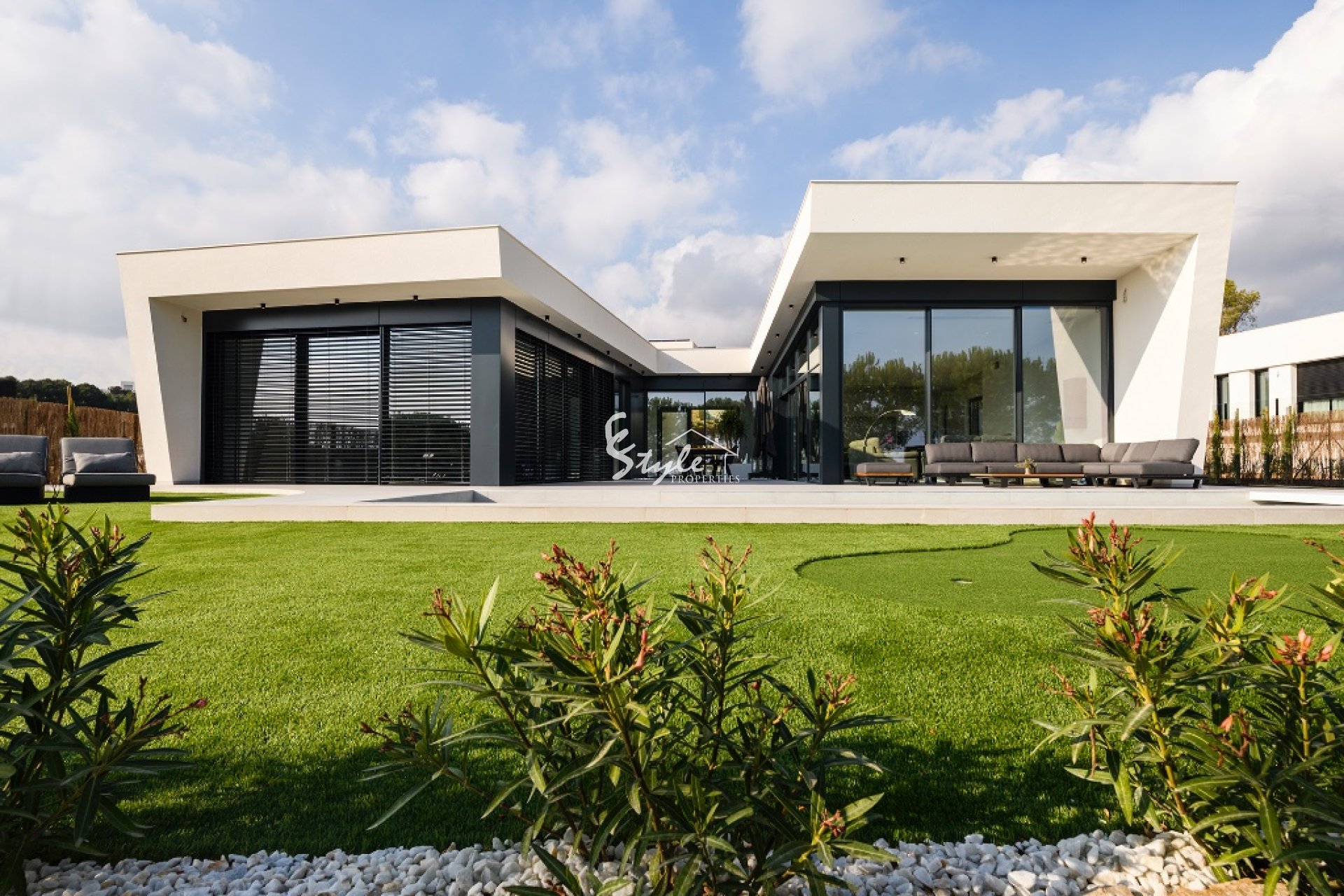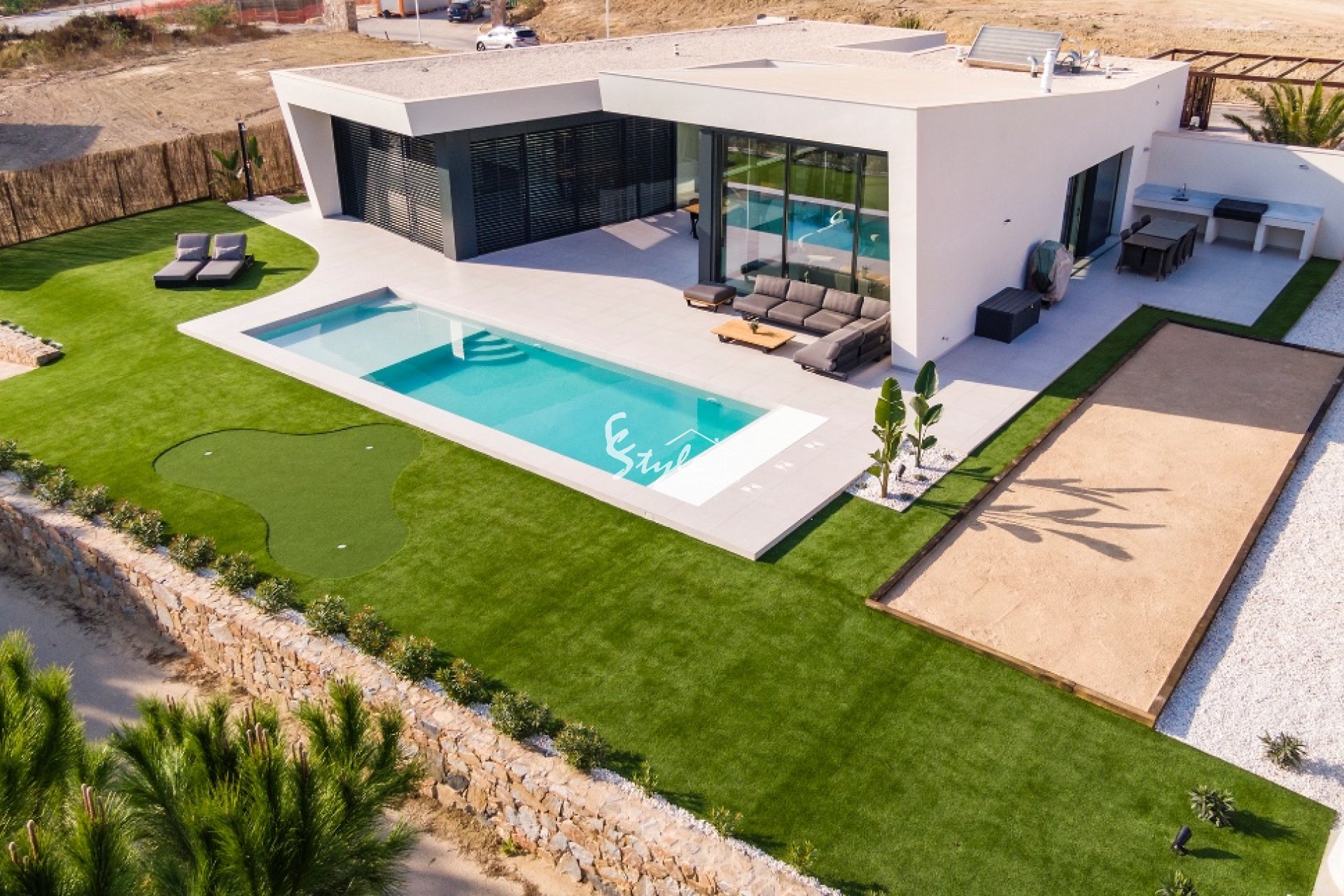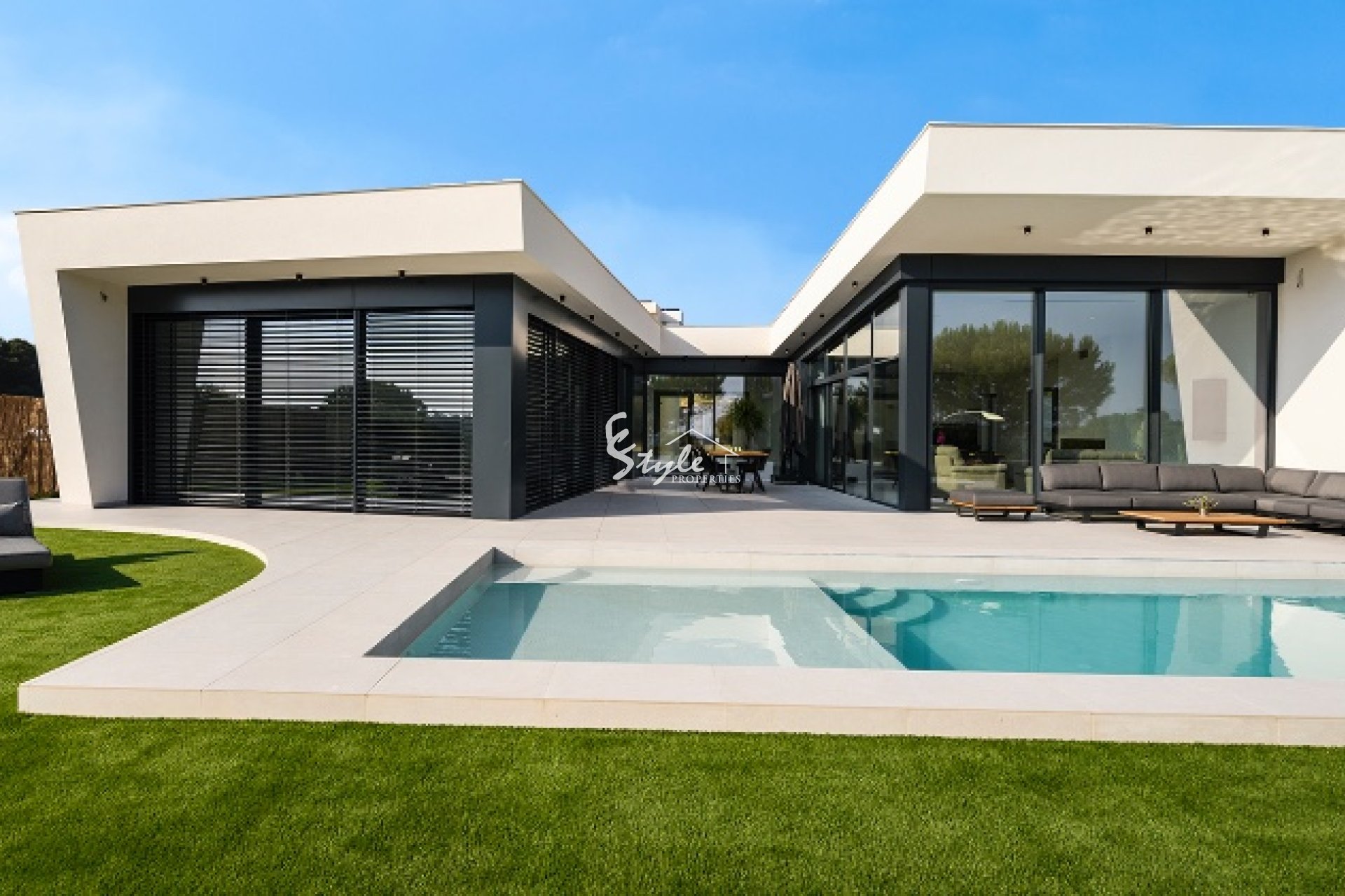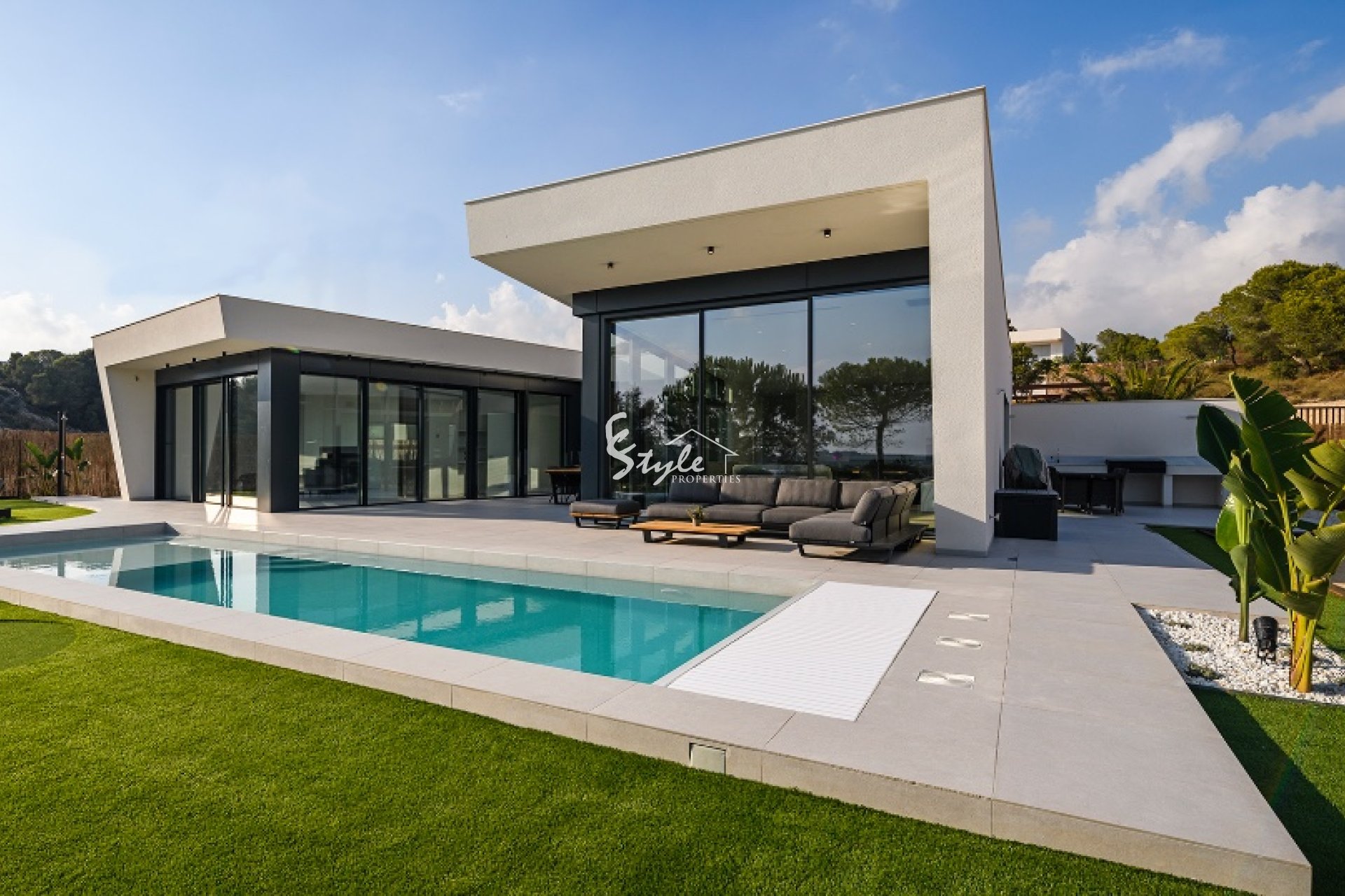 Ofrecemos a la venta este chalet de nueva construcción situado en una prestigiosa urbanización cercana a uno de los complejos de golf más populares de la Costa Blanca. La villa se distribuye en una sola planta, con tres dormitorios, tres baños completos y un aseo de invitados. El interior de la propiedad cuenta con espacios amplios y aireados, con una espaciosa zona de salón dividida en áreas de estar y comedor, y una cocina abierta. En el exterior, la propiedad cuenta con unas zonas verdes perfectamente cuidadas, con una gran piscina y solárium, donde se puede disfrutar del sol español durante la temporada de verano. El proyecto de la villa refleja todas las últimas tendencias arquitectónicas y de diseño, y definitivamente será un lugar perfecto para las vacaciones o para vivir todo el año.