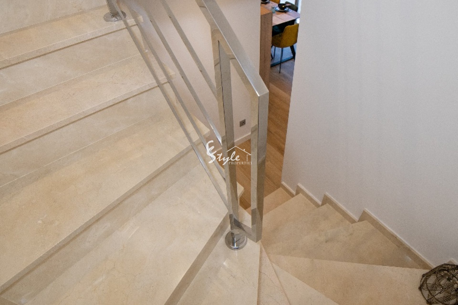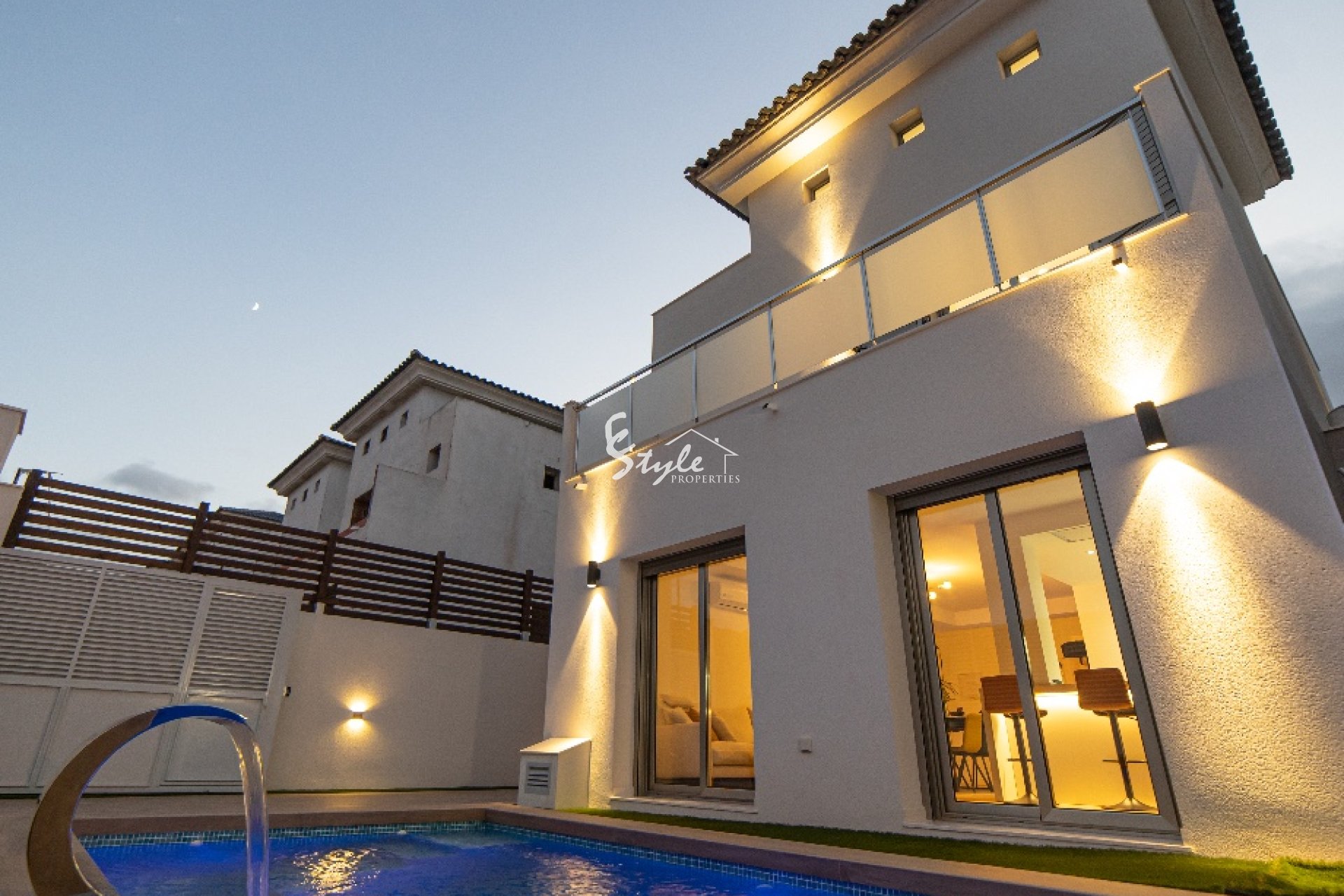 El chalet de 127 metros cuadrados se asienta sobre una parcela de 200 metros, con la plaza de aparcamiento y una piscina privada. La casa se compone de dos plantas, y tiene un sótano opcional de 85 metros. Construidas con materiales de alta calidad, las villas se entregan parcialmente amuebladas: con vestidor, muebles de cocina y barra (si lo desea, puede elegir una opción de cocina cerrada también), y mamparas de ducha en ambos baños. La preinstalación de aire acondicionado y la persiana automática completan el cuadro.