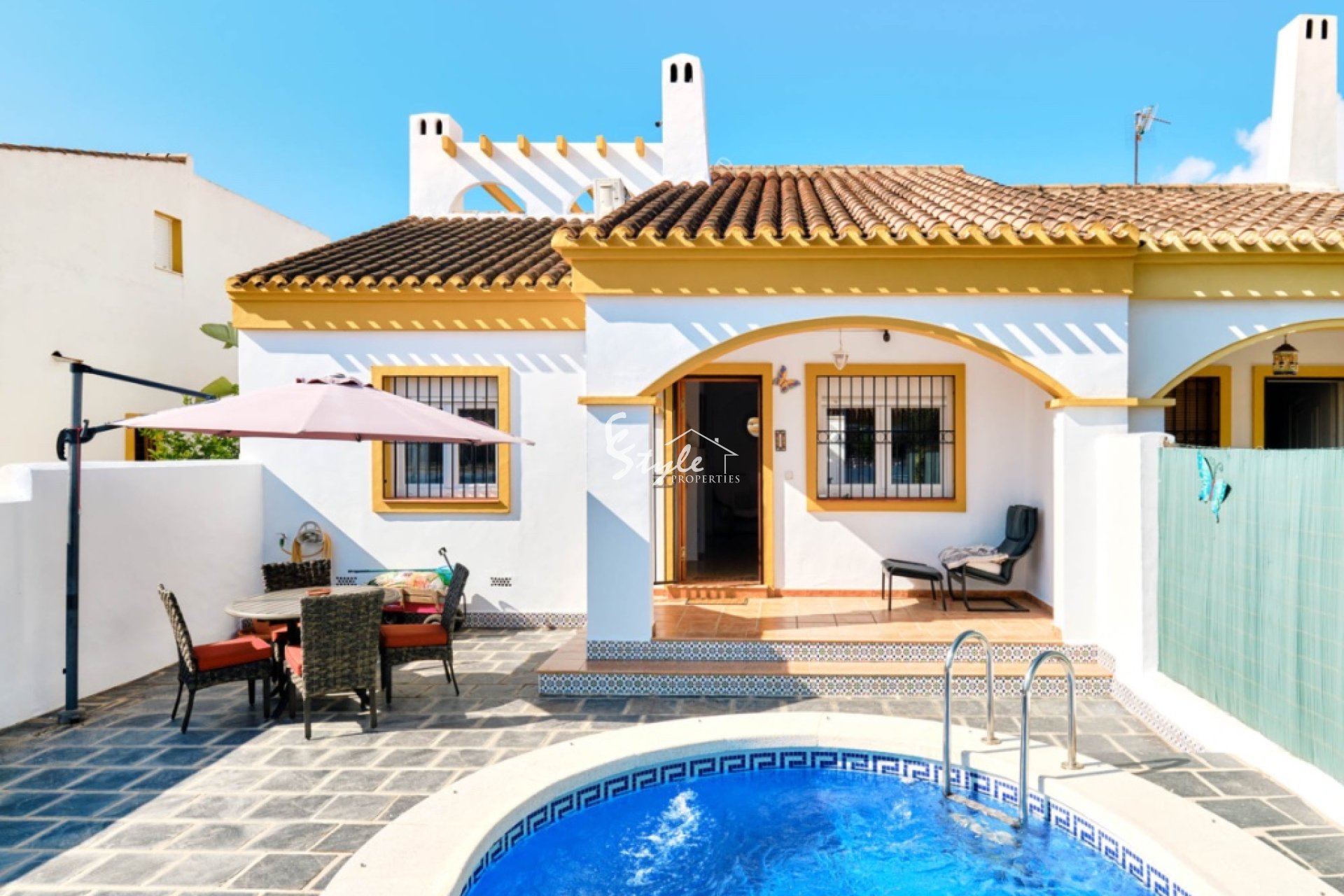 Ofrecemos a la venta este fantástico chalet adosado de 3 dormitorios y 2 baños en Torre de la Horadada, situado en una calle tranquila a sólo 1 km de la playa y a poca distancia de una serie de servicios locales. Situado en un entorno tranquilo la propiedad se beneficia de estar a pasos de todas las tiendas y bares de la zona.