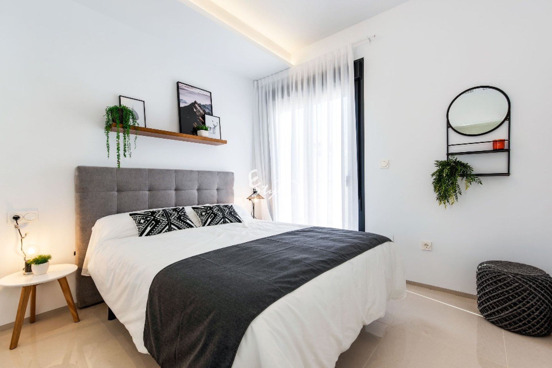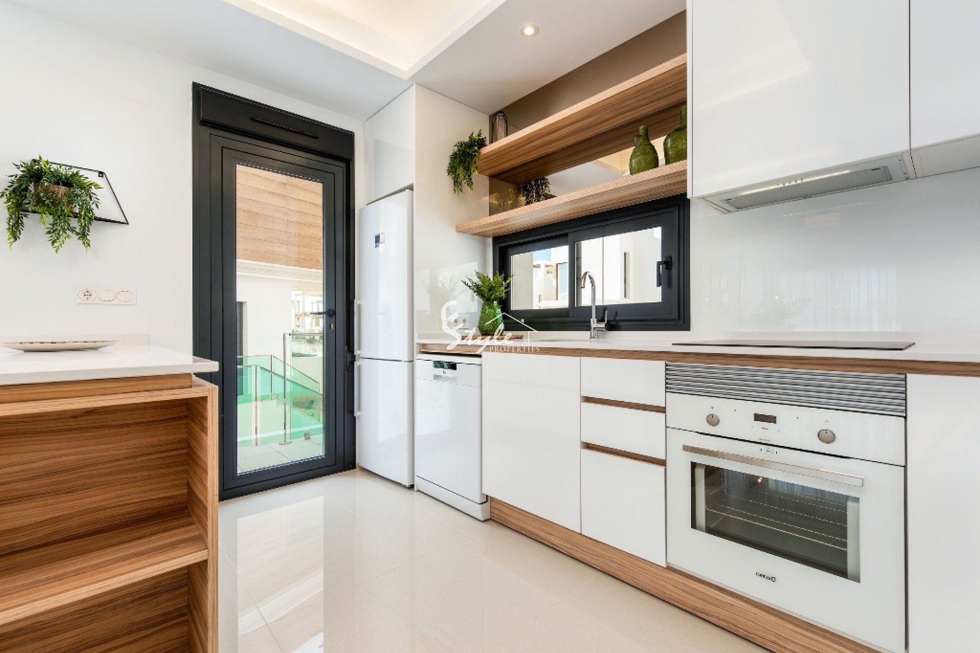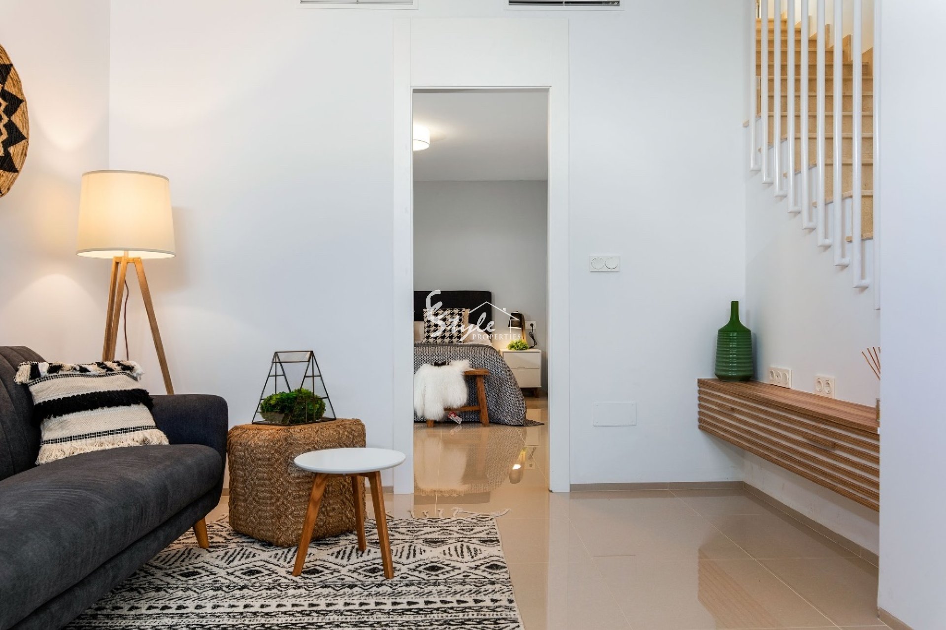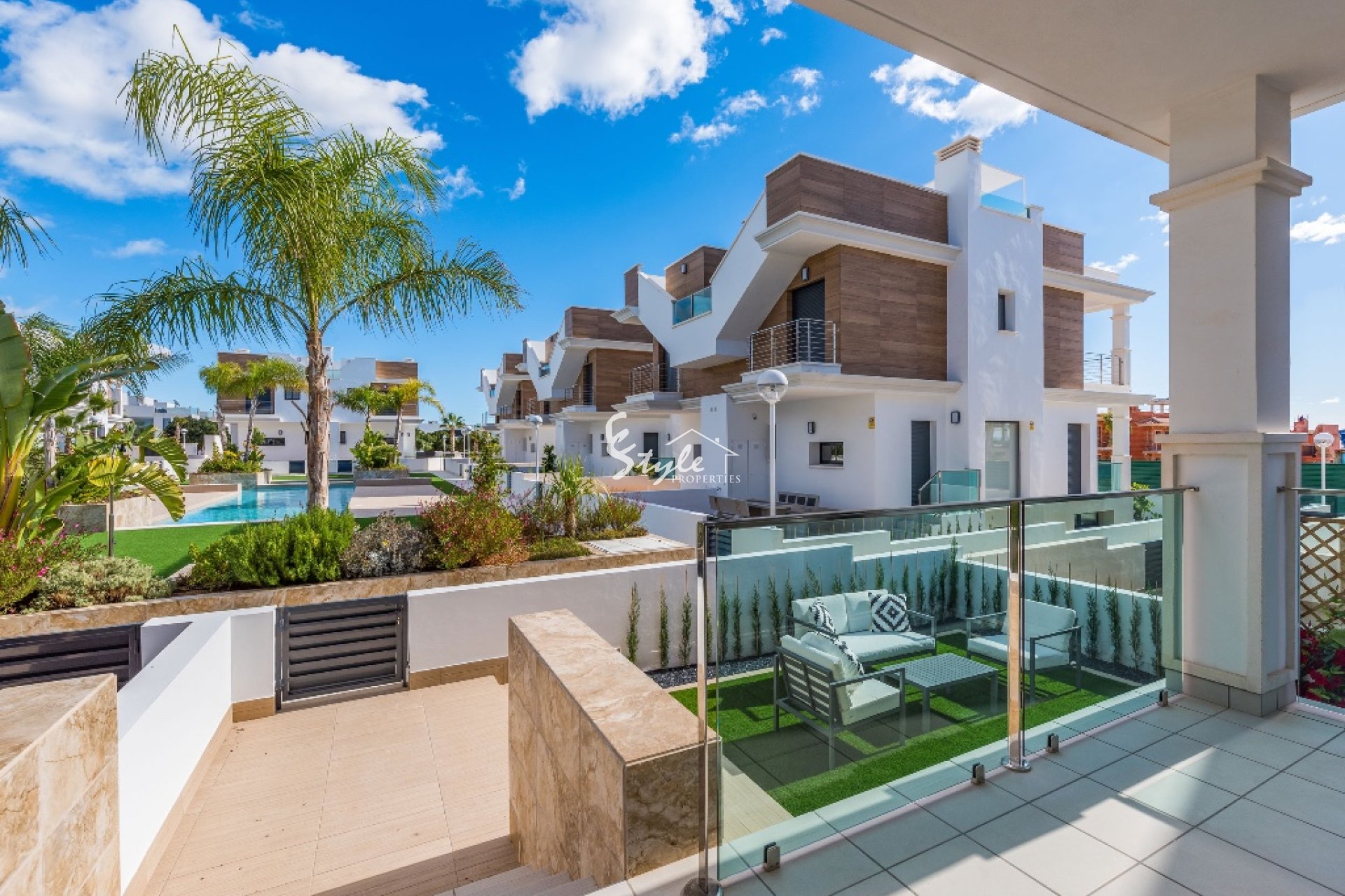 En venta chalet de estilo moderno situada en una urbanización cerca a Guardamar del Segura. La vivienda está compuesta por salón comedor, cocina, 3 dormitorios, 3 baños, terraza, jardín, sótano y solárium privado. Incluye preinstalación de aire acondicionado y suelo radiante en baños.