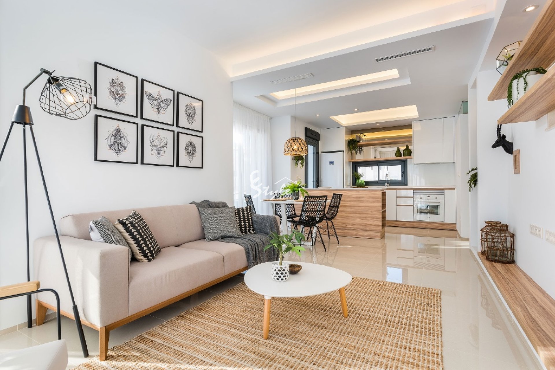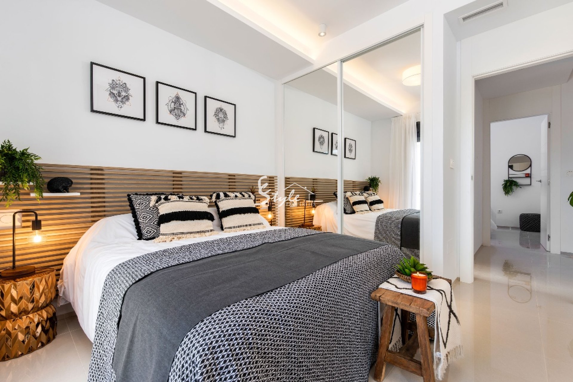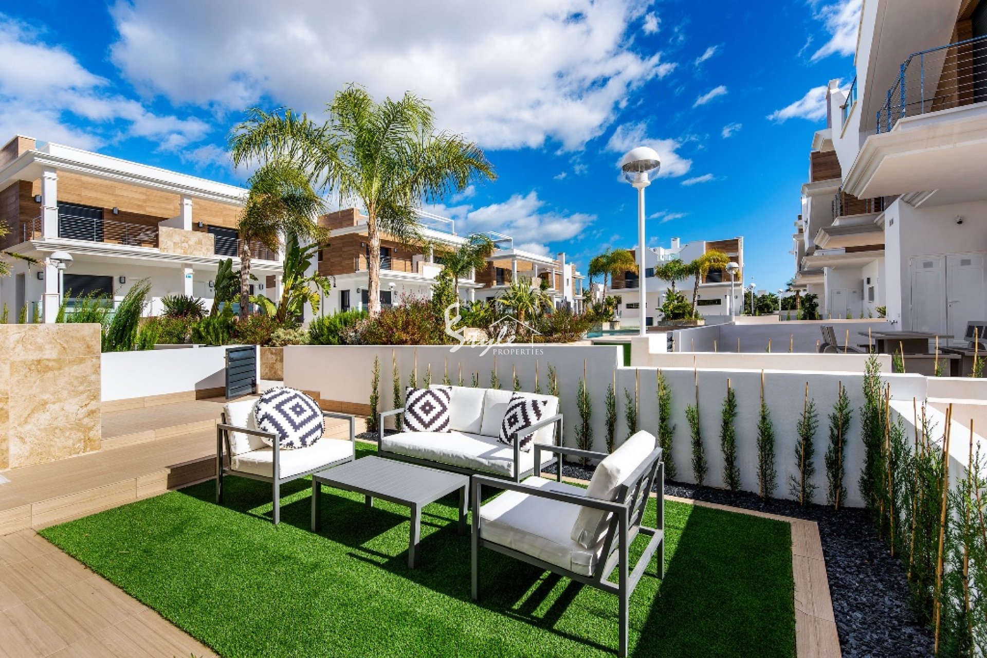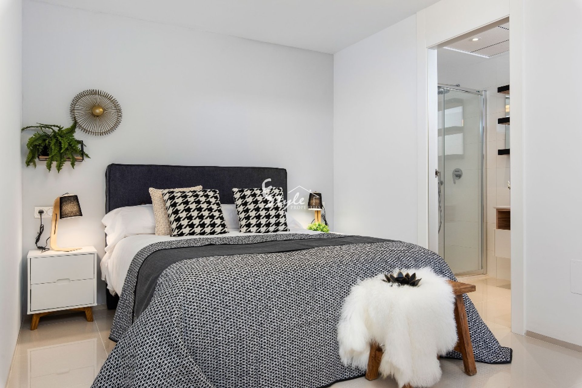 En venta chalet de estilo moderno situada en una urbanización cerca a Guardamar del Segura. La vivienda está compuesta por salón comedor, cocina, 3 dormitorios, 3 baños, terraza, jardín, sótano y solárium privado. Incluye preinstalación de aire acondicionado y suelo radiante en baños.