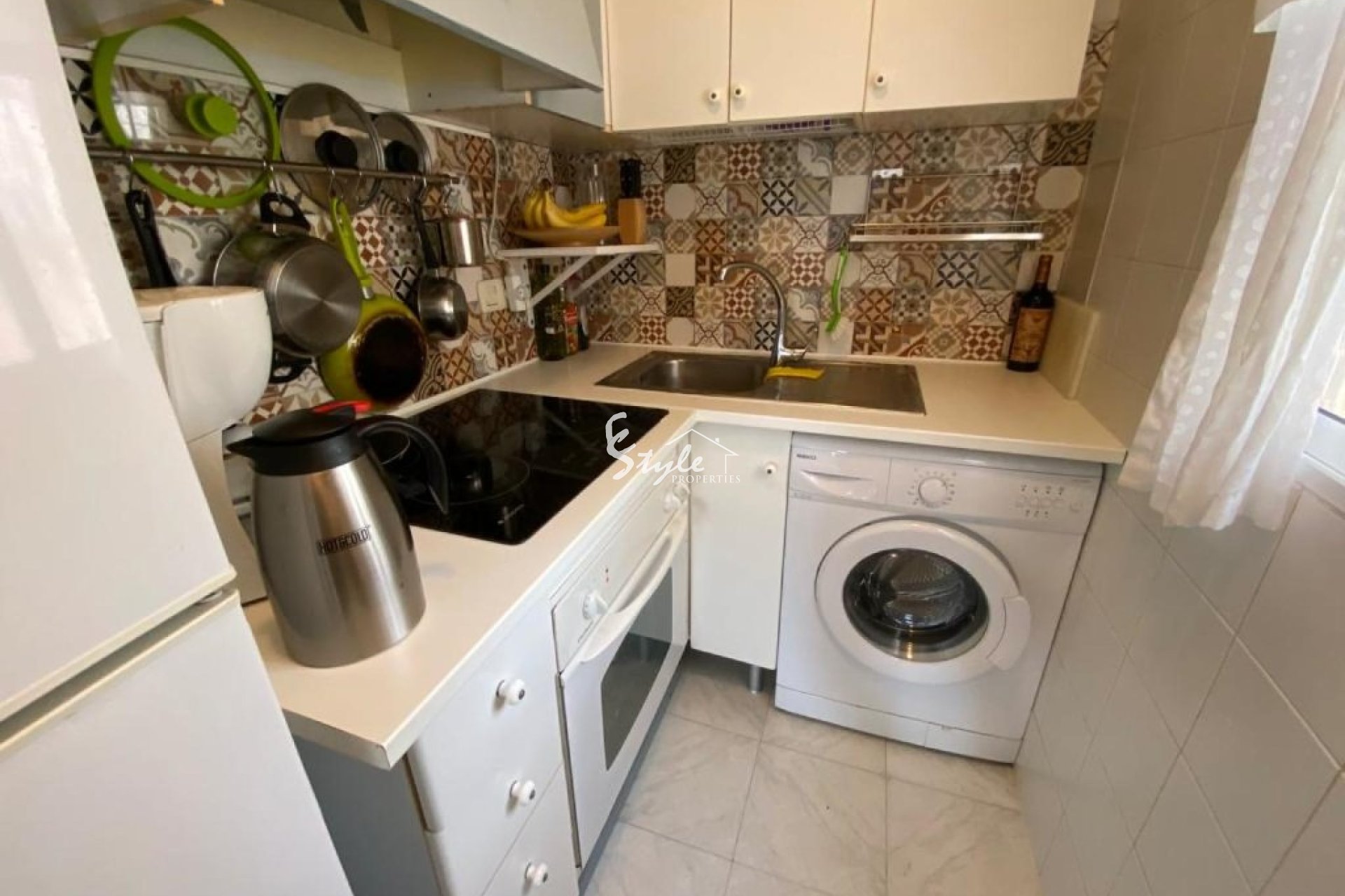 Disponemos en venta un bungalow planta alta con solárium en el Residencial El Limonar, Altos de Limonar en Torrevieja. Esta casa totalmente amueblada y lista para entrar a vivir. Tiene construidos 40 m2 y dispone de una terraza con vistas bonitas. La vivienda consta de 1 dormitorio con armarios empotrados, baño completo, cocina americana, salón-comedor. Alrededor tiene amplias y verdes zonas comunes con piscina, jardines. Está situado a unos 3 kilómetros del mar y próximo a gran cantidad de servicios.