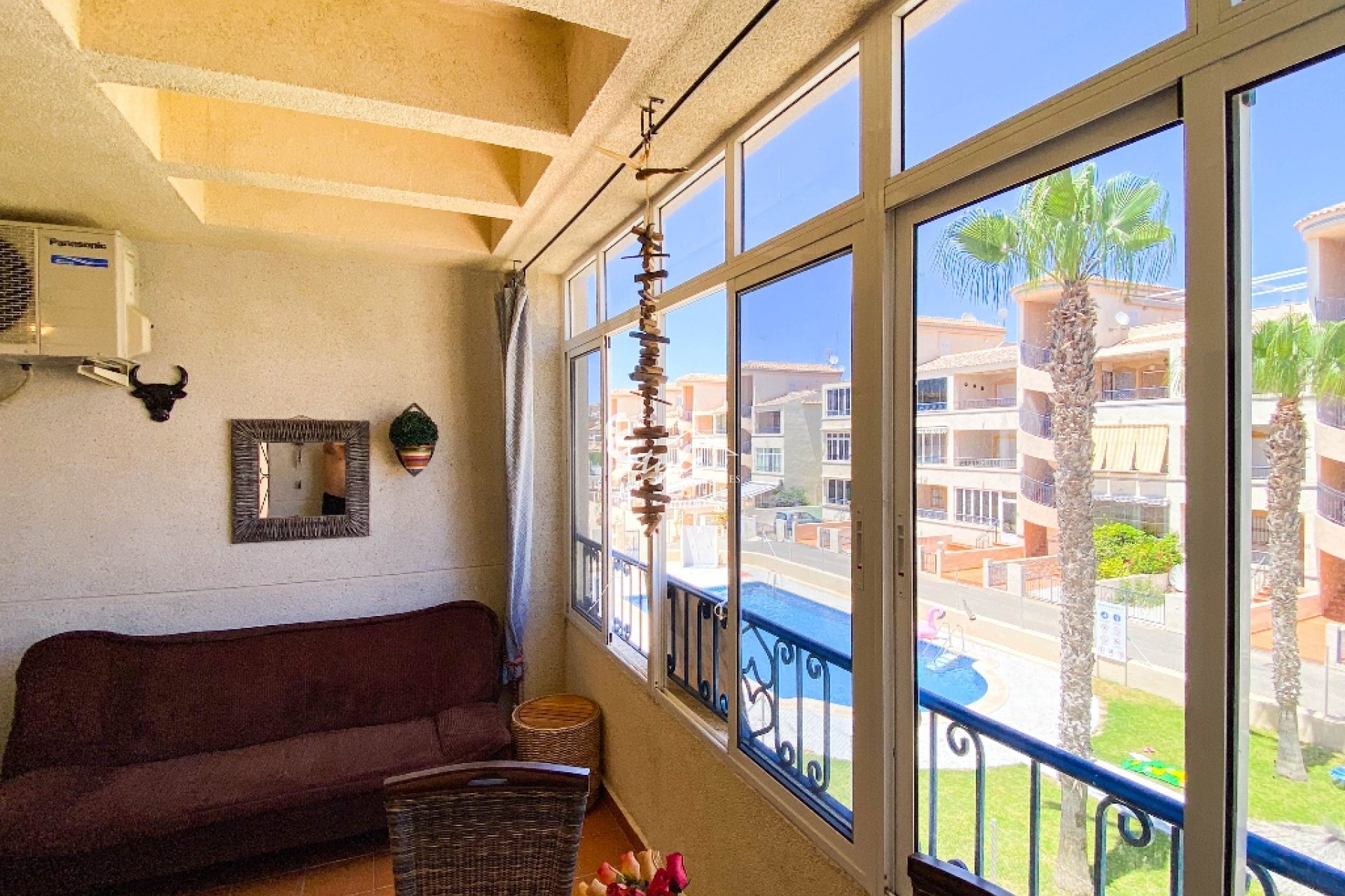 Apartamento en venta en La Ciñuelica con una terraza soleada y vistas a la piscina en Punta Prima, Costa Blanca, España