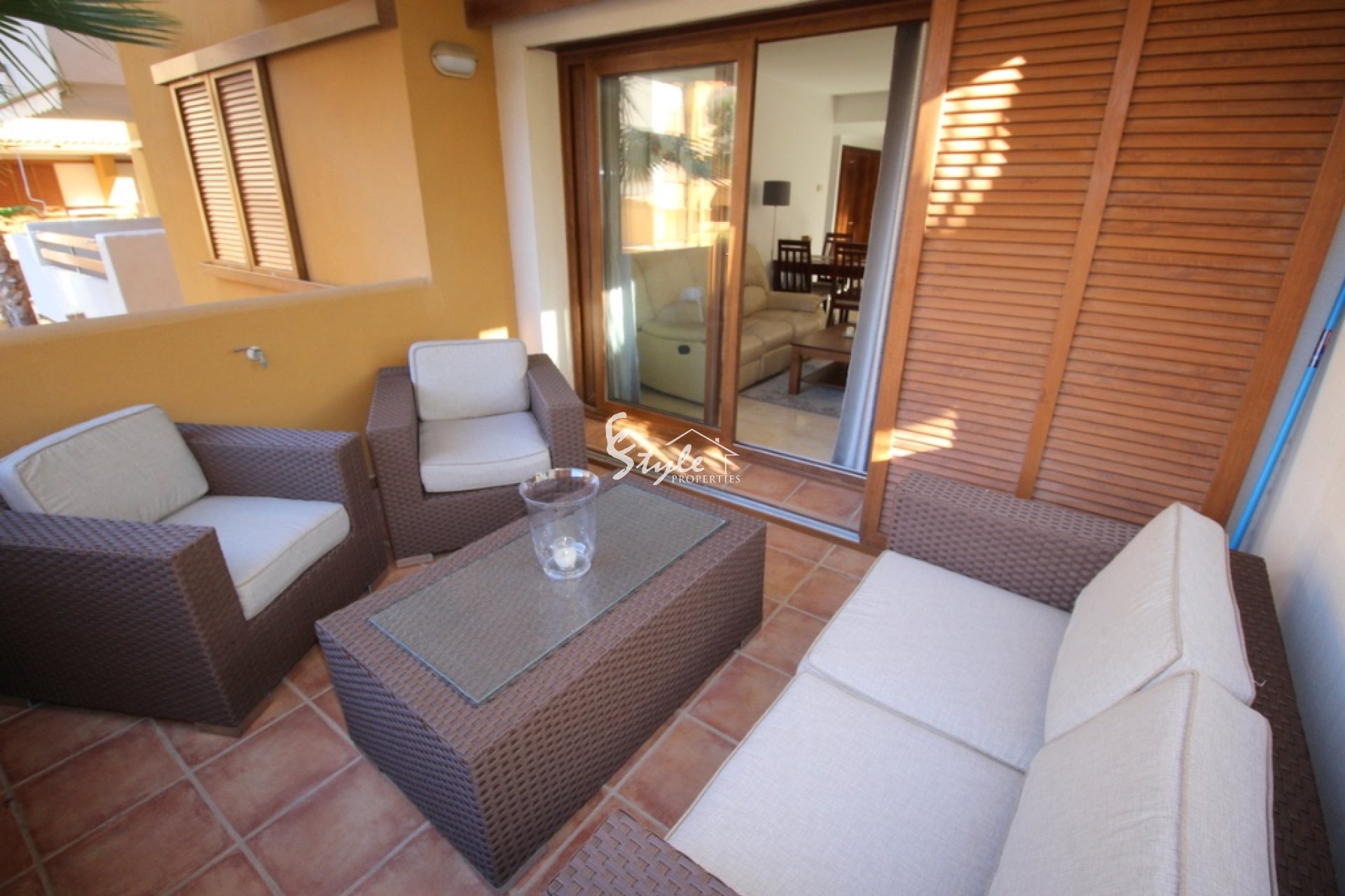 En venta apartamento de 2 habitaciones, 2 baños, cocina americana salon comedor y terraza de 15m2 con vistas a la piscina.