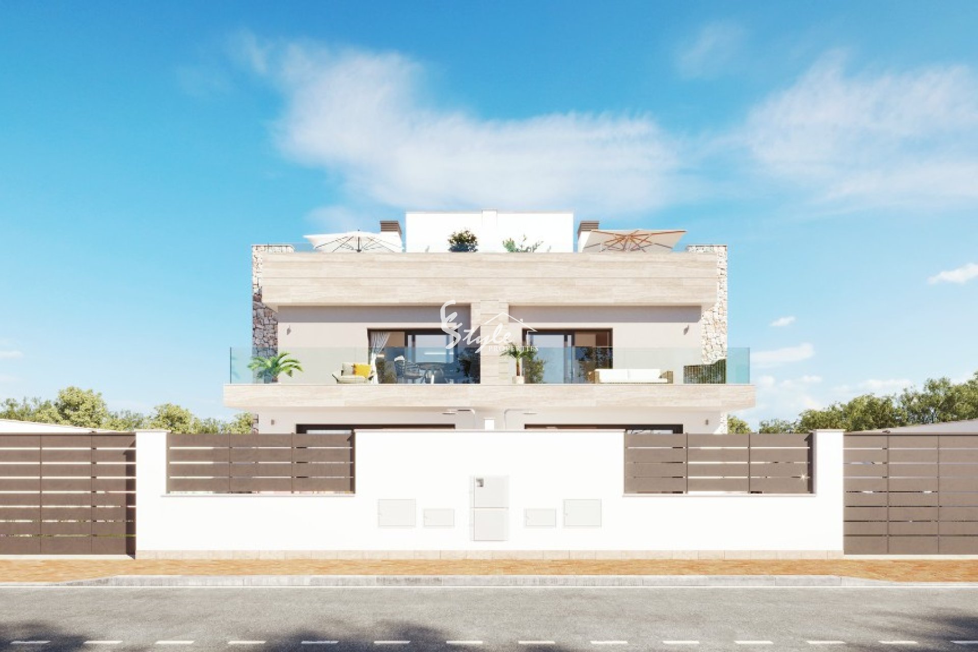 Hermosas casas de 2 niveles con 3 dormitorios, 3 baños, luminosa sala y cocina. Cada vivienda dispone de solárium, bonita zona ajardinada y piscina.